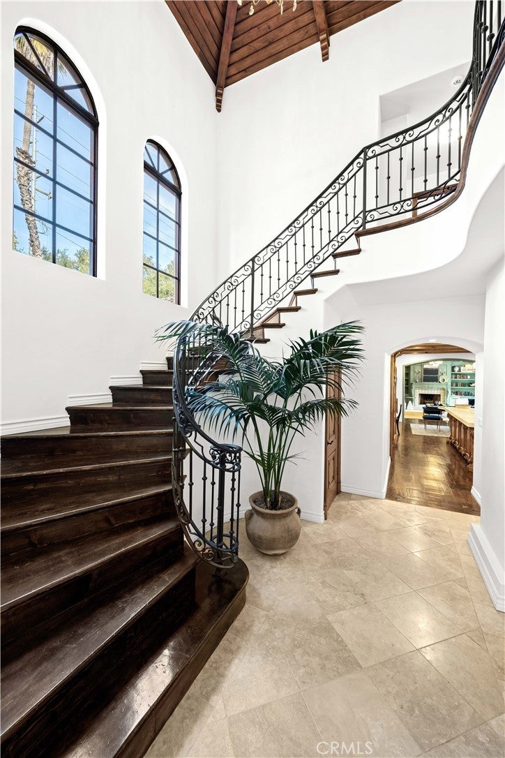 Beamed Ceilings, Breakfast Bar, Built-in Features, Balcony, Ceiling Fan(s), Separate/Formal Dining Room, Eat-in Kitchen, Furnished, Granite Counters, High Ceilings, Multiple Staircases, Open Floorplan, Pantry, Recessed Lighting, Storage, Two Story Ceilings, Unfurnished, Entrance Foyer, Main Level Primary, Primary Suite, Walk-In Pantry