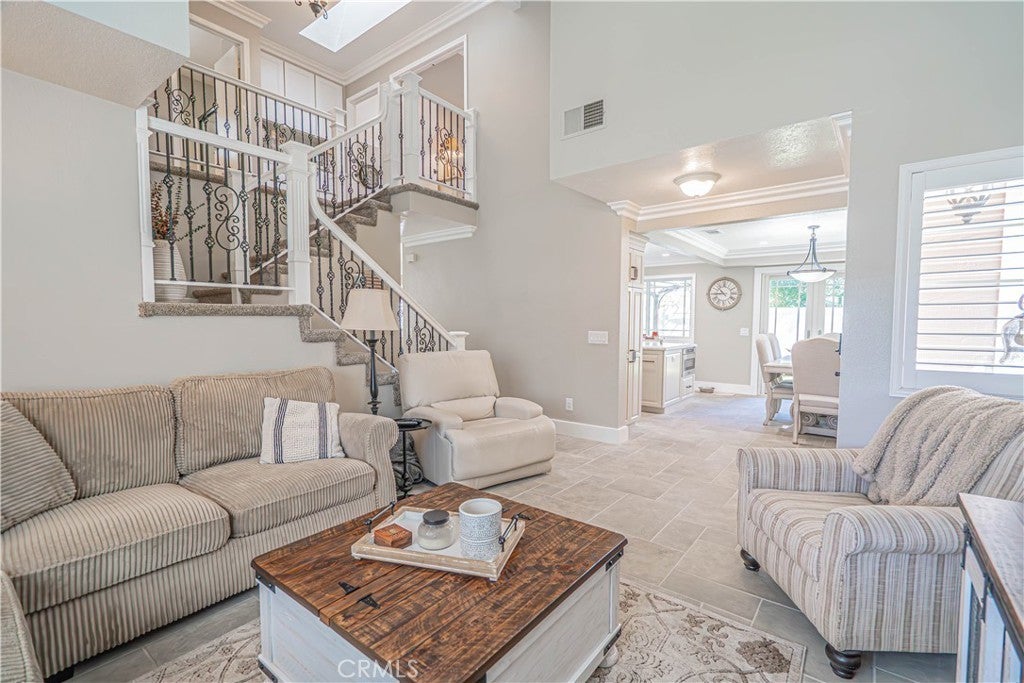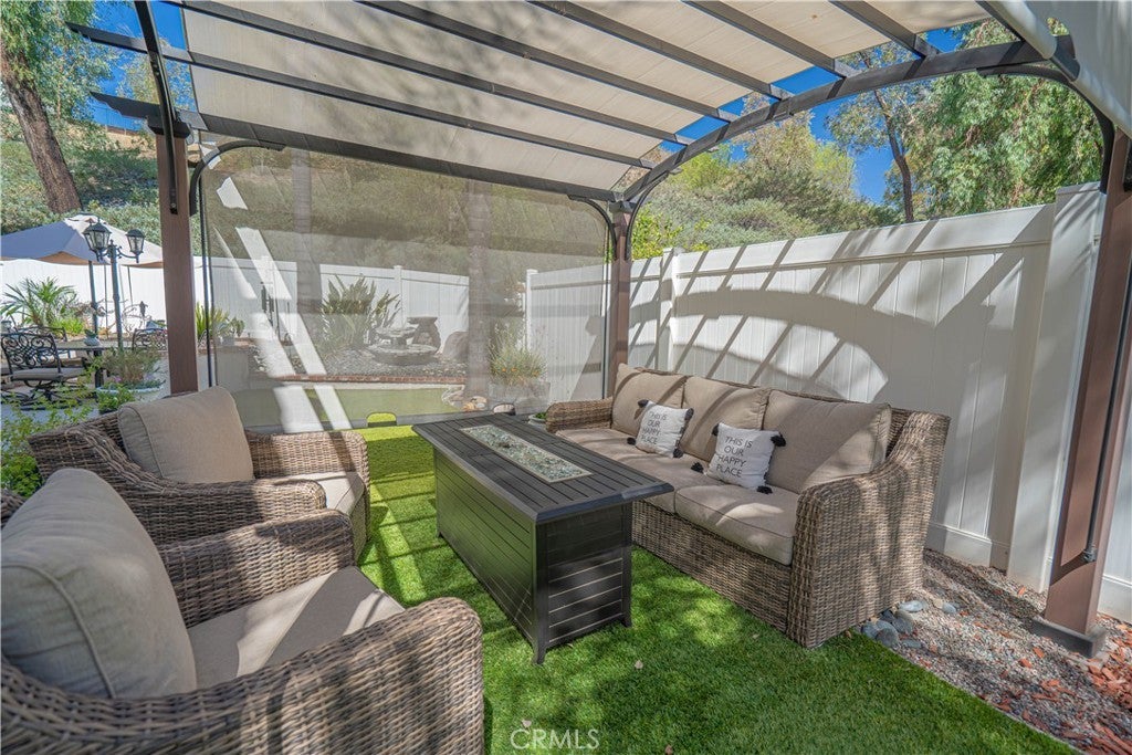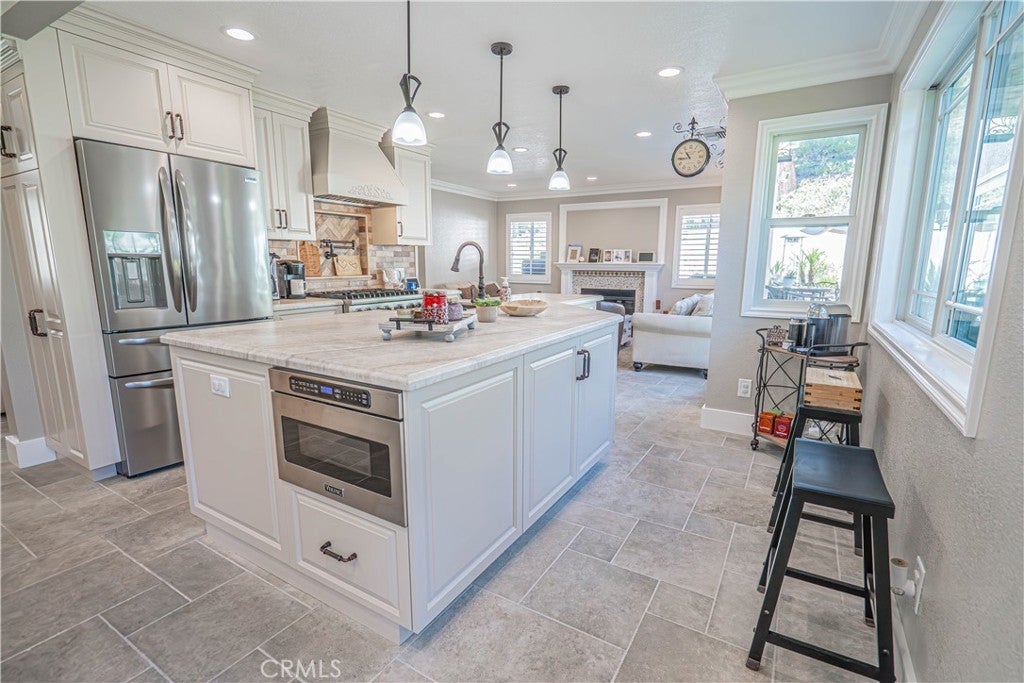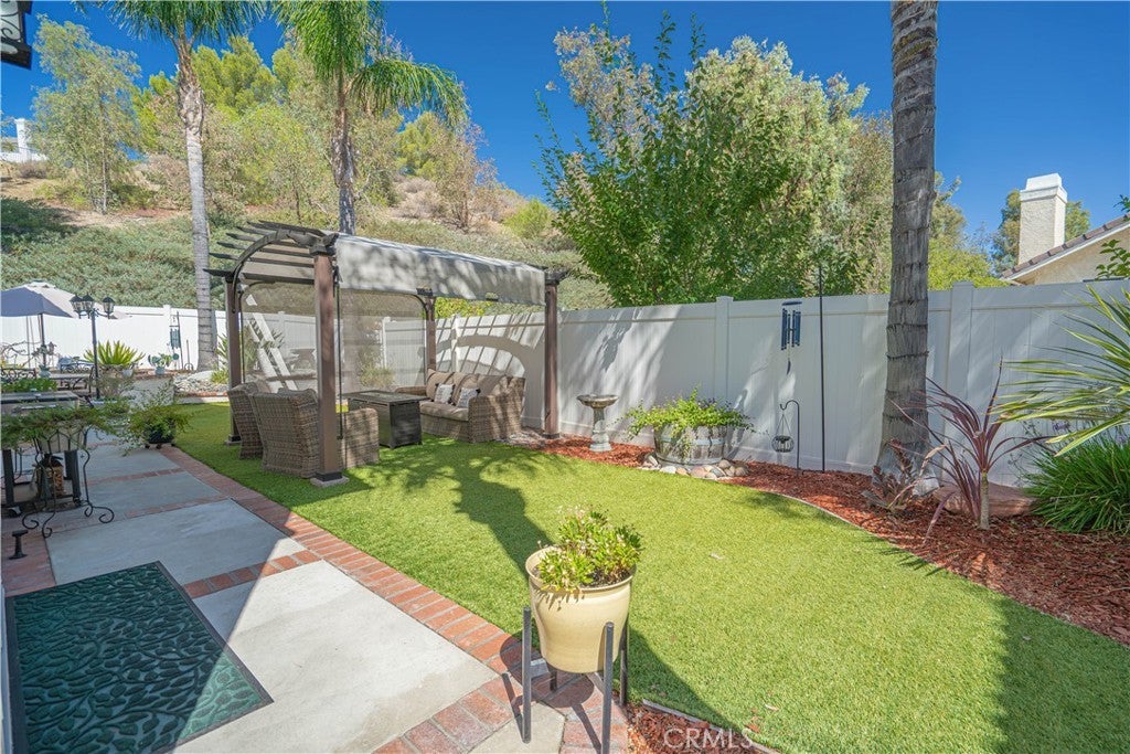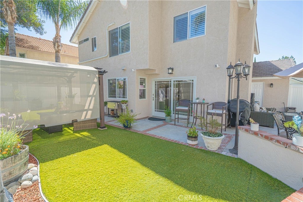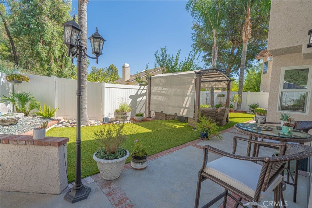 Beautifully updated Canyon Country home featuring extensive interior and exterior upgrades. The exterior offers a recently replaced roof with updated trim and eaves, fresh paint, enhanced landscaping with a tropical-inspired backyard, multiple queen palms, a waterfall pond, and a pergola for outdoor enjoyment. Additional exterior features include outdoor lighting, motion detectors with cameras, added electrical outlets, and an automatic sprinkler system for the backyard. Inside, the home has been remodeled with a thoughtfully reconfigured floor plan, opening up the living space by removing a wall and extending the footprint. The kitchen showcases Viking appliances (excluding refrigerator), upgraded cabinetry, and French doors for natural light and easy access to the outdoors. Other highlights include a redesigned fireplace, updated staircase, new cabinets with stone finishes, custom molding throughout, and plantation shutters on every window. The primary suite offers a refreshed layout with new cabinetry, dual sinks, updated tile flooring, and a new toilet. Additional bathrooms have also been upgraded, including a newer downstairs toilet and an upstairs exhaust fan. Comfort is enhanced by a newer HVAC system, plus a dedicated unit in the primary bedroom. Three of the four bedrooms include ceiling fans, and an office space has been customized with a decorative fireplace heater. Entire interior has been repainted recently, with bedrooms completed within the past two years. This move-in ready home combines quality craftsmanship with modern conveniences inside and out.