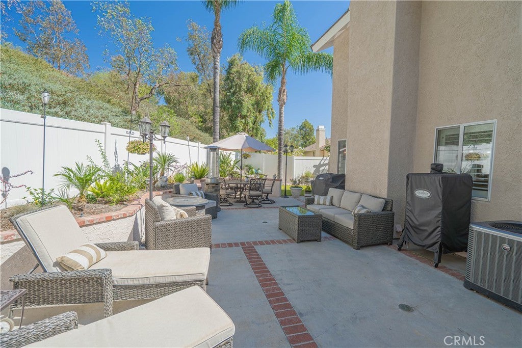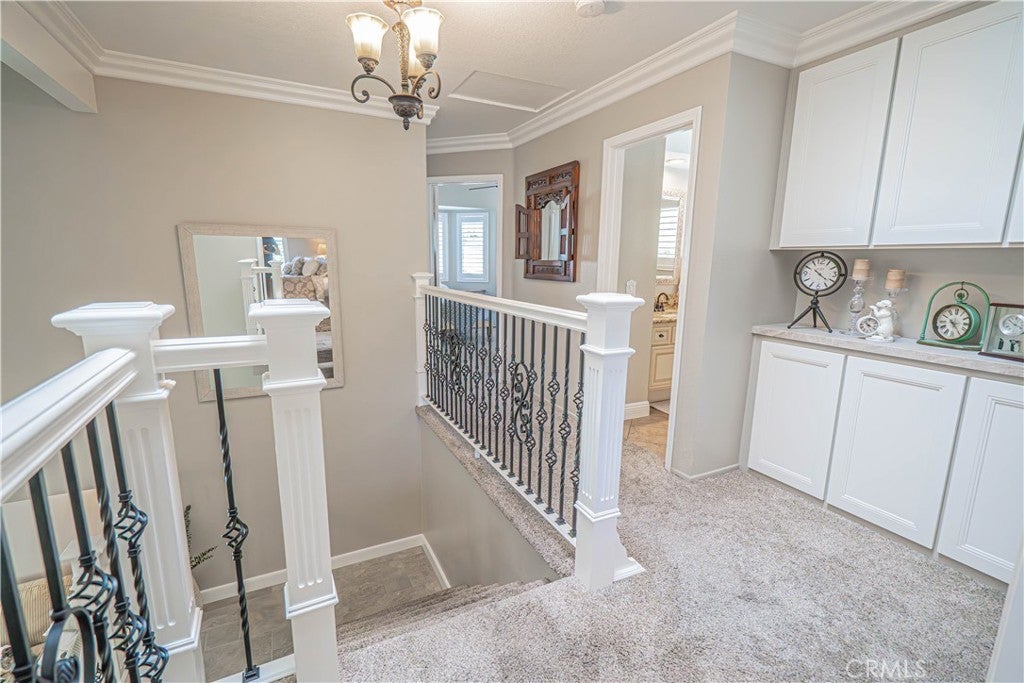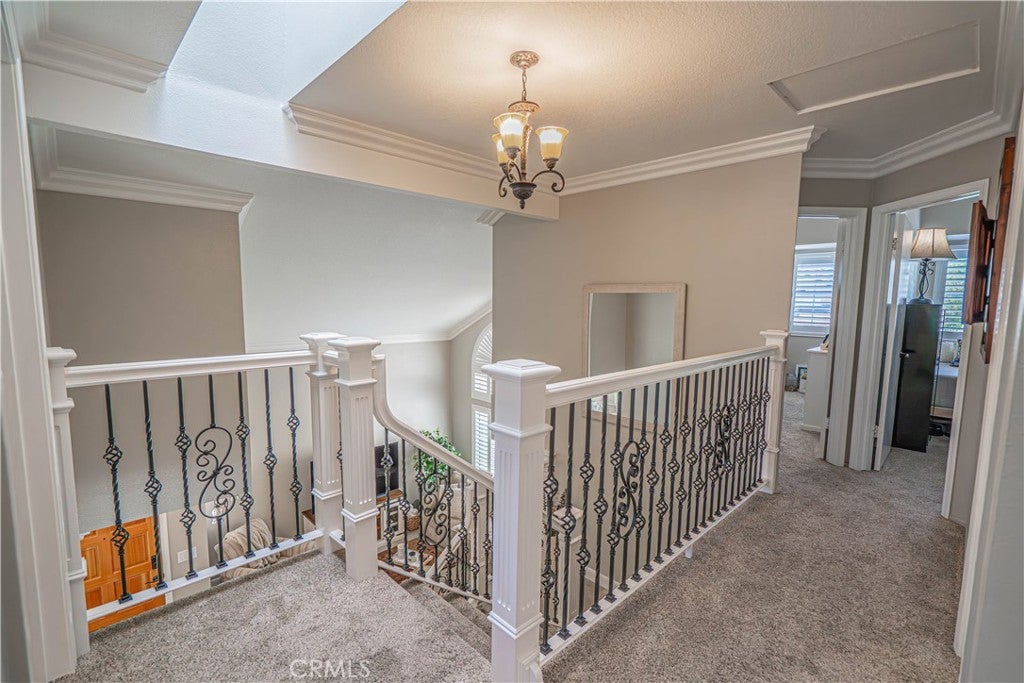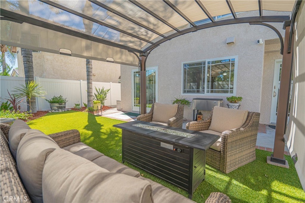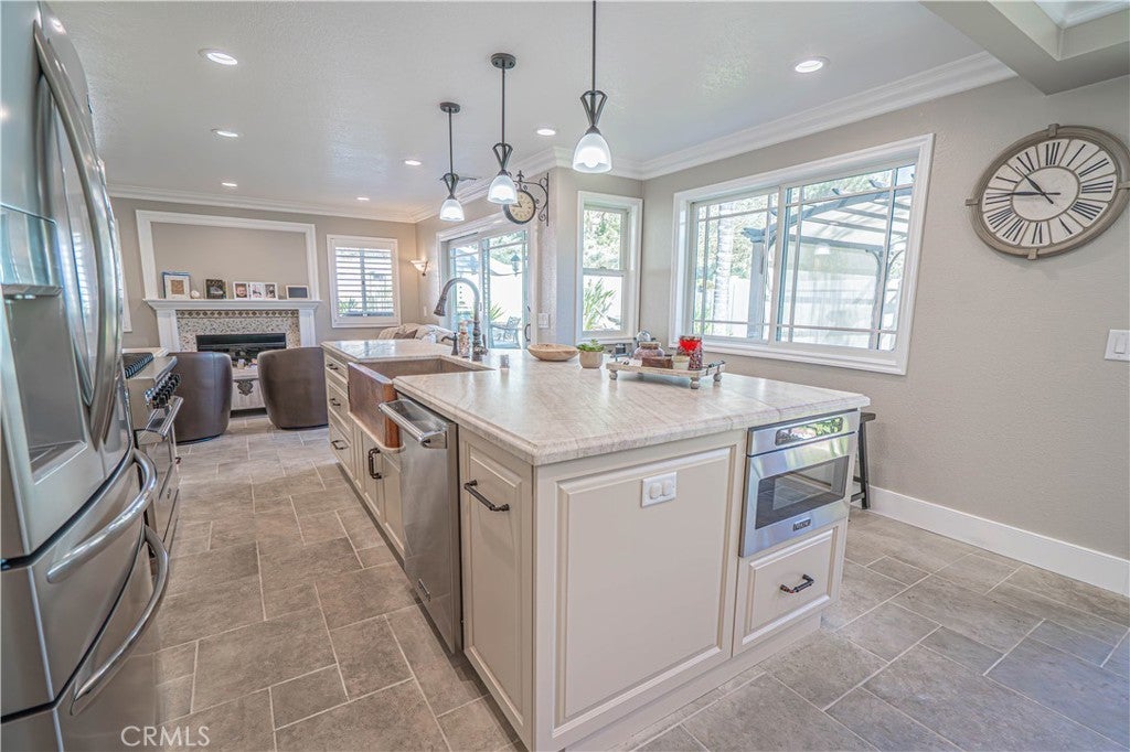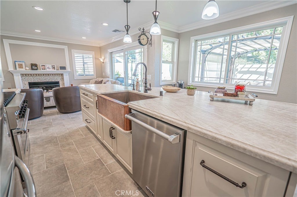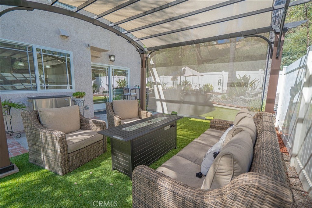 Beautifully updated Canyon Country home featuring extensive interior and exterior upgrades. The exterior offers a recently replaced roof with updated trim and eaves, fresh paint, enhanced landscaping with a tropical-inspired backyard, multiple queen palms, a waterfall pond, and a pergola for outdoor enjoyment. Additional exterior features include outdoor lighting, motion detectors with cameras, added electrical outlets, and an automatic sprinkler system for the backyard. Inside, the home has been remodeled with a thoughtfully reconfigured floor plan, opening up the living space by removing a wall and extending the footprint. The kitchen showcases Viking appliances (excluding refrigerator), upgraded cabinetry, and French doors for natural light and easy access to the outdoors. Other highlights include a redesigned fireplace, updated staircase, new cabinets with stone finishes, custom molding throughout, and plantation shutters on every window. The primary suite offers a refreshed layout with new cabinetry, dual sinks, updated tile flooring, and a new toilet. Additional bathrooms have also been upgraded, including a newer downstairs toilet and an upstairs exhaust fan. Comfort is enhanced by a newer HVAC system, plus a dedicated unit in the primary bedroom. Three of the four bedrooms include ceiling fans, and an office space has been customized with a decorative fireplace heater. Entire interior has been repainted recently, with bedrooms completed within the past two years. This move-in ready home combines quality craftsmanship with modern conveniences inside and out.
