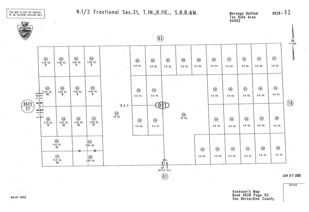 Versatile 5-acre flat parcel (APN #0628-021-40-0000) located just minutes from town, with nearby road access via Sullivan Rd. Utilities are in the area, with electricity at neighboring lots and water reported at depth in the region (buyer to verify availability). Conveniently located across from the national park and near the 29 Palms airport. Buyer to conduct independent investigations regarding zoning, permitted uses, and development potential.