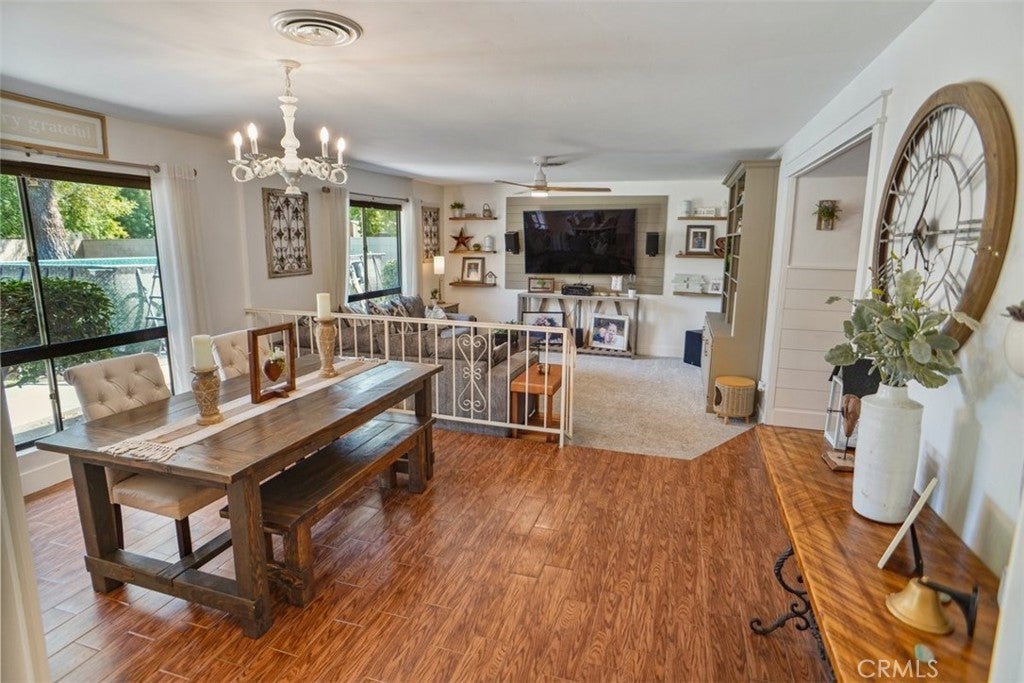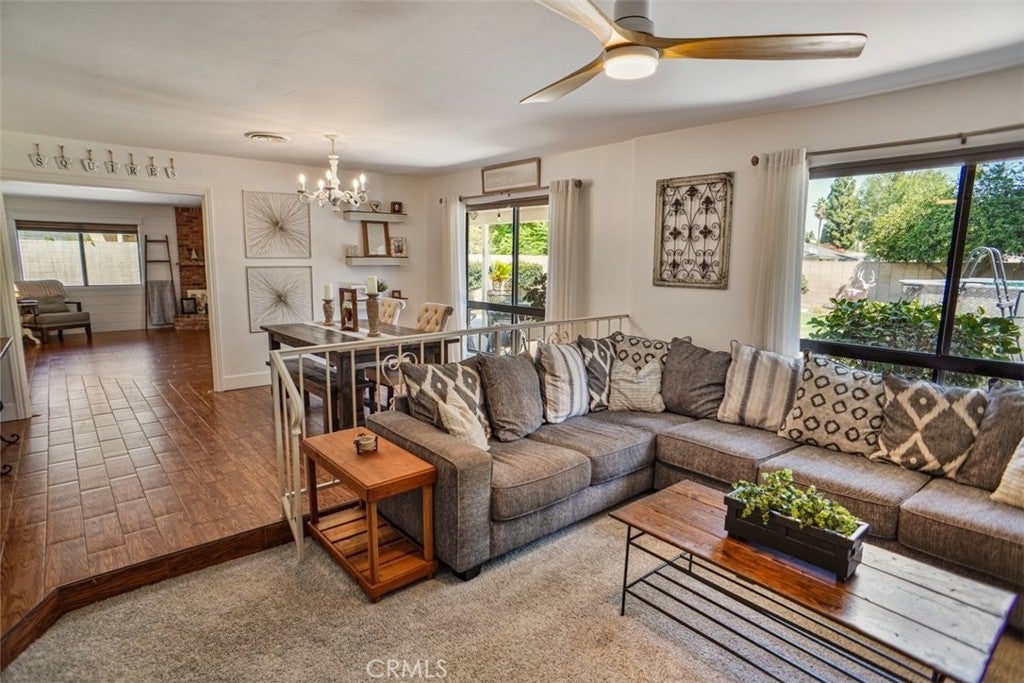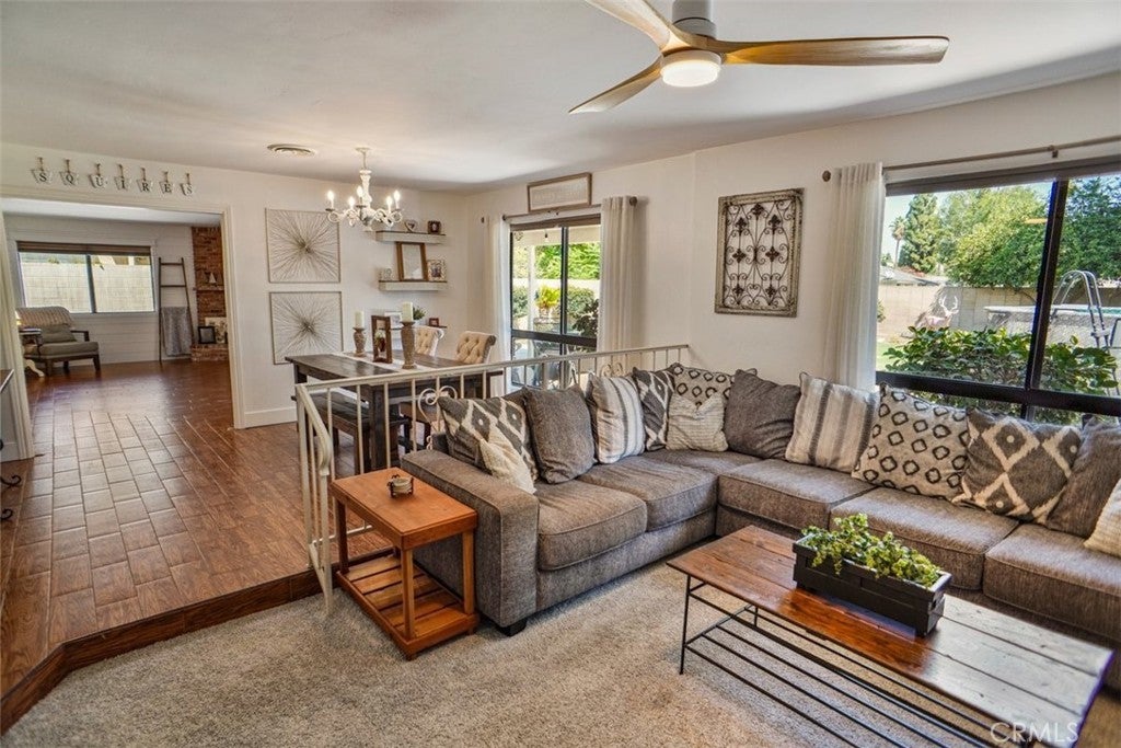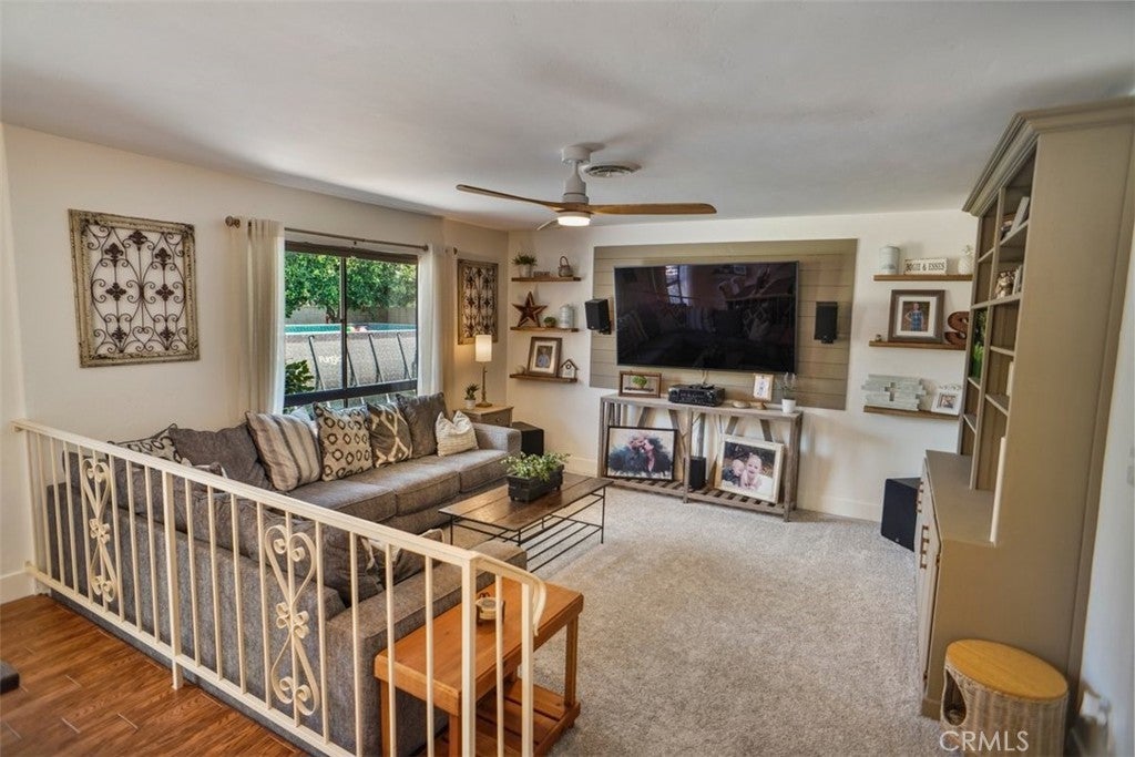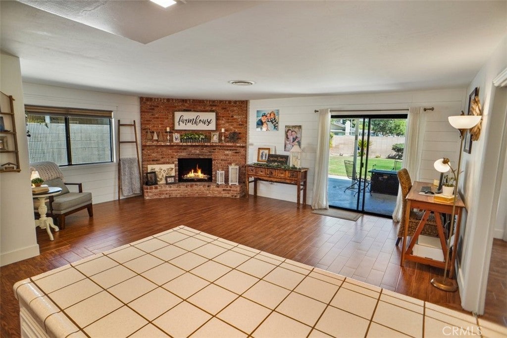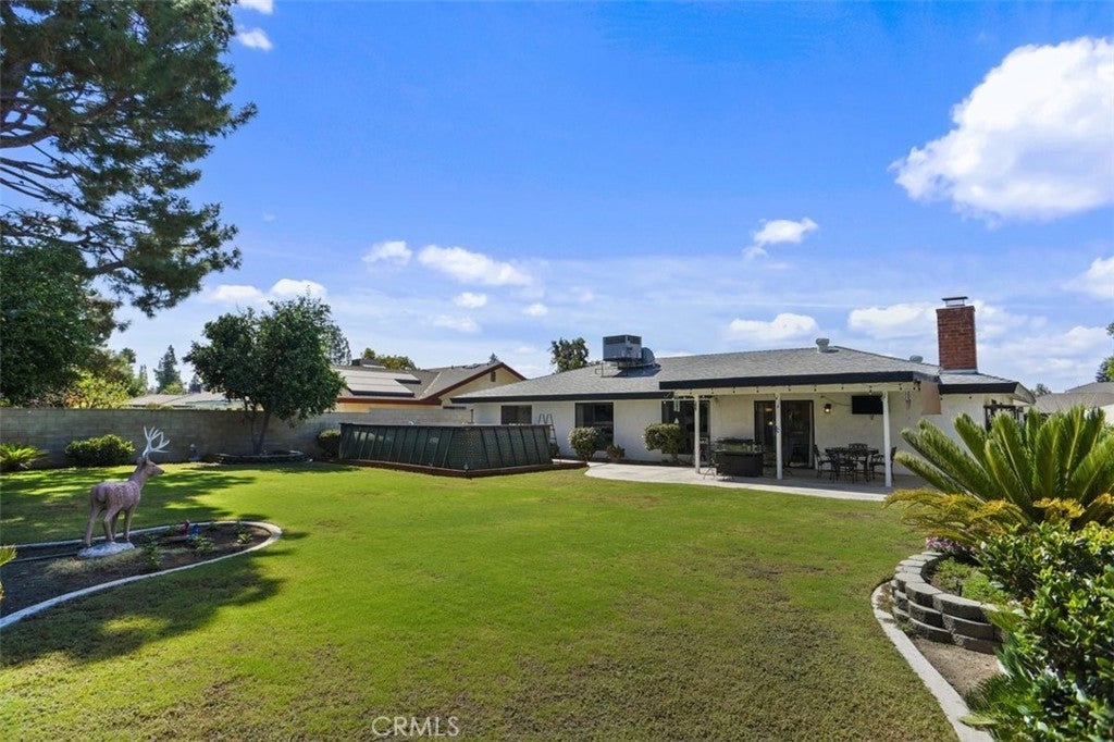 Price Improved!!!Welcome to this beautiful home with fantastic curb appeal located in Laurelglen community. This lovely ranch style home features 3 bedrooms and 2 baths with a spacious open floor plan, large yard, and a newer above ground pool. Perfect home to enjoy and entertain. The front has an open patio with double door entry into the foyer with shiplap wood walls and wood tile flooring and newer neutral carpet. Step down into the spacious living room accented with a wood cabinet to display all your favorite decor. Th wall has shiplap for a large screen tv and accented with wood shelves. The formal dining room area and the living room open up with large windows that bring in natural lighting and a view of the beautiful back yard.The kitchen has stainless steel built in appliances and lots of counter space and cabinets. The large counter top is perfect for a breakfast bar and perfect for entertaining buffet style. The kitchen opens to the spacious family room accented with a beautiful brick fireplace with mantel and hearth to sit by the fire. This cozy room is perfect for upcoming holiday parties. The primary is spacious with dual mirrored large closets. The primary bathroom has separate sink areas and cabinets underneath and a large walk in shower. The second bedroom has large wall closet and two tone paint plus a newer wood ceiling fan. The third bedroom is accented with a wood chair rail plus large wall closet and wood ceiling fan. The middle bathroom has tub shower combo plus lots of cabinets and a laundry cabinet pull out. The home has new wood shaker 3panel bedroom / closet doors and upgraded door handles. The laundry room has cabinets and direct access to the garage with newer epoxy flooring. The back yard is an entertainers delight. Newer above ground pool and covered patio. The large yard features lemon and orange trees and lots of yard to play in. The home has a leased solar system. This home is walking distance to elementary school and enjoy the local parks. Shopping and dining nearby. This lovely home has so much to offer!!!