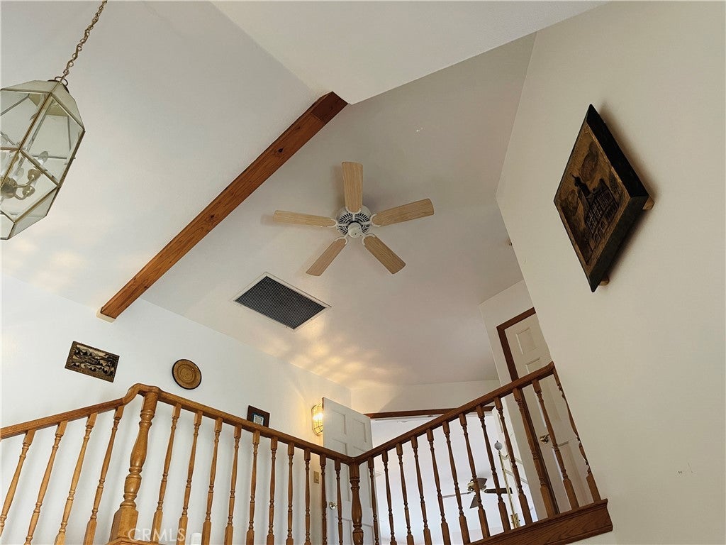 Beamed Ceilings, Ceiling Fan(s), Separate/Formal Dining Room, Eat-in Kitchen, Recessed Lighting, Tile Counters, Bedroom on Main Level, Balcony, Block Walls, Cathedral Ceiling(s), Central Vacuum, Dressing Area, Entrance Foyer, High Ceilings, Living Room Deck Attached, Multiple Staircases, Open Floorplan, Pantry, Primary Suite, Unfinished Walls, Utility Room