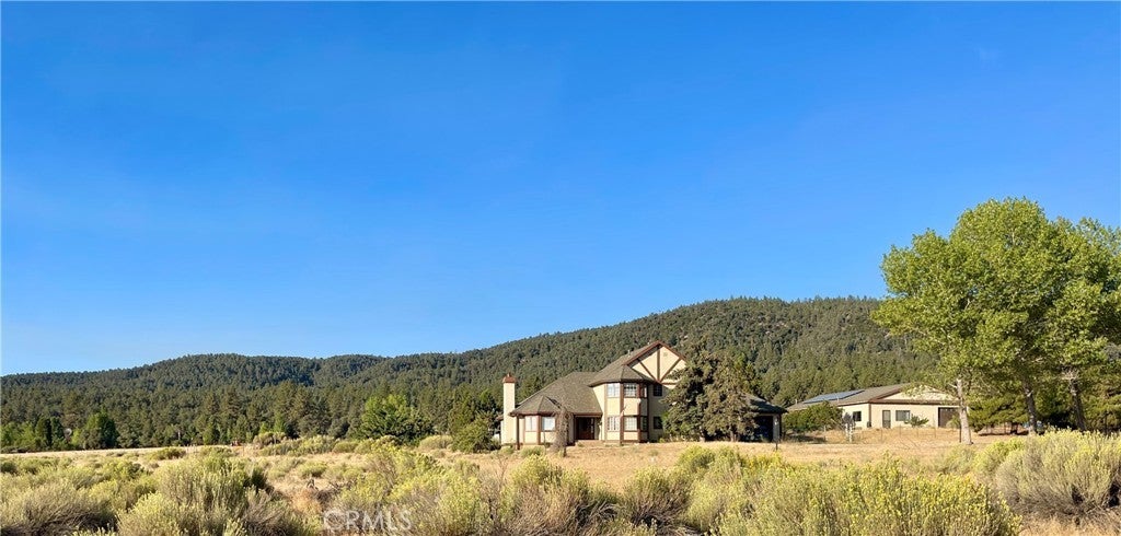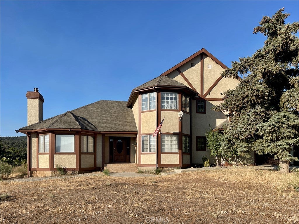 Expansive Tudor Estate on 10+ Acres with ADU & Panoramic Views Welcome to your dream retreat — a stately Tudor home set on more than 10 acres of rolling meadows, framed by ranchland, hills, and breathtaking mountain vistas. This rare property blends timeless architecture with versatile living spaces, offering the perfect setting for multi-generational living, entertaining, or creating a private sanctuary. Main Residence Step through the grand double-door entry into a dramatic foyer with chandelier, soaring ceilings, and a sweeping staircase. The thoughtful layout includes: Luxurious Master Suite: Double entry doors lead to a private haven with fireplace, walk-in and mirrored closets, and spa bath featuring a two-person jetted tub with Italian marble tile, dual sinks with dressing area, separate walk-in shower, and private toilet room. French doors open to a south-facing balcony with 180° views — perfect for both sunrises and sunsets. Two spacious bedrooms with mirrored closets and cozy sitting areas by the windows. Chef’s Kitchen: Custom wood cabinetry, tile counters, oversized island with butcher block prep station, built-in pantry, double ovens, microwave, trash compactor, pot rack, and large window views — with space to prepare meals for a crowd. Family Dining & Entertaining: Open family dining area with built-ins and sliding doors to the patio flows into the family room with wood-burning stove, brick veneer, built-in entertainment center, wet bar, and wood floors. Formal Living Areas: Vaulted wood-beam ceilings, wood floors, fireplace, large dining space, and sunlit sitting/reading area. Downstairs Bedroom/Office: Flexible use with wood floors and ample windows. Additional Features: Full downstairs bath with dual sinks, laundry room with chute, washer/dryer, folding counter, utility sink, oversized two-car garage with workshop, plus a huge cellar with stair lift — ideal for wine storage or pantry. Additional Dwelling Unit (ADU) Formerly a professional machine shop, this unfinished conversion includes 2 bedrooms, bath, large kitchen and living area, workshop, dual garages, fenced garden access, and solar panels (details TBD). Ideal for extended family, guest space, or income potential. With its private water well and storage tank, 10+ usable acres, road frontage on all sides, meadows, ranchland, and sweeping mountain views, this estate offers endless possibilities-from hobby farm or ranch to a true country retreat.