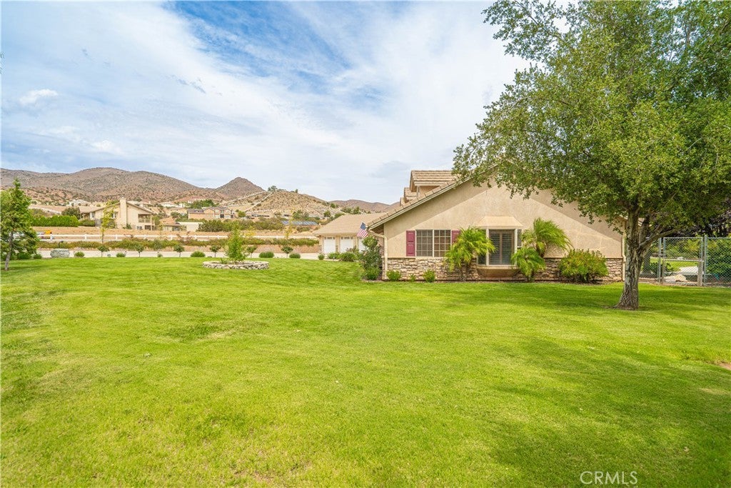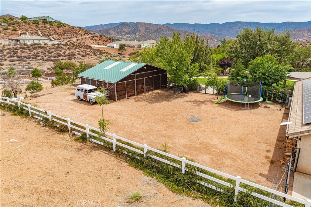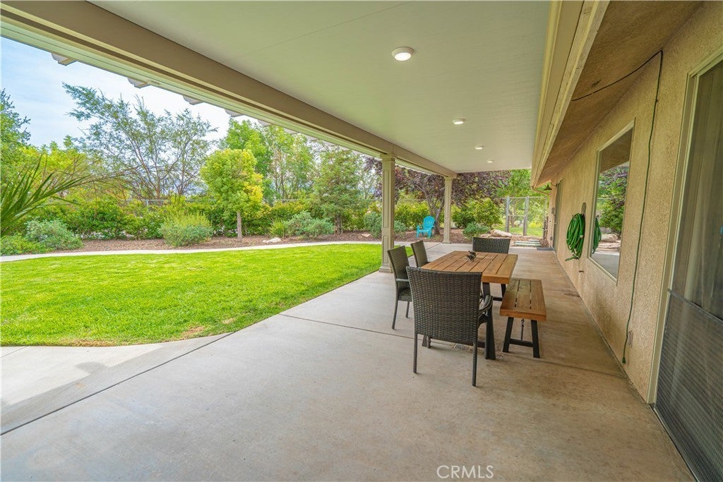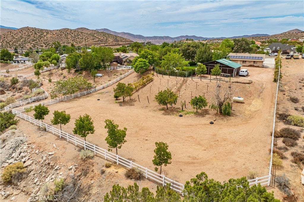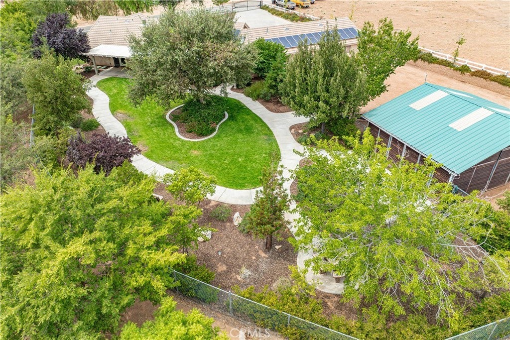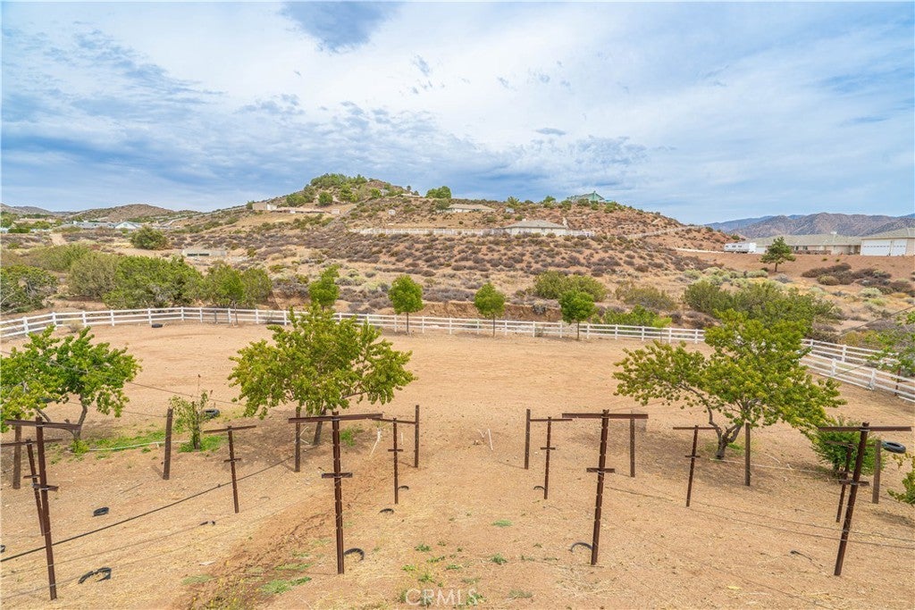 Stunning custom single-story gated estate on nearly 2 acres with breathtaking hillside views. This 4 bedroom 3 bath home features an expansive open concept floorplan with living area with oak hardwood floors, newer carpet, high ceilings, wood-burning fireplace, and whole-house fan. One bedroom with its own bath is privately located at the opposite end of the home, making it ideal for guests or multi-generational living. The spacious kitchen offers a granite island with breakfast bar, walk-in pantry, stainless steel appliances, recessed lighting, reverse osmosis system plumbed to the refrigerator, and abundant cabinet and counter space. The large master suite includes patio access, walk-in closet, and spa-style bath with decorative tile, glass shower enclosure, soaking tub, and bidet. Three bedrooms are located on one side of the home including a secondary suite with its own bath, ideal for guests or multi-generational living. Outdoor amenities include a covered patio, multiple seating areas, fruit trees, drought-tolerant Buffalo grass, and sweeping views of the surrounding hillsides. The 4-stall barn is fully equipped with water and electricity and the lower part of the property provides ample space for horses, corrals, storage, or a garden. Additional features include an attached extra-deep 3-car garage, abundant RV parking with 220V hookup, Hunter irrigation system for customizable watering, owned solar, public water, electric entry gate and paved road access. No HOA or Mello Roos. A rare opportunity to own a move-in ready ranch-style property combining privacy, functionality, and the perfect setting for entertaining or equestrian living.