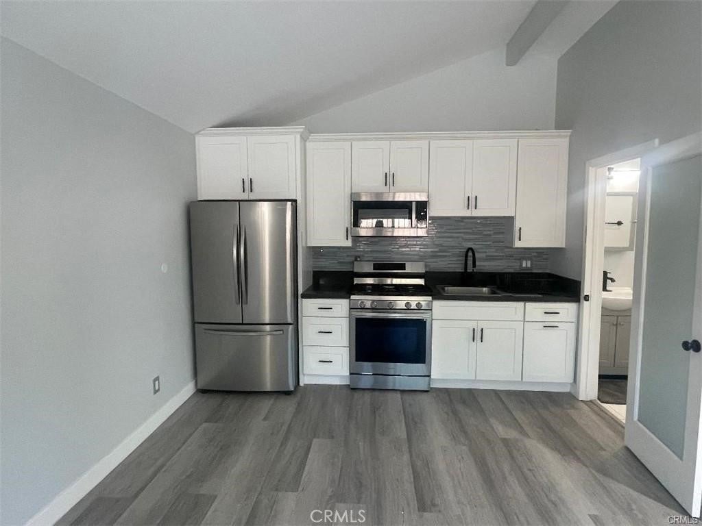 Tastefully designed studio ADU with 420 plus square feet. Features include a full kitchen with stainless steel appliances, refrigerator, gas Stove and a microwave. This home offers Laminated flooring, double pane windows, new remote controlled wall-mounted unit for heat and air conditioning. The ADU has its own private entrance from the alley which runs along the rear of the property. All utilities included in the rent.