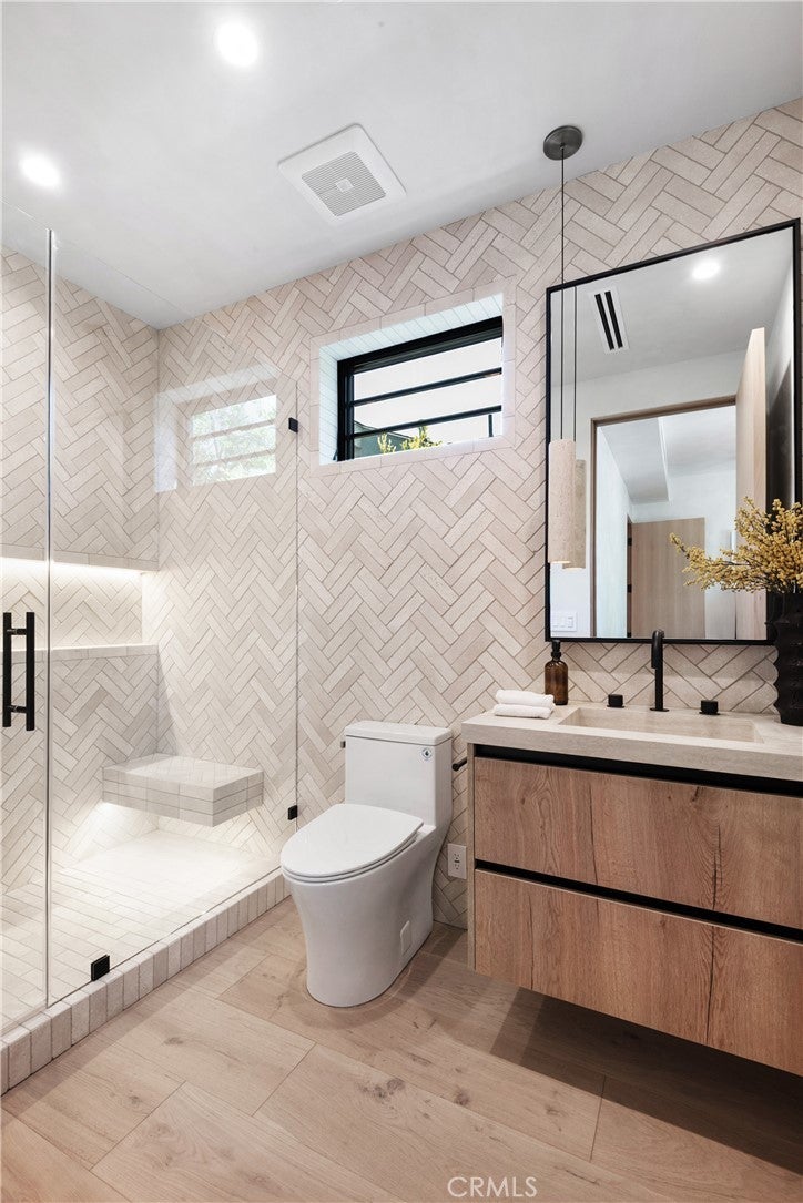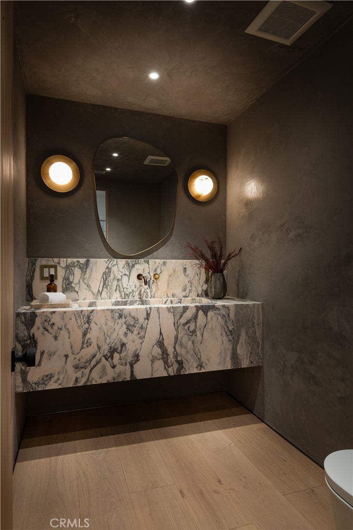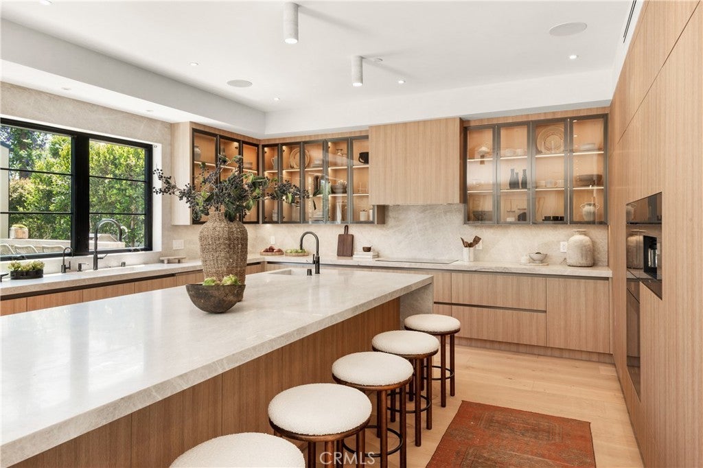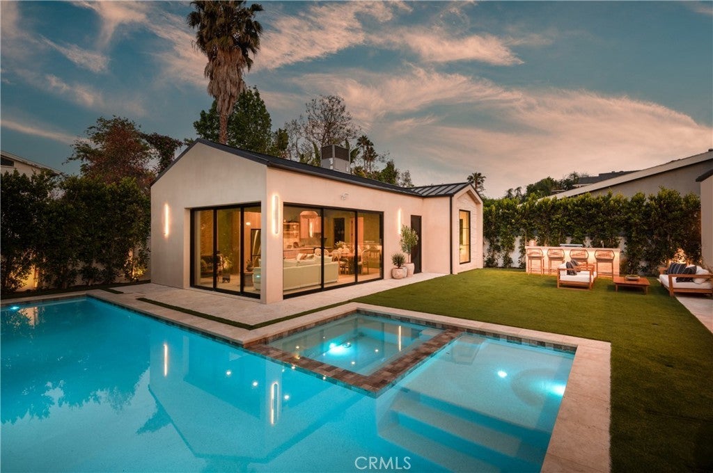 Experience elevated living in this striking new-construction home with a detached ADU, set on an expansive gated lot in prime Studio City. Thoughtfully designed for modern living, this open-concept floor plan is complimented by high ceilings and wide plank engineered oak floors that run throughout the home. The designer chef’s kitchen is a culinary showpiece, equipped with top-of-the-line appliances, stunning Taj Mahal quartzite countertops and a massive waterfall island. The adjacent living room and formal dining area are anchored by an oversized sliding glass door that disappears into the wall for seamless indoor-outdoor living, perfect for entertaining. The main level also features a state-of-the-art media room, ensuite bedroom and chic powder bathroom. Upstairs, a flexible loft space, laundry room and four generously sized ensuite bedrooms await, including a luxe primary suite with a private balcony, custom walk-in closet and sumptuous bathroom, complete with a soaking tub, large rainfall shower, smart toilet, double vanity and makeup vanity. Step outside to a serene backyard retreat surrounded by privacy hedges, where you’ll find a sparkling saltwater pool/spa, outdoor kitchen and low maintenance artificial turf yard. The detached ADU offers endless possibilities with a spacious living/dining area, full kitchen, 1 bed and 1 bath – great for guests, in-laws, a home office or wellness space. Additional highlights include a Control4 smart home system with integrated speakers and security cameras, a central vacuum system, paid-off solar panels and a two-car garage that's been prewired for an EV charger. This property is ideally located within the highly acclaimed Dixie Canyon School District and nearby Ventura Boulevard’s vibrant shopping and dining scene, the Shops at Sportsman Lodge and so much more.