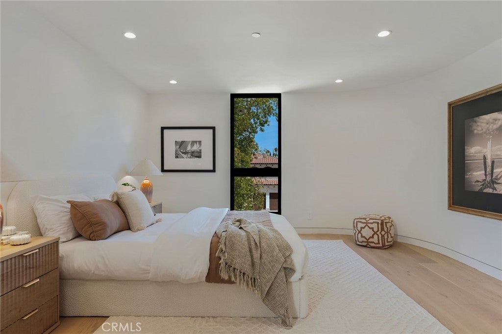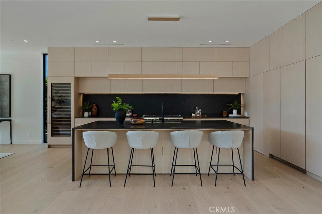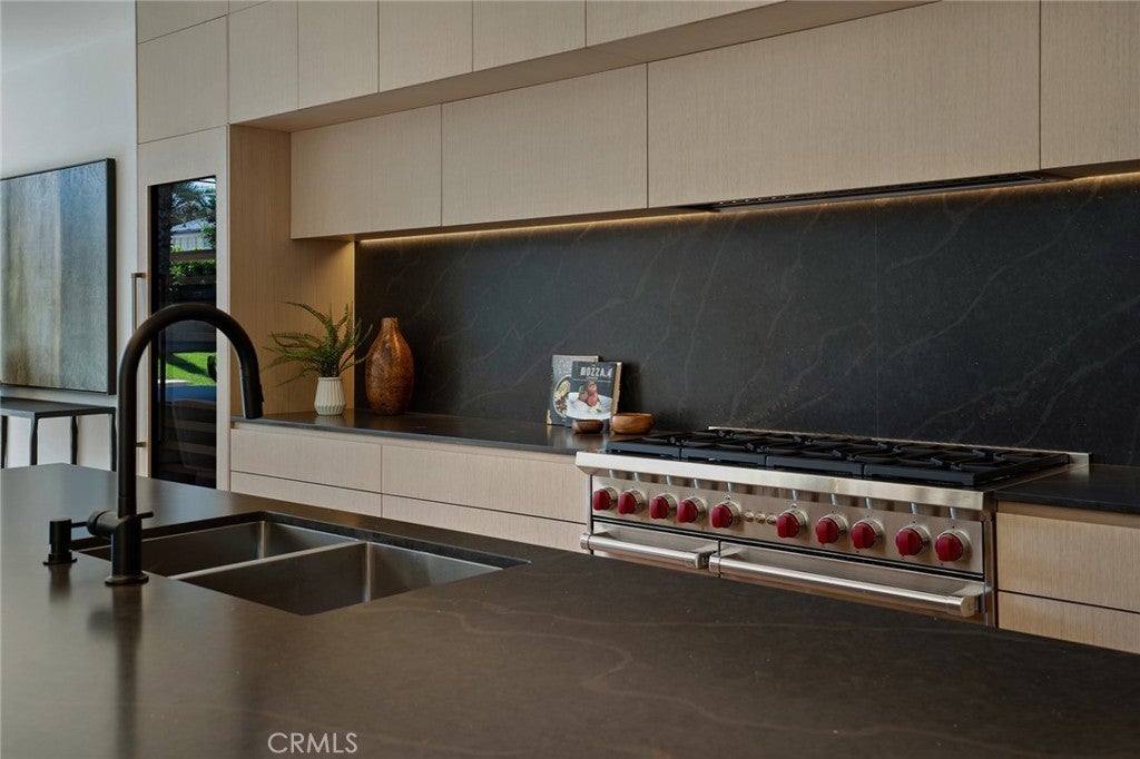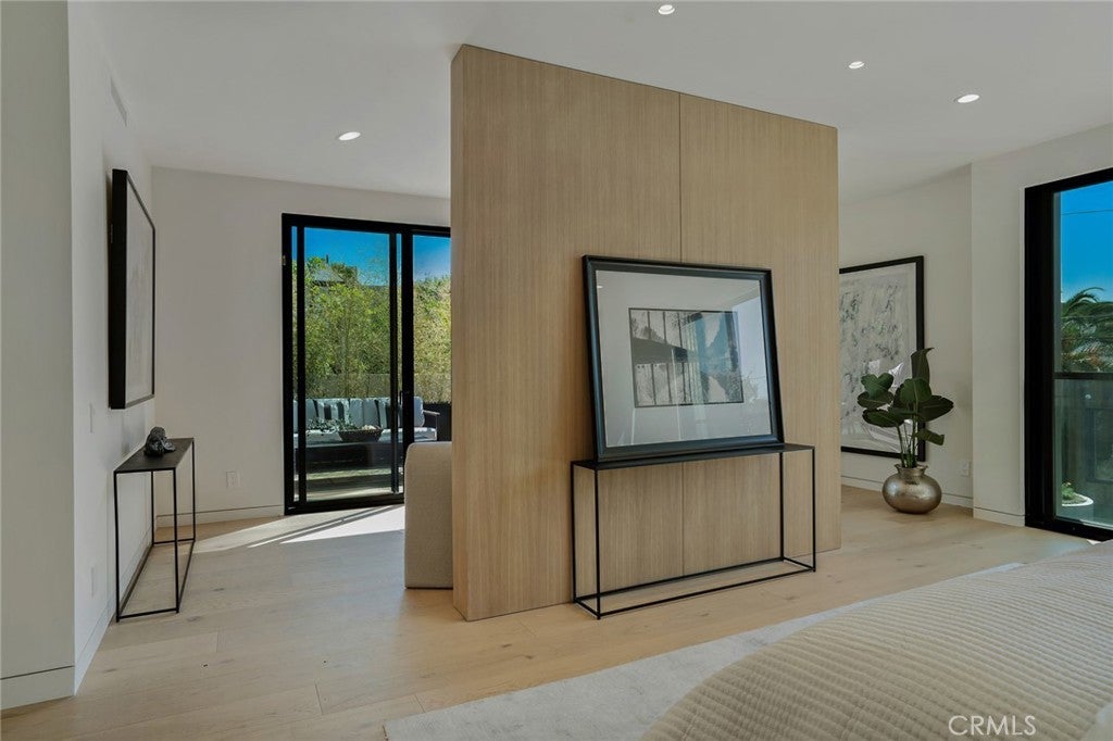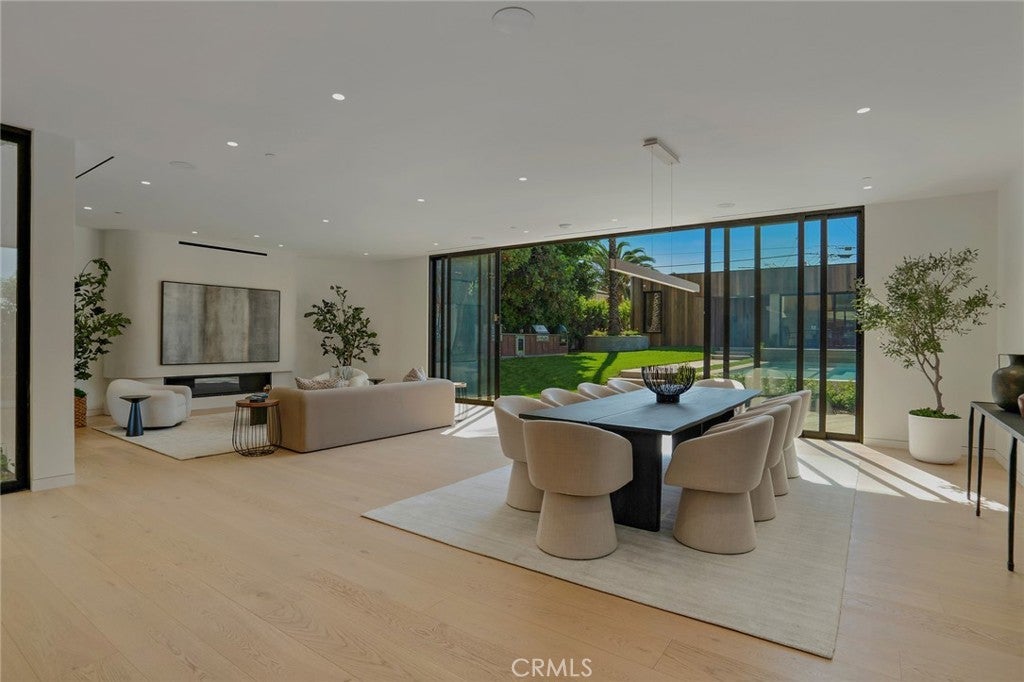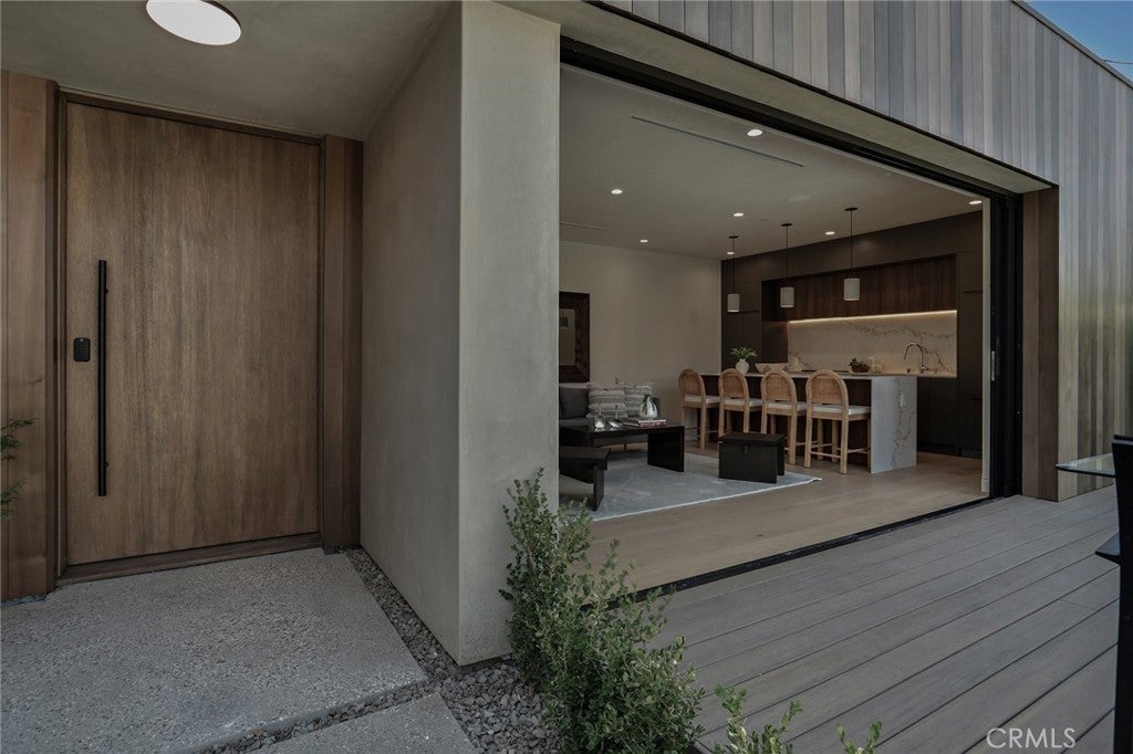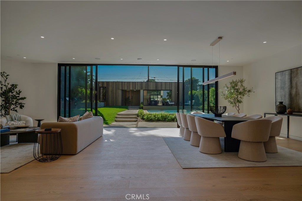Enter an environment where the warmth of organic modern architecture meets stunning new luxury construction. Elegant 6BR + 5.5BA property sits on an almost 11,000 sqft lot + includes a 1BR + 1BA guest house w/its own address. Gorgeous open floor plan features sleek kitchen w/center island, quartz counters, white oak cabinets + stainless steel appliances including a Wolf 8 burner range w/double oven. Living room w/fireplace has huge sliders leading out to the extensive grassy grounds. Kitchen overlooks a private deck area w/Japanese landscaping. Both the kitchen + dining area have custom designed light fixtures. The gentle curves of the home's exterior can be found in details throughout the house, such as the fireplace, the curved corners of rooms + even the concrete steps throughout the exterior. The opulent primary suite has everything. Huge floor to ceiling windows slide open for viewing the amazing grounds. A separate area for lounging opens to a spacious side balcony. Two custom walk-in closets have extensive built-ins. Gorgeous primary bath w/soaking tub has an oversized shower w/dual rain heads + seating benches, plus double sinks + vanity area. Second level includes a sitting area/library w/dramatic skylight + 2 more ensuite BR's. An airy floating staircase connects the two levels, w/another 2BR + 2BA below. The grand living space is accentuated w/high ceilings, extensive use of glass + is infused w/a spectacular amount of natural light. Step outside + encounter the exceptional park-like oasis. An immense pool w/spacious baja shelf also includes a spa. Amazing outdoor entertaining area features stainless steel BBQ, a smoker, a refrigerator, a pizza oven, stainless steel sink + tons of cabinets. At the back of the private grounds sits the jewel of the property - a 1BR + 1BA ADU with 800 sqft that looks like a mini version of the main house, w/the same unique wood exterior + curves inside + out. The floor plan includes an extensive kitchen w/quartz center island + living room. It would make a great office or a multi-generational compound. The living space sliders completely open to the patio creating a perfect indoor outdoor flow. Its view looking out over the grounds + backside of the main house creates a dramatic backdrop for everyday living. This is a one of a kind property. Come satisfy your appetite for something new + break away from all the "modern farmhouse" + "modern box" replicants. And experience over 6,100 sqft of new architectural luxury.