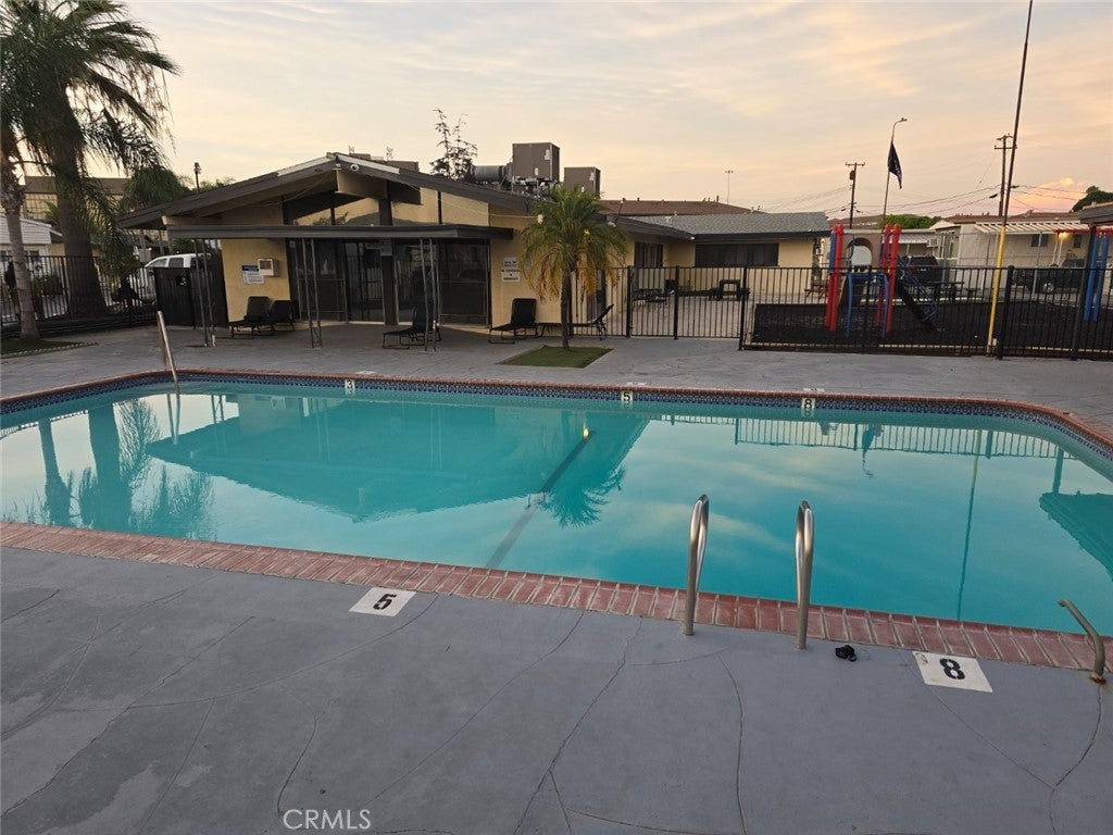 Land rent ONLY 1200 per month. Nearly brand new architectural manufactured home. Just under 800 square feet. Great family location . 2 bed, 1 bath. Optional 3rd bedroom. Open floor plan. Spacious master bedroom. Large open living room. Elegant dining room. Light and bright. Brand new laminate wood floor. Brand new natural stone Quartzite counters. Brand new interior paint. Brand new windows. Great , safe Garden Grove location. Wonderful clubhouse, pool, and playground for the family to enjoy.