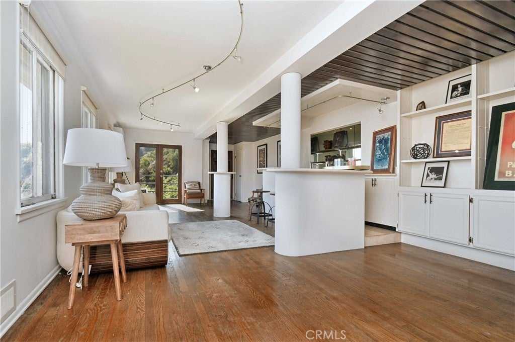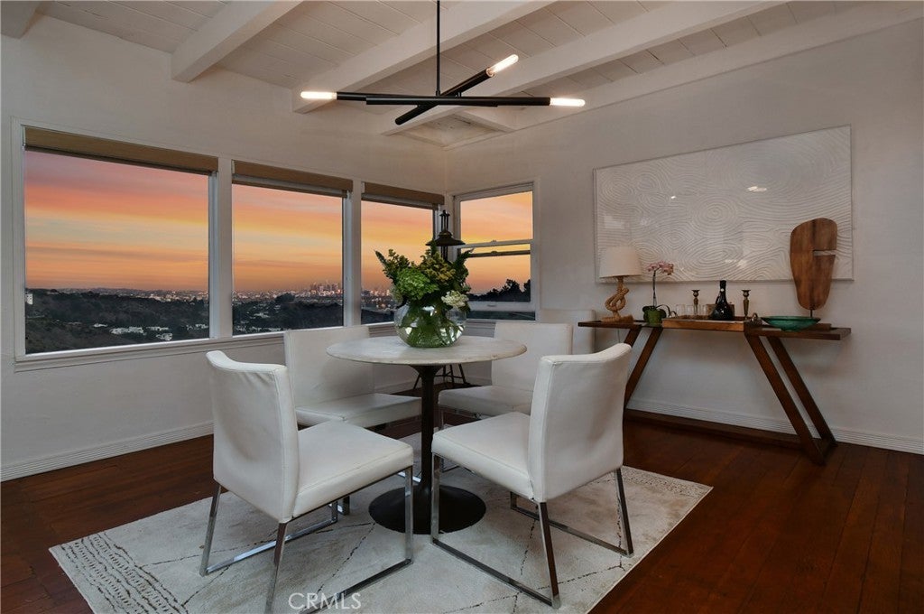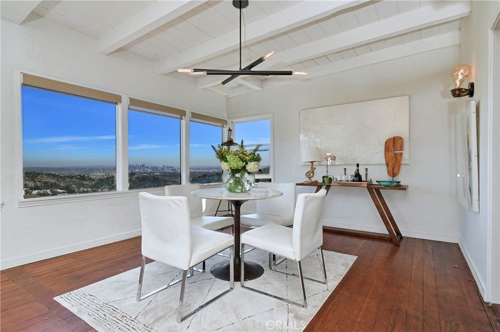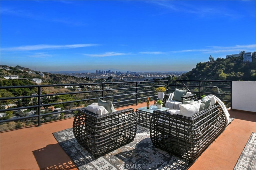 This private Spanish Villa in Laurel Canyon, situated within the desirable Wonderland School District, boasts breathtaking, unobstructed views of downtown and the surrounding canyon. Flooded with natural light, this secluded home offers expansive panoramic vistas from nearly every room, including the vast rooftop deck complete with a wet bar – ideal for both unwinding and hosting gatherings. Step through the gated courtyard and into the open-plan main floor, where you'll find hardwood floors, post and beam ceilings, and continuous wall-to-wall windows that perfectly frame the stunning scenery. The kitchen features stainless steel appliances and a charming built-in breakfast nook, providing direct access to either the courtyard or the rooftop, perfect for enjoying your morning coffee or dining al fresco. A powder room and the primary bedroom suite, which includes an en-suite bathroom and generous closet space, are also conveniently located on this level. The second level, accessible via a direct entry and a separate private entrance, is a self-contained space designed for entertainment. It features a built-in bar, a comfortable lounge area, and a second bedroom with its own en-suite bathroom. The third bedroom is situated on the bottom floor and includes a bonus room, offering versatile space that could serve as a home office, gym, or creative studio. This lower level also has a powder room and a separate entrance. For parking convenience, the property includes a two-car attached garage, a driveway with space for two additional vehicles, and further off-street parking. This tranquil retreat in the hills is also just moments away from the Canyon Country Store and its dining options, as well as Hollywood, the Sunset Strip, West Hollywood, Studio City, and more.