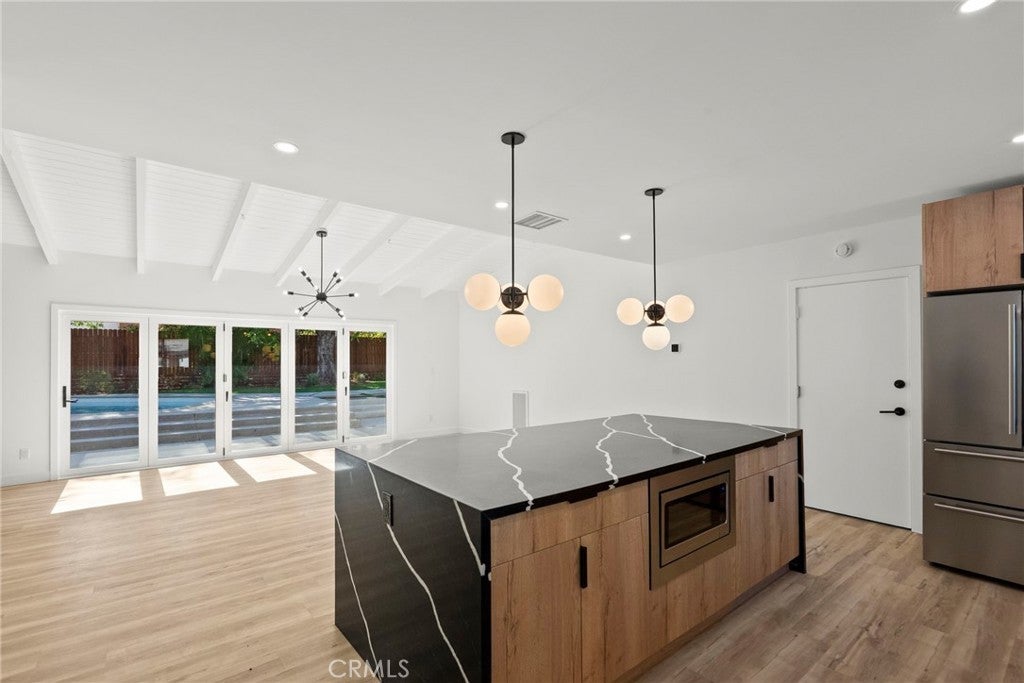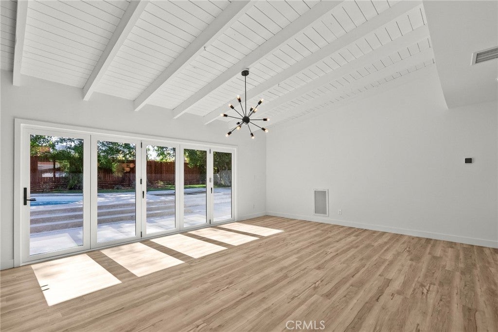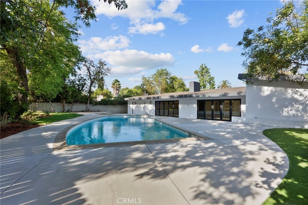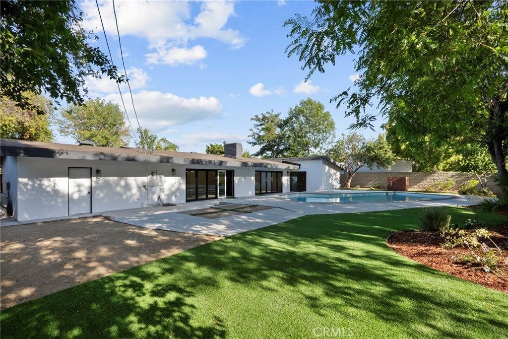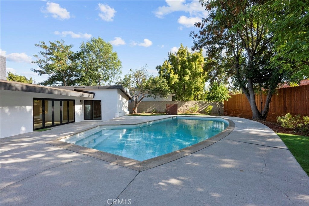 A True Entertainer’s Dream! Welcome to this stunningly reimagined 3-bedroom, 3-bath Charles Du Bois masterpiece, nestled on an expansive 10,000+ sq ft lot. This rare find combines the architectural pedigree of a renowned mid-century designer with the modern upgrades today’s buyers crave. Step inside to discover open, light-filled spaces with new vinyl flooring, recessed lighting, and dramatic bifold patio doors in both the living and family rooms—perfectly blurring the line between indoors and out. The sleek, updated kitchen is a showstopper, ideal for entertaining or quiet nights at home. All bathrooms have been tastefully remodeled, including the spa-like primary ensuite featuring a freestanding tub and separate glass-enclosed shower. Your private backyard oasis awaits! Enjoy a sparkling pool, lush mature greenery, multiple lounging areas, and brand-new drainage for peace of mind. Enjoy peace of mind with upgrades including newer HVAC system, stainless steel appliances, upgraded drainage in the backyard, turf, and drought-tolerant landscape.—move-in ready and designed for California living. Located just minutes from The Village, The Commons, premier Woodland Hills shopping, and trendy restaurants, this home offers the perfect blend of style, comfort, and convenience. Some Photos include Virtual Staging.