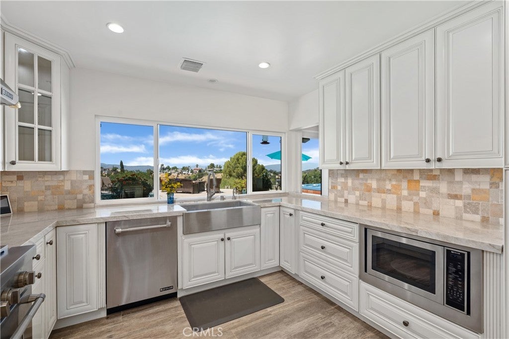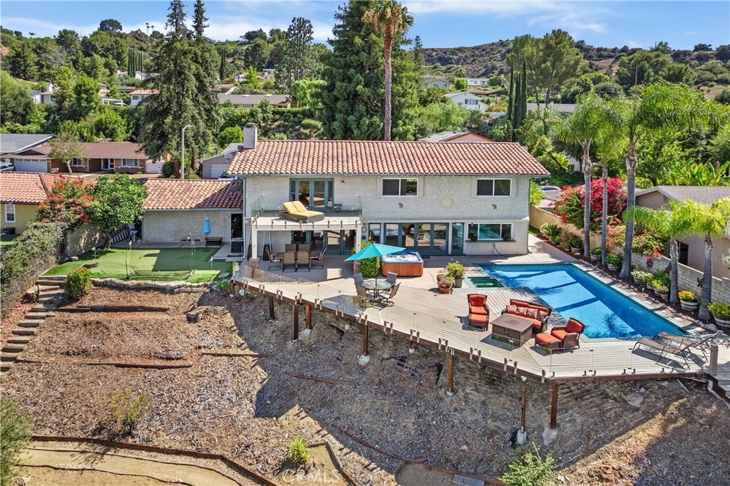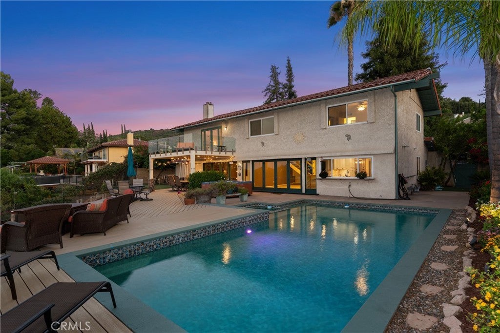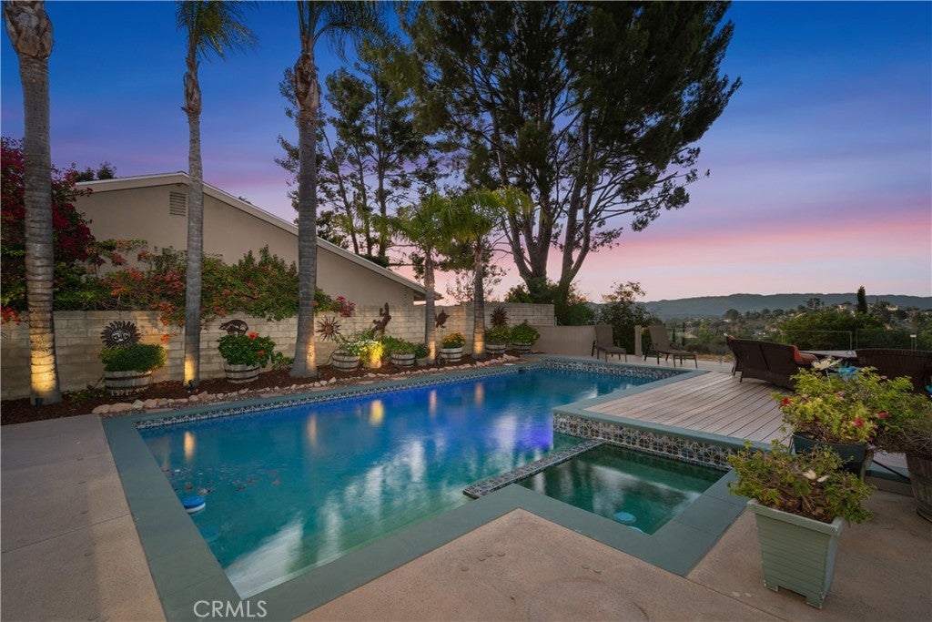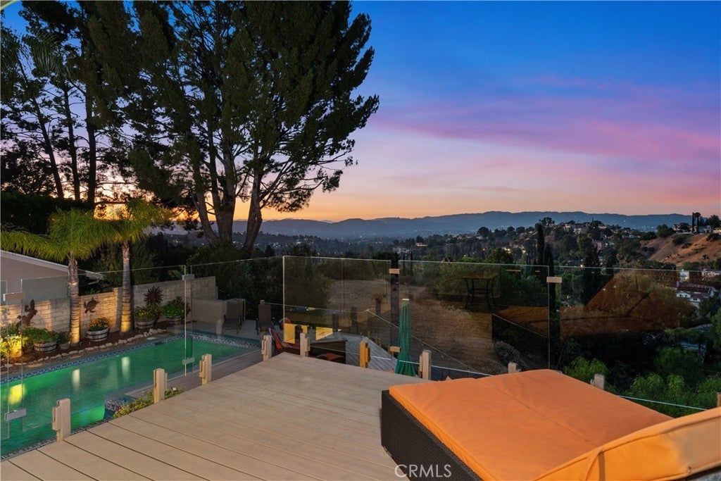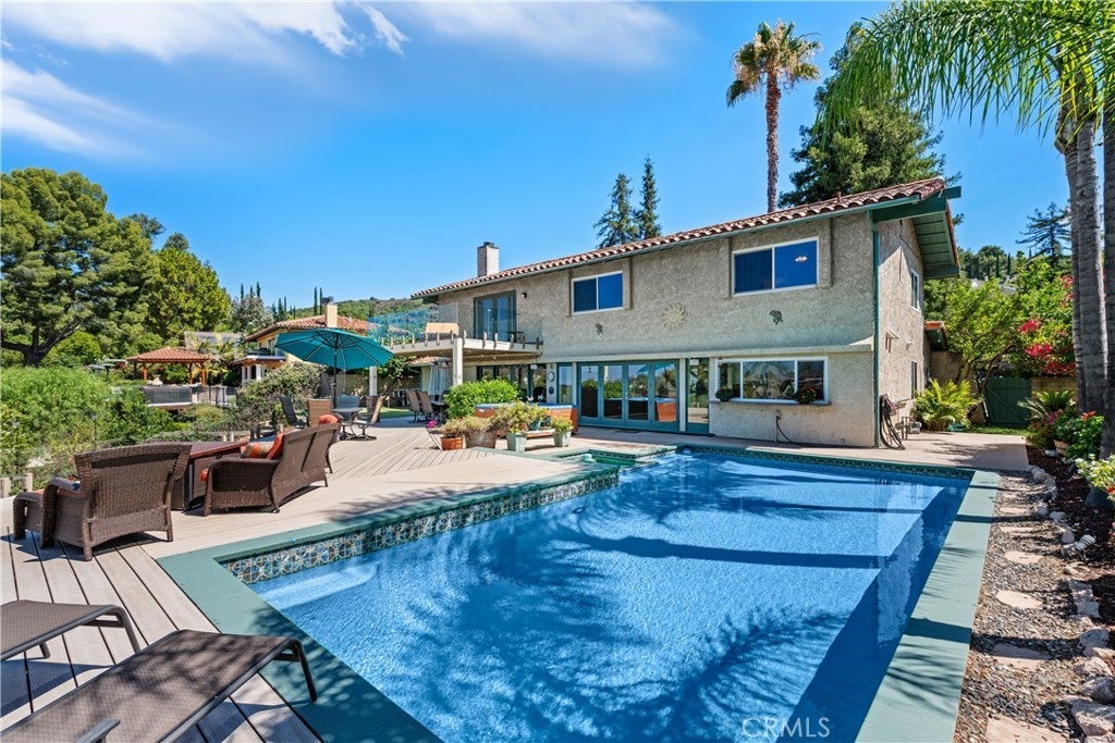 Huge reduction! Spanish Style, VIEW home with 4 bds & 3-baths situated in the sought-after Woodland Crest neighborhood of Woodland Hills. From the moment you arrive, the slate-covered front porch and beautifully landscaped dry creek bed create an inviting and picturesque curb appeal. Step through double doors into a dramatic two-story entryway, where walls of glass draw your eyes to sweeping, unobstructed forever views (backs Conservancy land). Indoor elegance meets the breathtaking beauty of nature in perfect harmony. Designed for both intimate living and grand entertaining, this home has been the backdrop for countless cherished memories. At the heart of the home is a fully renovated chef’s kitchen that impresses with every detail. Outfitted with top-of-the-line Jenn-Air appliances—including a 6-burner range with griddle and a beverage refrigerator—it features custom cabinetry, Quartzite countertops, a tumbled tile backsplash, a breakfast bar, and a cozy dining nook. The expansive family room is a warm, welcoming retreat with built-ins and a striking stone fireplace with a raised hearth. Upstairs, the private primary suite offers soaring vaulted ceilings, generous closet space, and a beautifully updated en-suite bath with dual vanities. Step onto your private balcony to savor peaceful sunrises and sunsets over the city and mountain skyline. Each secondary bedroom is spacious and light-filled, complete with ceiling fans and mirrored wardrobes. Two-story windows bathe the home in natural light, creating a bright, airy ambiance throughout. Step outside into an entertainer’s paradise: a covered patio, sparkling pool, putting green, and mature citrus trees (including lime and grapefruit) await. The massive Trex deck offers the perfect setting for unforgettable gatherings with panoramic views as your backdrop. Newer roof & windows, freshly painted and meticulously maintained, this home is truly move-in ready. Located just minutes from luxury shopping, approx. 15 minutes from Malibu, and near top-rated schools, this is more than just a home—it’s a lifestyle. With the new Los Angeles Rams training facility and the Warner Center 2035 Plan on the horizon, Woodland Hills is an area poised for exciting growth and opportunity. Don’t miss your chance to own a piece of Southern California paradise—where timeless style, unmatched views, and modern convenience come together seamlessly. Seller will entertain options to buydown Buyers interest rate with acceptable offer.