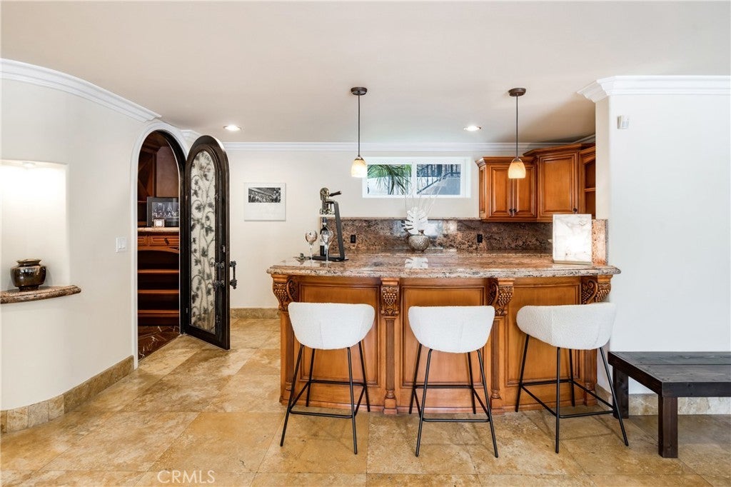 Wet Bar, Breakfast Bar, Built-in Features, Balcony, Ceiling Fan(s), Separate/Formal Dining Room, Eat-in Kitchen, Granite Counters, High Ceilings, Multiple Staircases, Recessed Lighting, Storage, Bedroom on Main Level, Primary Suite, Walk-In Closet(s), Crown Molding, Dumbwaiter, Entrance Foyer, Furnished, Wine Cellar