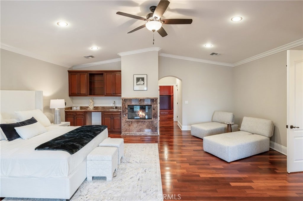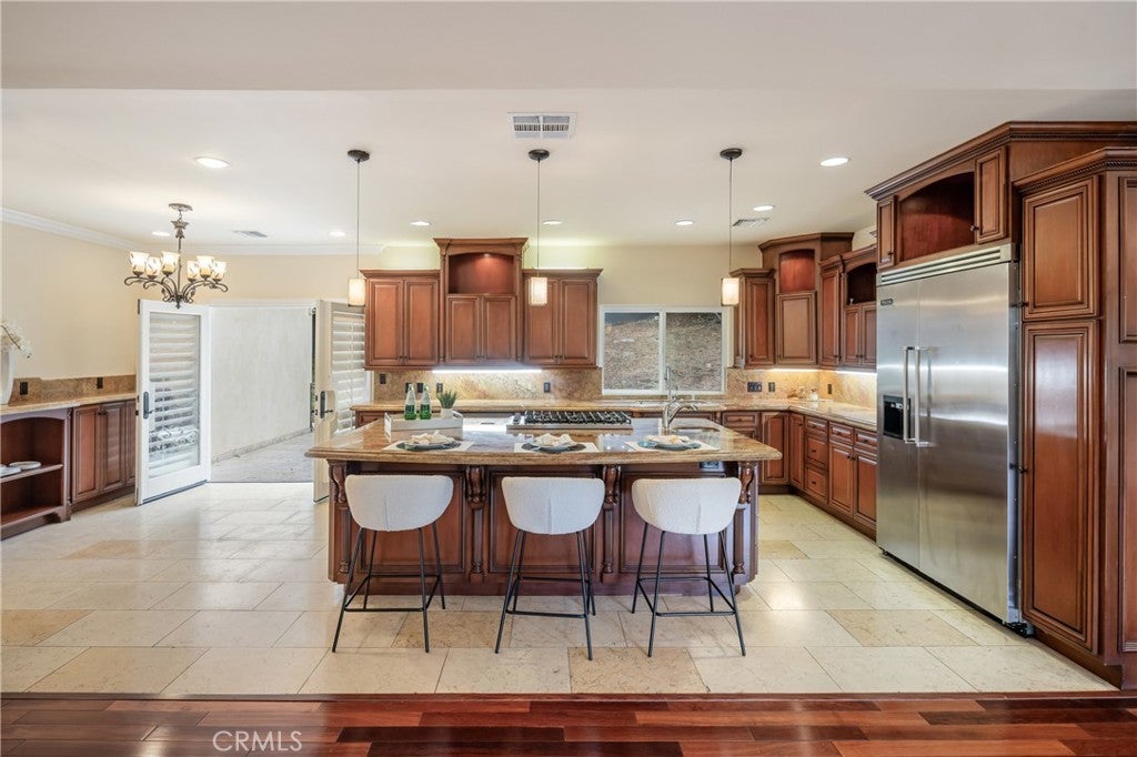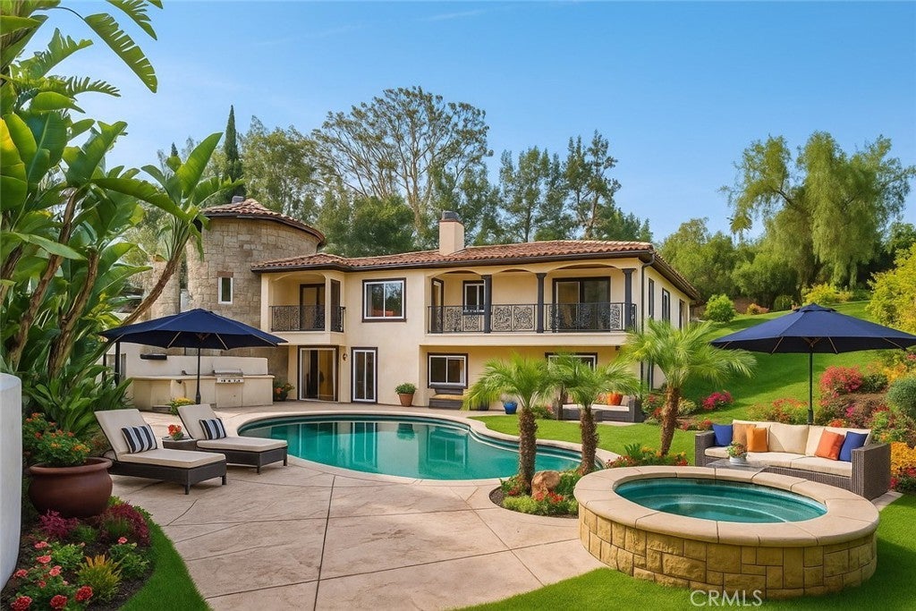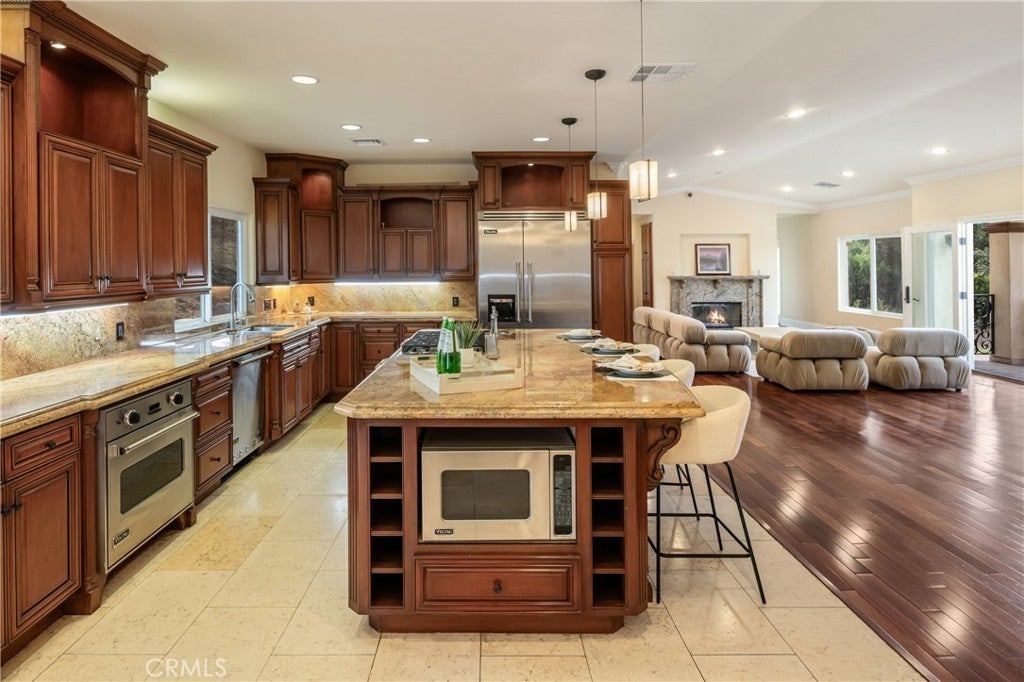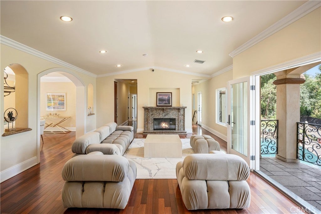 Behind private elegant gates, this breathtaking residence offers timeless elegance, privacy, and panoramic valley views. A grand 25-ft entry tower with Venetian plaster, dramatic banisters, and exquisite flooring sets the tone for the craftsmanship found throughout. The gourmet chef’s kitchen features granite counters, custom cabinetry, Viking appliances, and a large center island with garden views—perfect for entertaining. Two main-level bedroom suites, a full bar, wine room/humidor, dumbwaiter, and laundry chute add convenience and luxury. The primary retreat is a true sanctuary with Brazilian cherry wood floors, Carrera marble spa bath, fireplace, wet bar, balcony, and dual walk-in closets. Additional en suite bedrooms provide comfort and privacy for family and guests. Resort-style outdoor living awaits with a sparkling pool & spa, Viking BBQ, fire pit, and expansive entertainer’s patio. A rare 6-car tandem garage ensures ample parking, while lush landscaping and long private driveway offer seclusion. Built with no expense spared, this estate blends Old-World charm with modern amenities. Close to golf courses, hiking trails, Ventura Blvd dining, shops, and more. This home defines luxury living in prime Tarzana. AVAILABLE FOR RENT UNFURNISHED $15,900