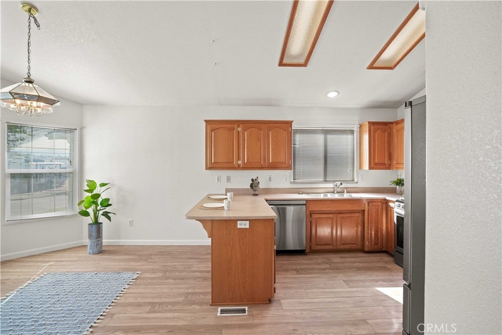 With one of the lowest land lease amounts in the community and a $12,500 seller credit offered at closing for a new roof, this home is not only stylish and functional but also a fantastic value. Welcome to this charming 3-bedroom, 2-bathroom home spanning 1,482 square feet, where modern upgrades meet everyday comfort! The home features recently serviced A/C, heater system, and air ducts and has been thoughtfully updated throughout. Step into a bright and inviting interior with newer laminate plank flooring in the main areas and upgraded carpet in the bedrooms—both installed approximately one year ago. The kitchen showcases beautifully refinished cabinets and upgraded stainless steel appliances, including a built-in microwave and refrigerator. Enjoy meals in the bay window dining nook, offering a cozy and light-filled space. The home has also been fully re-plumbed with copper piping, and the guest bathroom has been completely remodeled with fresh, modern finishes. The open-concept living room features a warm and welcoming fireplace, creating an ideal space for gathering. Ceiling fans in the living room and primary bedroom provide additional comfort. The primary suite includes an en suite bathroom and an elegant French door leading directly to the backyard, while the front entrance is enhanced with a stylish glass storm door. Step outside into a private backyard retreat featuring a patio slab with a cover, a charming couch swing, mature trees, garden planters, and a grassy area complemented by a tranquil horsetail garden. A direct access two-car garage completes the package with ample parking and storage. This home is located in Canyon View Estates and has a current monthly land lease of $1,559.04 per month which includes community amenities such as a 24 hour gate, usage of 2 pools and spa, 2 sport courts, and 2 play areas. Canyon View also offers a community clubhouse and RV storage. Home is located near parks, bike & walking paths, shopping & entertainment, and schools. Easy freeway and Metro-link access. Home is a must see! Please submit pre-approval along with proof of funds with offer. Buyer to verify all before close of escrow. Welcome home! Don’t miss out on this beautifully updated, move-in-ready home offering comfort, charm, and smart upgrades throughout!