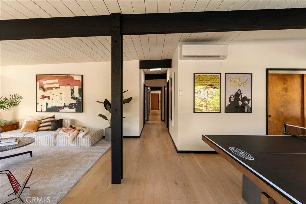 The Schustack Residence | 1957 | by Howard Lane, FAIA Nestled on a private street low in the Hollywood Hills, The Schustack Residence stands as a masterwork of modernist architecture. Designed in 1957 by Howard Lane, FAIA—a protégé of Mies van der Rohe and the visionary behind several of Los Angeles’ most significant commercial buildings—this rare post-and-beam home embodies the essence of timeless mid-century design. Recently and completely refreshed, the home seamlessly blends its original architectural character with modern comfort and style. The gated, single-level floor plan opens effortlessly to the outdoors, where over 19,000 sq. ft. of mostly flat grounds provide privacy, space, and tranquility. A spacious den offers flexibility as a family room, workspace, or additional bedroom, while the modernized kitchen, oak flooring, updated exterior stucco, landscaping, upgraded electrical, and tankless water heater enhance the home’s refined livability. A glistening, kidney-shaped pool anchors the lush outdoor setting—perfect for entertaining or quiet retreat. Situated on a peaceful dead-end street among neighboring estates valued above $30 million, The Schustack Residence represents a rare convergence of architectural pedigree, generous land, and a coveted Hollywood Hills location—making it a true collector’s property and an extraordinary value.