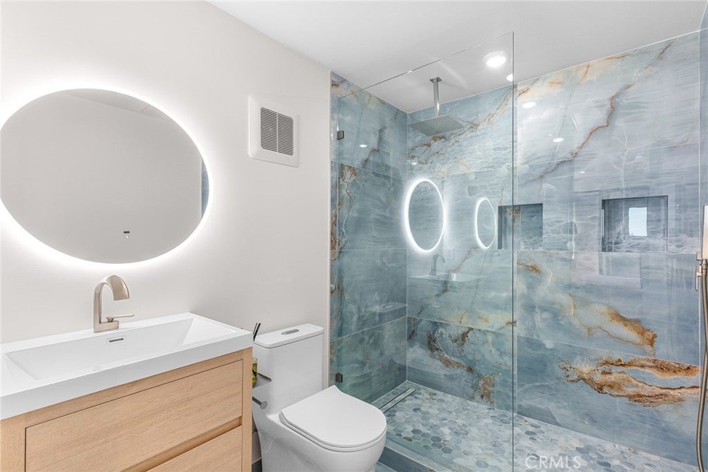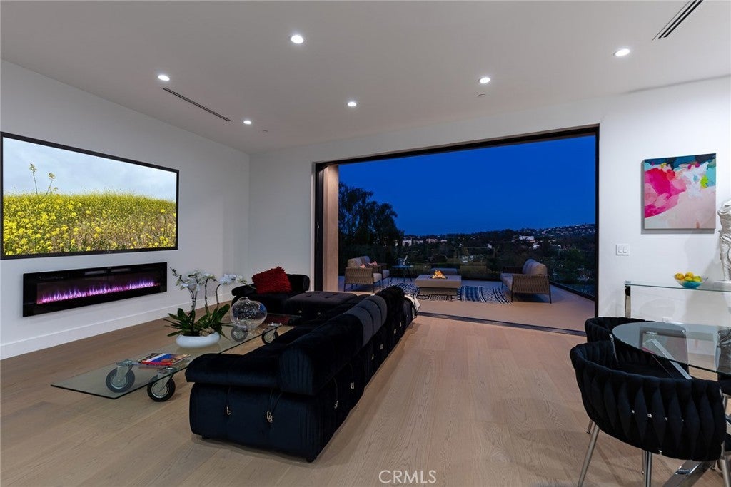2025 NEW CONSTRUCTION VIEW HOME with jet liner views located south of the BLVD in Woodland Hills! Modern Masterpiece with over 3400 sq ft of living space with no expense spared. Impressive Architecture, sleek design ,smooth stucco modern living greets you as you pull up to this stunning view home. Enter to light filled house with windows that show case the view. State of the art kitchen ,large 8 ft island, custom cabinets, built in wine refrigerators, designer stainless steel appliances. Fireplace, open concept living with pocket doors that seamlessly blend indoor and outdoor living. Perfect for entertaining, open concept with dining area , kitchen opens up to living room and huge deck. This home offers five bedrooms, five and a half bathrooms, home theater, game room ,multiple decks and outdoor seating areas .Finished garage with direct access to home and private deck. Primary bedroom showcases like a 6 star resort with huge walk in closet. Primary bath with designer soaking tub ,step in shower and smart toilet. Office that leads to backyard with additional outdoor living space and yard. Hardwood floors, detailed lighting and built ins. This all electric property has to many upgrades and details to mention. Ultimate luxury and privacy. Home next door 5130 Medina is listed as well. Purchase one or both and create your own compound. Located near RAMS new training facility, THE VILLAGE, Topanga Social, The mall and all new hip trendy shops and restaurants. A perfect 10 bring your pickiest buyer .Perfect for investors as a rental property or Airbnb.