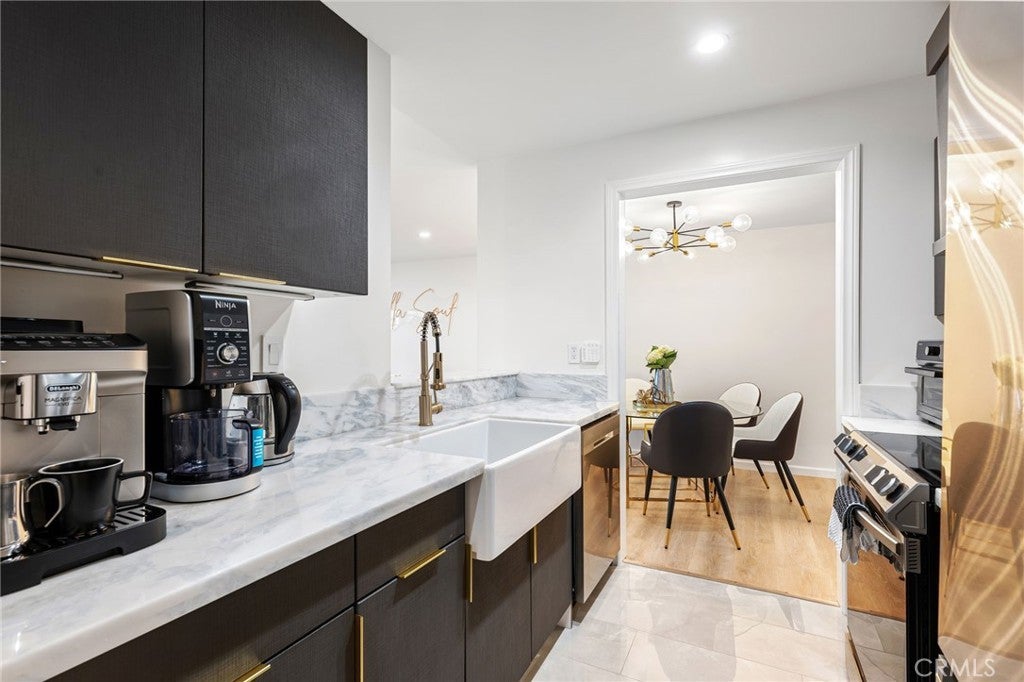 Welcome to your dream home at the Doheny Terrace! This luxurious 1-bedroom, 1-bathroom condo is located in the highly sought-after Norma Triangle neighborhood of West Hollywood, bordering Beverly Hills. Step into a beautifully designed space featuring a sleek, modern kitchen with Namib Fantasy Quartzite countertops, custom cabinets, and brand-new Samsung appliances, including a WiFi-equipped stove that connects seamlessly to a smartphone app. The open-concept living area is bathed in natural light, enhanced by custom shades, and features elegant French balcony doors leading to a serene turf patio—perfect for relaxation. The spacious bedroom boasts a custom walk-in closet, offering ample storage, while the spa-like bathroom indulges with a deep soaking tub, a Bluetooth ventilator, a heated toilet with a bidet function, and a dual vanity sink with a granite countertop and modern fixtures. Designed for effortless entertaining, this condo also features a built-in bar with a sink and a wine fridge—ideal for hosting. Plus, its prime location offers walking distance from Bravo Toast and moments from the Sunset Strip, Rodeo Drive, and the Beverly Center. Don’t miss this rare opportunity to own a slice of luxury in one of West Hollywood’s most coveted neighborhoods. Experience the sophisticated yet comfortable lifestyle that awaits you at Doheny Terrace.