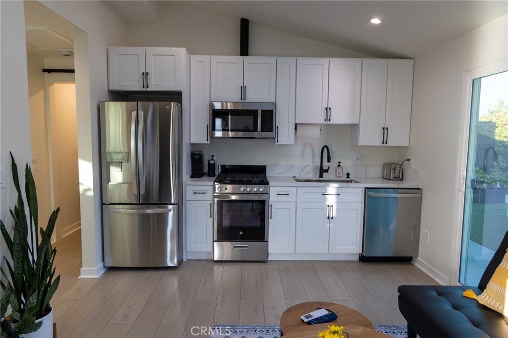 Modern 1-Bedroom ADU in Prime Woodland Hills Location! Newly built in 2025, this attached ADU offers 404 sq. ft. of thoughtfully designed living space with high ceilings, skylights, and abundant natural light. The contemporary kitchen includes sleek cabinetry, stainless steel appliances, dishwasher, microwave, and a refrigerator with water dispenser and ice maker. The bathroom features a walk-in glass shower and smart toilet. Additional amenities include laminate flooring, recessed lighting, keyless smart entry, and an in-unit stackable smart washer and dryer. Enjoy your own private entrance, backyard, and driveway security camera, with convenient street or driveway parking and a universal EV charger. Water, gas, and internet included; electricity is separately metered. Available furnished or unfurnished, with optional kitchenware and furniture. Ideally located minutes from the 101 Freeway, Topanga Mall, Pierce College, Kaiser Permanente, Trader Joe’s, Ralphs, Costco, Starbucks, and more.