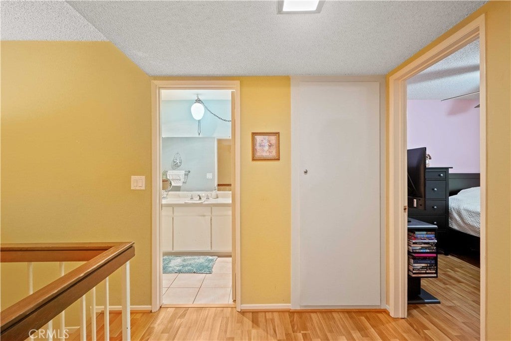 Location! Location! Location! Welcome to this beautifully maintained two-story home located in the highly sought-after gated Peppertree community of Northridge. This residence offers a blend of comfort, convenience, and community living. Inside, you’ll find a spacious living room with serene views of the greenbelts, kitchen with ample cabinetry and views into the private patio—perfect for indoor-outdoor living. The first floor also features a dining room with a sliding glass door to the patio area and a convenient guest bathroom with a laundry area on the main level. Upstairs, the primary suite boasts a private balcony, an en suite bathroom with walk-in shower and vanity, and generous closet space. Two additional bedrooms and a full hall bathroom with a large vanity and shower-tub combo complete the second level. Additional highlights include ceiling fans throughout for added comfort. Residents of Peppertree enjoy fantastic HOA amenities including 2 assigned parking spaces (one covered parking space with storage cabinet), secure gated entry, a sparkling pool, additional kid pool, tennis courts, spacious greenbelts, and included water and trash utilities. Ideally situated near shopping at the Galleria Market, parks, dining, CSUN, Northridge Little League, Smart & Final and easy freeway access, this home offers both convenience and a welcoming community atmosphere. Don’t miss the opportunity to make this beautiful property your new home!