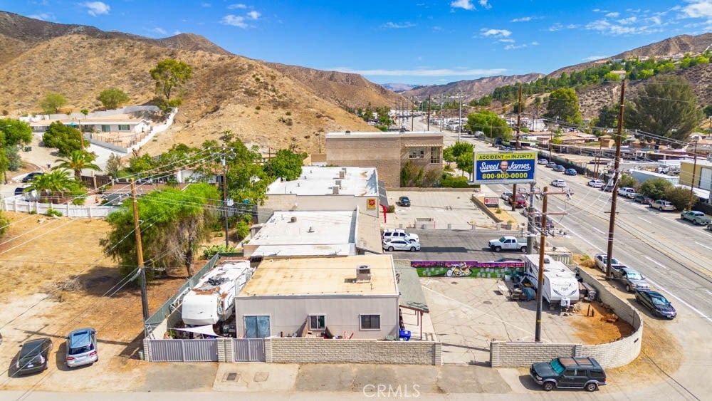 Sierra Hwy Commercial Office Building For Sale Prime Commercial corner property in Santa Clarita. This multi-use building is fully fenced with a block wall and electric gate for security offering many business options. Property lot size is approximately 7,552 SF. It consists of office space, a large open shop space inside and covered outside space, and large yard for parking, along with a 20 ft shipping container for storing tools. Two front offices are 130 SF, and 156 SF with separate entry door, with 98 SF half bathroom and kitchenette. The open shop area is 718 SF with double door access, could easily be divided into two separate spaces. The back office space has a separate double door entry and is 167 SF with a 96 SF kitchenette and 36 SF half bath. Front parking area inside block wall is approx. 3200 SF. Rear parking area is 1134 SF with double gate entry. Side area of building is a 336 SF covered work area with a 20 ft shipping container. New insulation and siding were installed in March 2023, as well as a new electrical panel and wiring, and a new roof was installed in August of 2022.HVAC is two systems, central unit for main building and one ductless double mini split unit. Don’t miss this opportunity to conduct your business in a prime location while securing equity growth in Santa Clarita.