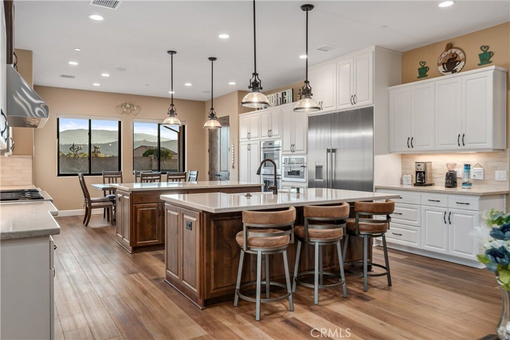 ***LIVE BEAUTIFULLY*** Luxury Desert Retreat with Breathtaking Mountain Views. Built with all the finest materials and details throughout. (COST TO BUILD exceeded $1,853,000). Nestled on a fully fenced 2.5+ acre lot, this nearly 4,000 sq. ft. estate offers the perfect balance of privacy, elegance, and modern comfort. Built In 2021, with 5 spacious bedrooms and 4.5 bathrooms, every detail of this home has been designed for both luxury living and effortless entertaining. Step inside to discover a gourmet chef's kitchen, featuring dual islands, Thermador appliances, custom cabinetry, a 6-burner stove with pot filler, and ample space to create culinary masterpieces. The open design flows seamlessly to living areas filled with natural light through Anderson doors and windows, while motorized blinds provide convenience throughout the home. The primary suite is a true sanctuary, boasting direct backyard access, a private wet bar, dual walk-in closets with barn door accents, and a spa-inspired bath with a therapy jetted tub and a stone-tiled steam shower with dual showerheads. Car enthusiasts and hobbyists alike will love the oversized 4-car garage, offering 1,200 sq. ft. of space. Practical upgrades include regular gas (no propane) and a remarkably low $110/month water bill, making this home as efficient as it is luxurious. Outside, the expansive property provides plenty of room to enjoy the tranquility of the desert, all set against a stunning backdrop of panoramic mountain views. This one-of-a-kind custom built estate is a must see!