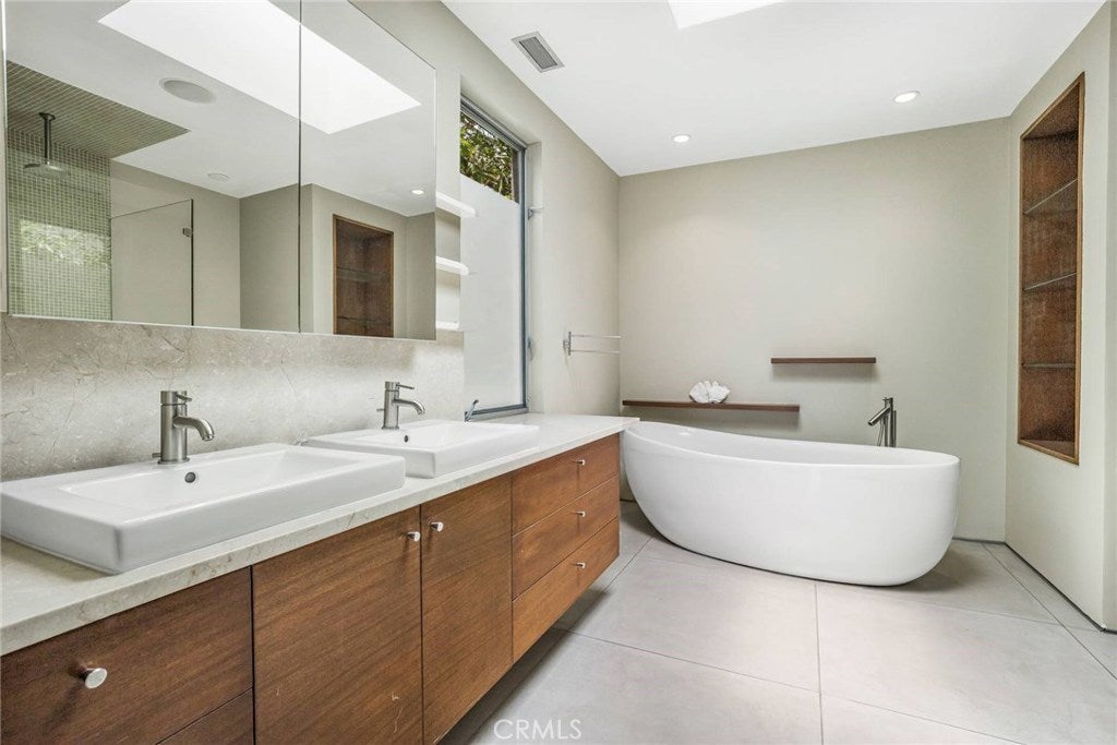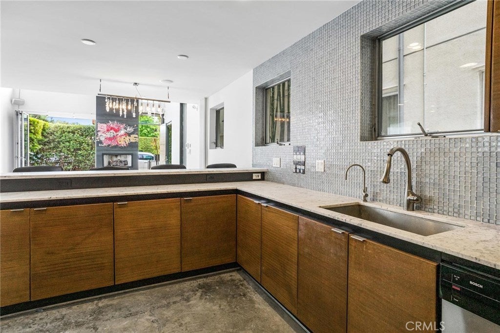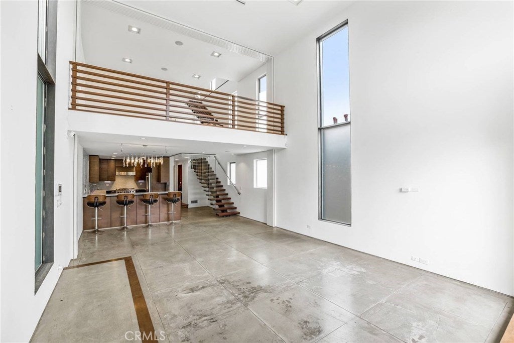 Chic and Sophisticated this Modern Architectural 4 bed 3 bath home with an incredible roof top deck is perfect for entertaining and enjoying the Venice lifestyle. Warm and inviting, the light filled living room with floor to ceiling windows, fireplace with the artistic touch of a D. Zapata original, concrete flooring and steel accents opens to the Chef's kitchen equipped with custom mahogany cabinetry, Carrera counter tops, glass mosaic back splash and high end stainless steel appliances. The floating wood & glass staircase leads you to the second floor with two sizable bedrooms, designer bath, laundry room and an artistic space overlooking the living room perfect for a study or reading lounge. The third floor boasts a generous master bedroom complete with its own private bath and decorative touches and a 4th bedroom and a media room. The roof top deck with its' 360 degree city & mountain views adds to the unmistakable ambiance of Venice. Two car attached garage. Close to Abbot Kinney & the beach!