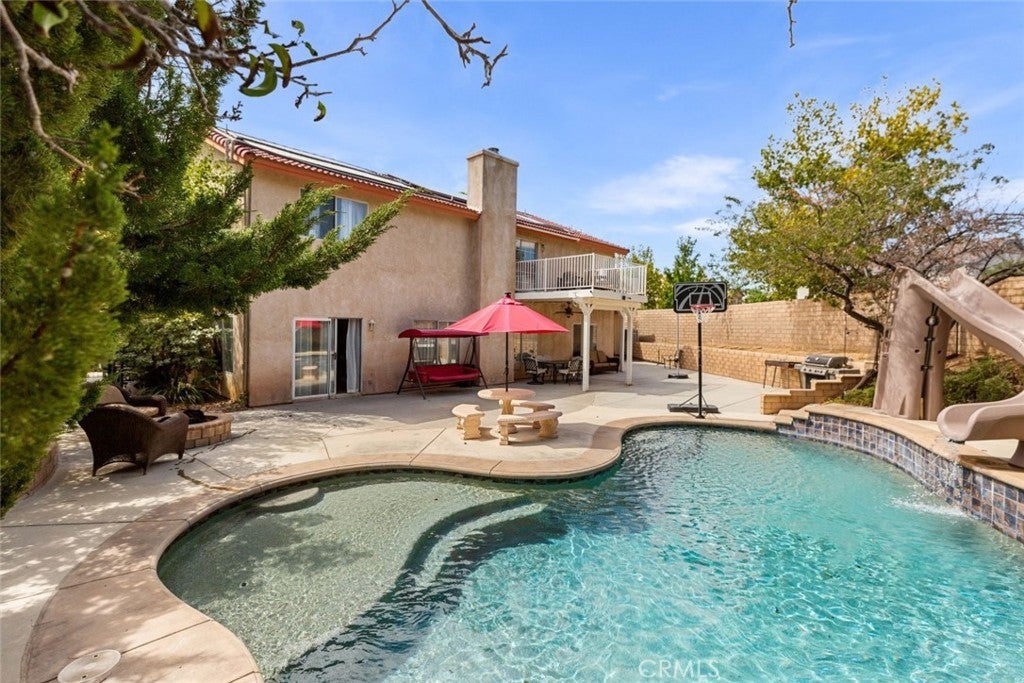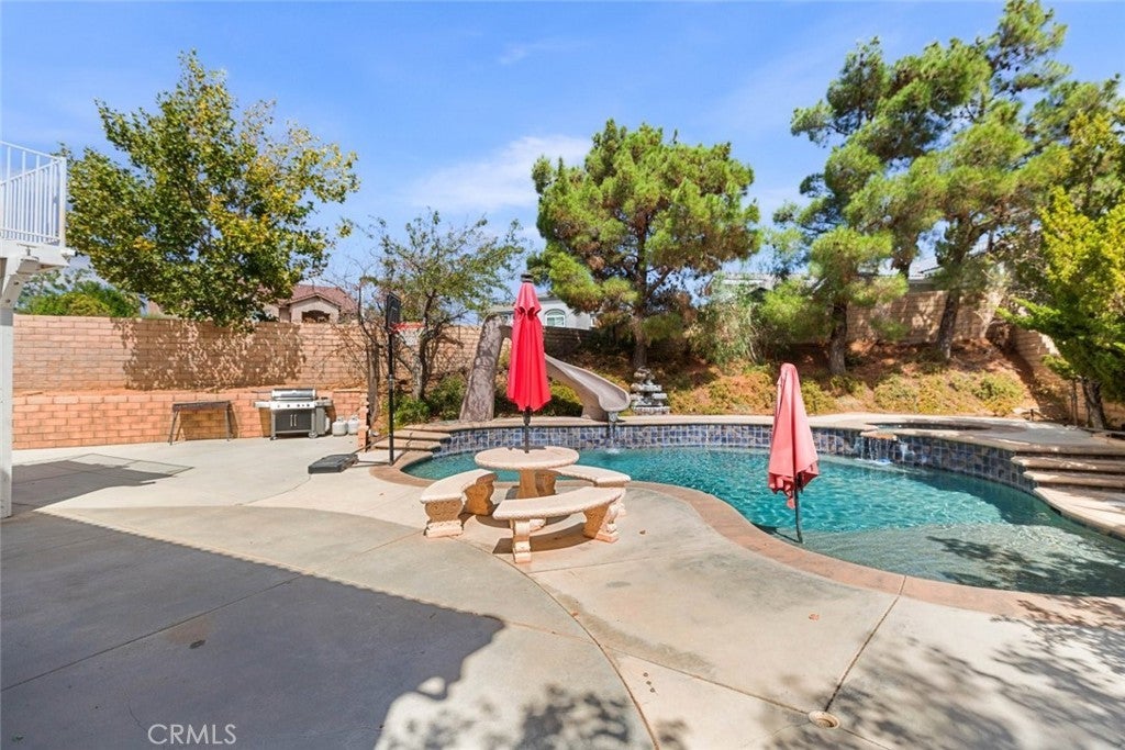 This stunning 5-bedroom, 3-bathroom single-family home offers 3,263 sq ft of beautifully upgraded living space on a generous 13,763 sq ft lot. With 3 attached garage spaces, this home perfectly balances comfort, space, and style. Home is fully furnished. Considered the entertainer's dream featuring a Pebble Tec pool with a waterfall, water slide, Jacuzzi, and color-changing LED lighting, all powered by a dedicated solar system for the pool. The home also boasts 36 fully paid-off solar panels, keeping energy costs low year-round. Enjoy evenings by the custom fire pit or host unforgettable gatherings in the freshly poured concrete patio areas that span both the front and backyard. The entire property is enclosed by block walls and custom gates, providing security, privacy, and peace of mind. Inside, the home is filled with modern upgrades throughout, truly too many to list. From spacious living areas to well-appointe