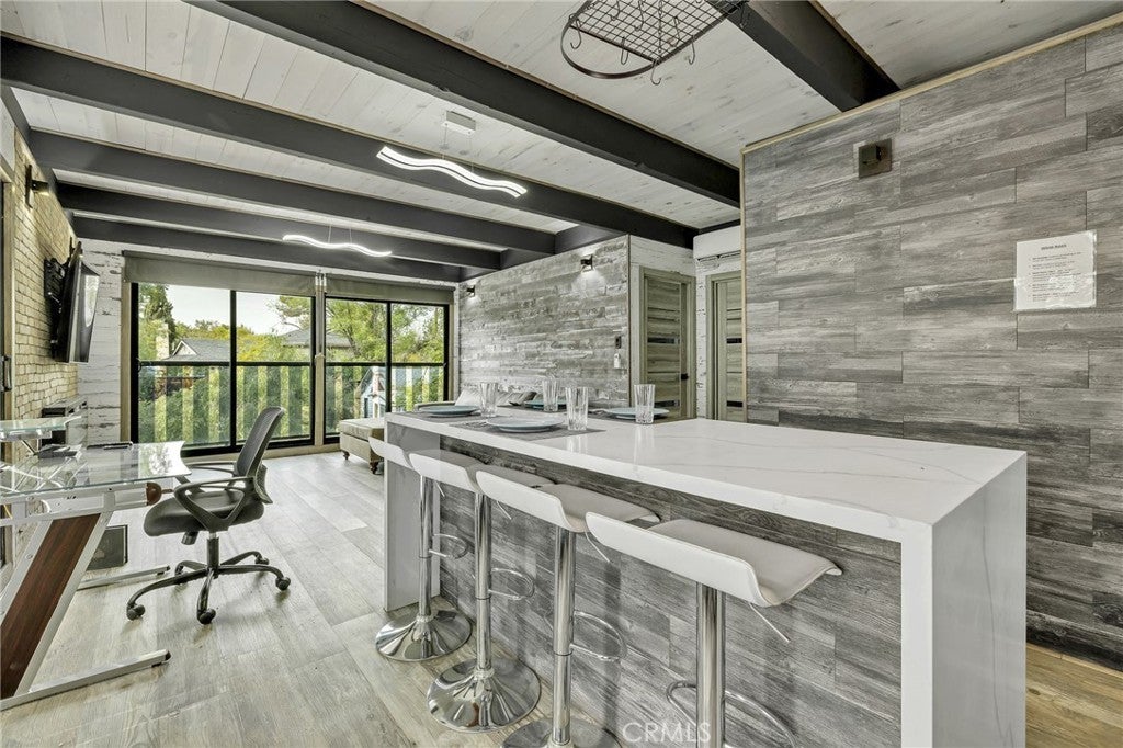 Prime Woodland Hills location! Incredible Duplex, with 2 bedrooms, 1 bathroom and kitchen on the first floor and 2 bedrooms, 1 bathroom and kitchen on the second floor, plus incredible roof top and 2 patios! The total size of the house is 1,347 sf. Lovely drought friendly landscape greets & welcomes you to a brick hardscape driveway! Enter the designer front door of luxury & WOW factor will behold you! Wooden Floors & Sparkling Marble tile have been recently added and is 'top-of-the-line'! COOL kitchen features Stainless Steel Appliances & a chef's delight of a sink with a spray function that will ease cleaning dishes prior to the new S/S dishwasher! Tons of storage in the center island that can be used as well for dining or coffee get-together! A true gathering spot of the home! The gourmet chef will truly relish this kitchen! Recessed lighting throughout! Living room has walls of glass & fireplace that is designer perfect. New windows! Wall-to-wall sliding glass doors that lead to the most delicious patio! Step up to sit under a shade tree or enjoy the lovely ambiance of the fountain! Quiet! Peaceful & Zen-like serenity! Side patio area is great for relaxing...or expanding your family get-together! Close to great schools! Ventura Boulevard! Easy Freeway access!