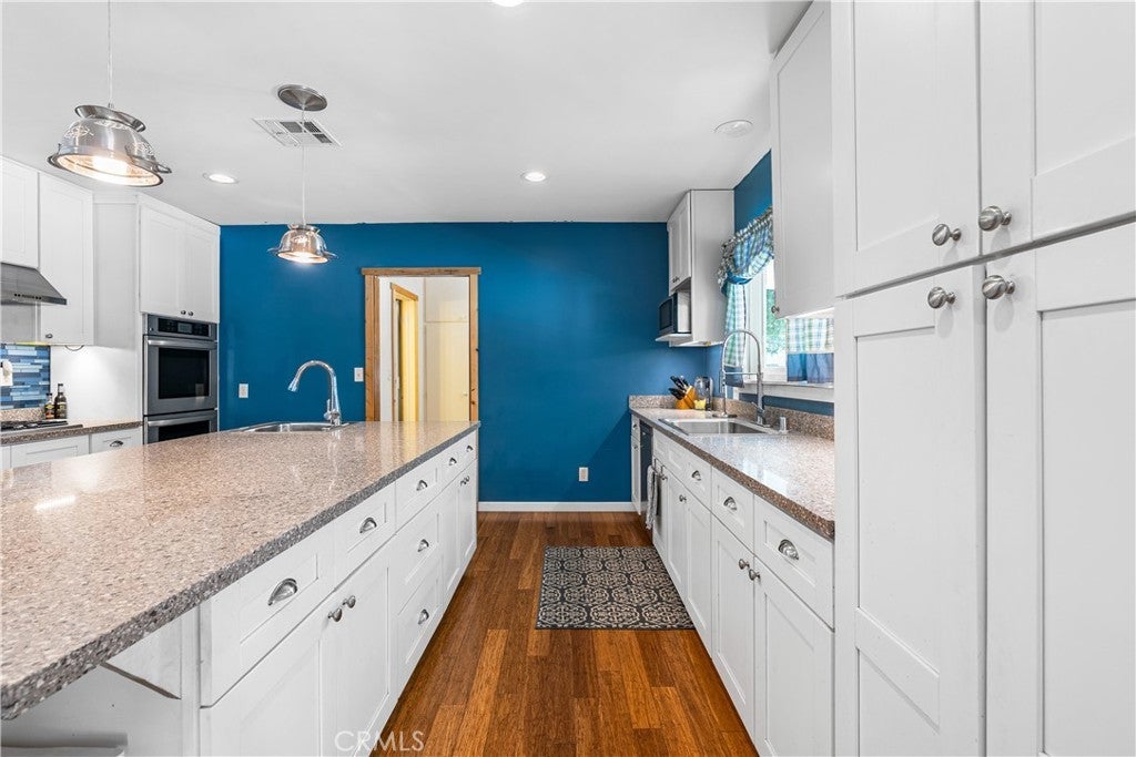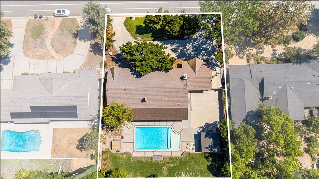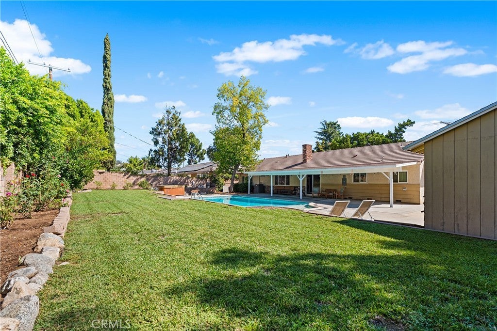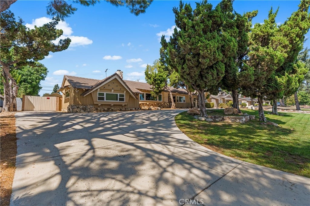 Nestled on a private, beautifully landscaped 1/3-acre lot, this 4 bed 3 bath custom-built rustic home offers the perfect blend of charm, functionality, and comfort. A circular driveway provides ample parking, w/RV access for convenience and privacy. Step through a one-of-a-kind front door into a formal entry, leading to a sun-filled living room featuring a stone fireplace, wood-beamed ceiling, and a wall of windows. Also included is a mounted 86” LG UHD TV with AI ThinQ. The dining room opens to a remodeled gourmet kitchen, featuring a used brick fireplace, built-ins, and elegant Bamboo Hardwood floors extending through the entry, dining room, kitchen, utility room, and hallway. The kitchen is a chef’s dream, boasting double ovens, a 5-burner stove, Kenmore built in refrigerator, self-closing drawers and cabinets, Quartz countertops, an oversized island w/a large utility sink and breakfast bar. A separate laundry/utility offers generous storage and access to a convenient 3/4 bath. All bedrooms are spacious and well-appointed. The primary bedroom includes two closets, one walk in, a custom ceiling fan, and a remodeled bathroom w/dual sinks and tiled shower. Three additional bedrooms and a remodeled hallway bathroom includes double sinks, a tub/shower combination, Bluetooth speaker system. Upgrades include double-pane windows, updated 5-ton high-efficiency HVAC system, Nest thermostat w/updated ducting, Ring camera System, custom oversized hallway linen closet. Step outside to an entertainer’s paradise. The expansive backyard is designed for gatherings of all sizes, featuring a spacious patio with a wood-burning fire pit, a sparkling newly plastered pool with Baja shelf, automatic pool vacuum, autofill, plumbing for heat, and updated equipment, plus an above-ground hot tub. Lush landscaping ensures both beauty and privacy. Additional outdoor amenities include a permitted detached pool house/workshop, a raised garden area shaded by mature trees, beautiful roses, and 2 fruit-bearing orange trees. For convenience and efficiency, the property is equipped with two electrical panels and two water heaters. Located within walking distance to the highly sought-after Granada Hills Charter High School, as well as shopping and dining options, this incredible home combines privacy, luxury, and accessibility in one exceptional package.