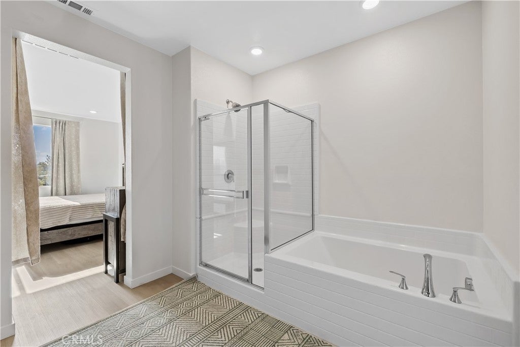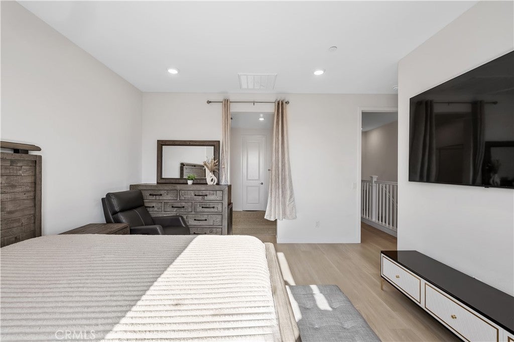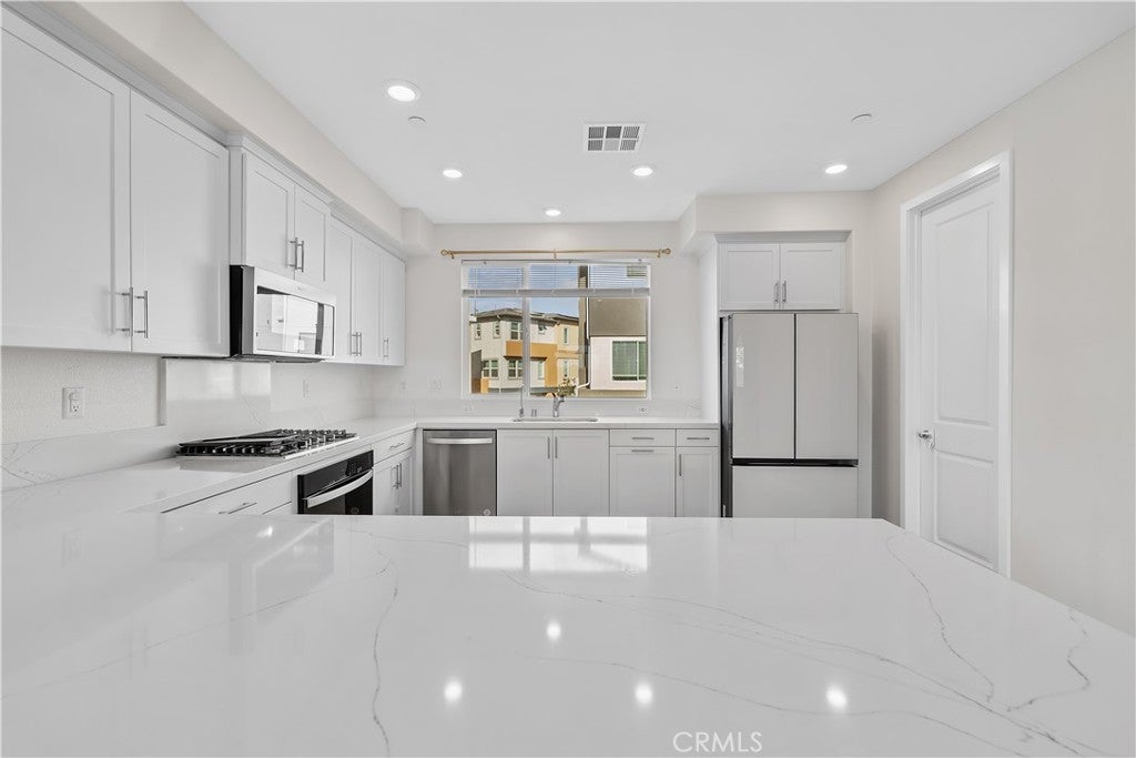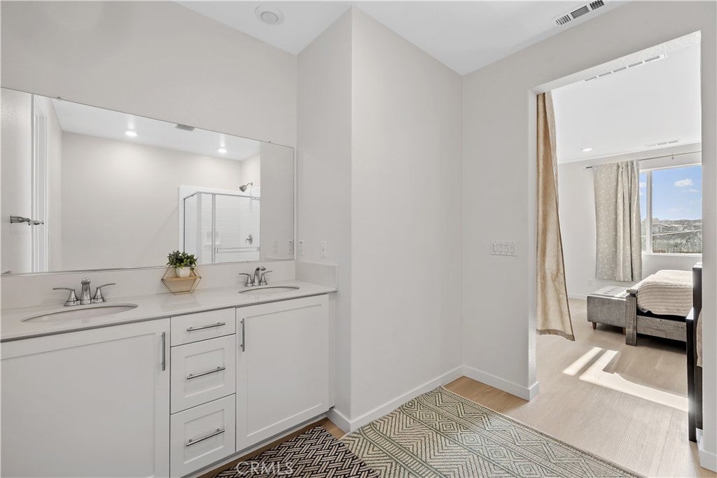 NEWLY REDUCED BY $50K !!!! THIS PROPERTY JUST BECAME AN EVEN BETTER DEAL! SELLER IS MOTIVATED AND WILL REVIEW ALL SERIOUS OFFERS. DON'T MISS THIS OPPORTUNITY! Welcome to your personal "SANCTUARY" at 27579 Sanctuary Ct, Valencia! This turn-key, top-of-the-line home offers a spacious three-level layout perfect for modern living and entertaining. On the first level, enjoy a private bedroom with an attached bath, ideal for an in-law suite or guest room. Ascend to the second level, where you will find a stunning kitchen and family room with breathtaking views in a prime location within this beautiful community. The kitchen is a chef's dream, featuring high-end appliances, energy saving upgrades, LED lighting, and fully paid-off solar. The third level hosts a second bedroom with full bath, plus an expansive primary suite with a luxurious spa tub, dual sinks, a connecting shower, and a walk-in closet, the ultimate retreat! You'll absolutely love the high ceilings, recessed lighting, beautiful hardwood floors throughout, and a spacious two-car garage. Enjoy resort-style living with a clubhouse, multiple pools, spa, playgrounds, barbecue areas, and scenic walking trails. Every detail has been thoughtfully designed for comfort, style, and effortless living. YOUR PERFECT SANCTUARY AWAITS!