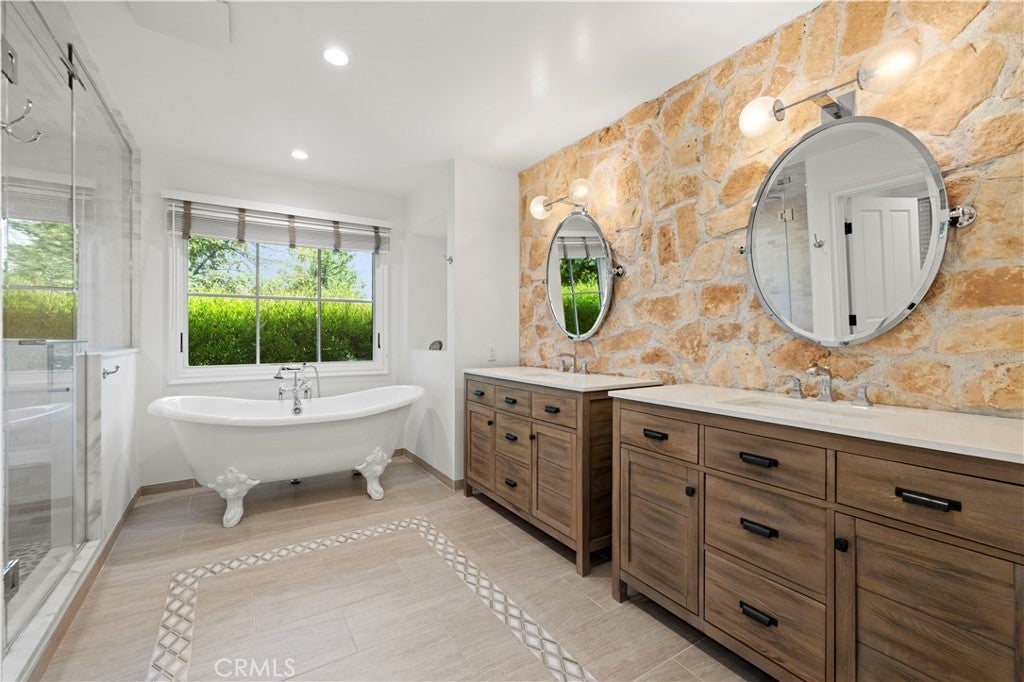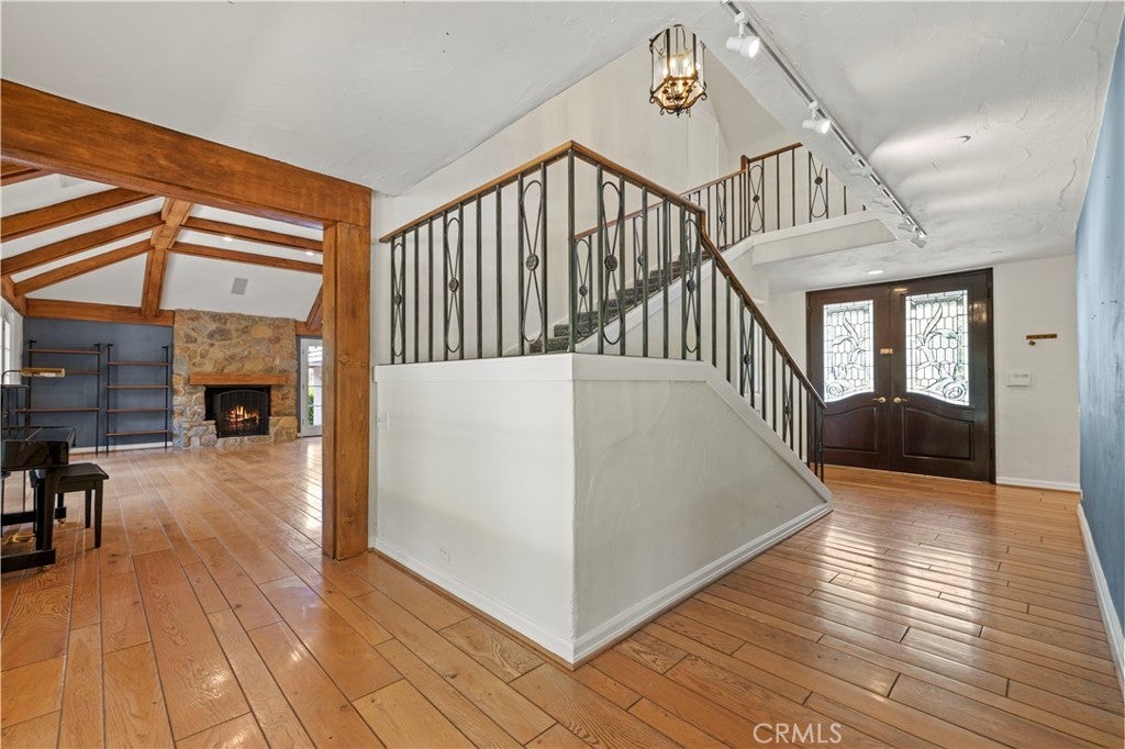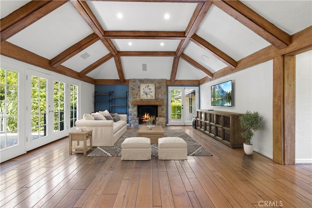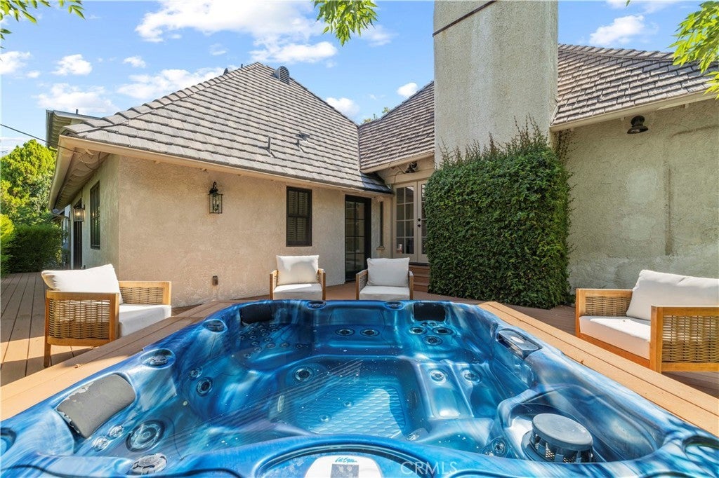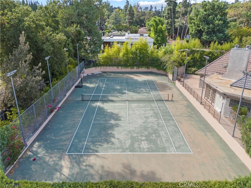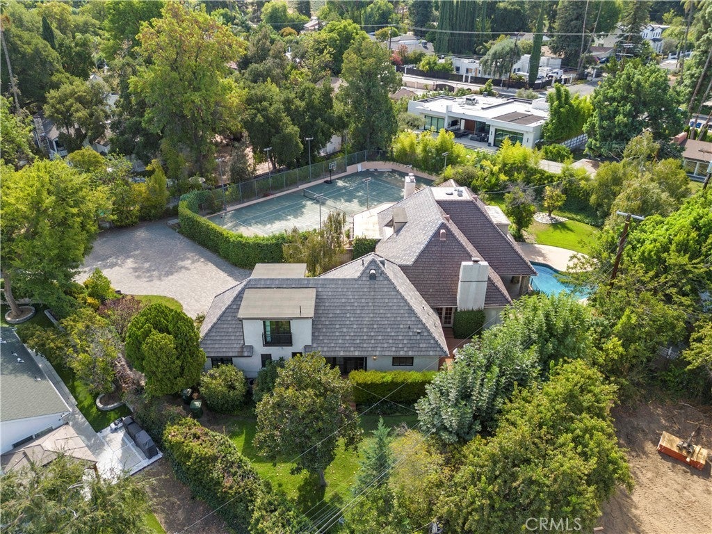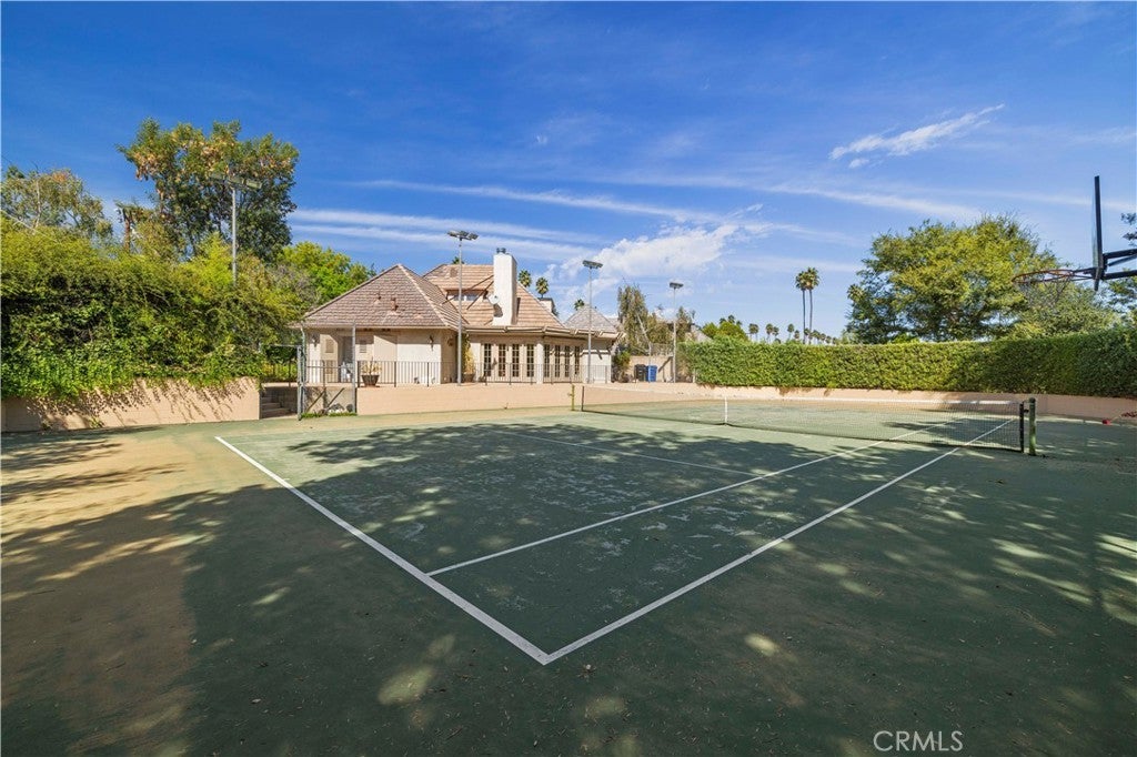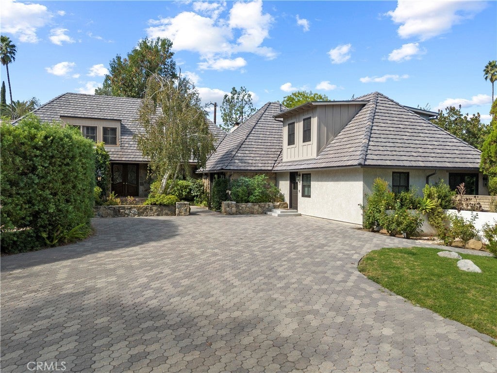 Welcome to Château Collier — a private, architecturally iconic Country French estate in Woodland Hills. Nestled behind gates at the end of a quiet cul-de-sac, just south of Ventura Blvd, this remarkable Hal Levitt–designed residence offers timeless elegance, serene privacy, and the rare opportunity to enjoy over 32,000 sq ft of flat, usable grounds in one of the valleys most coveted locations. From the moment you arrive, the estate captivates with its sense of scale and character. A lighted north/south tennis court—easily convertible to a pickleball court—invites you to play, entertain, and stay active at home. The sprawling grounds also feature lush gardens, a stylish pool, and a full-length covered portico that extends across the rear of the home, creating an effortless flow for outdoor living. Whether hosting summer gatherings or enjoying quiet evenings with family, this backyard is designed to be the heart of the home. Inside, character and warmth define the residence. Coffered wood-beamed ceilings, a dramatic floor-to-ceiling stone fireplace, and classic French doors throughout create a refined yet inviting atmosphere. The spacious formal dining room is perfect for memorable celebrations, while the cozy family room and eat-in kitchen encourage daily connection and comfort. Nearly every room opens to the outdoors, blending light, air, and nature into everyday living. The main-level primary suite is a sanctuary of its own, thoughtfully remodeled with a spa-inspired bathroom featuring a freestanding clawfoot tub, oversized shower, and expansive walk-in closet. French doors lead to a private deck and hot tub, offering a retreat-like experience just steps from your bedroom. Adding versatility and tremendous appeal is the newer built two-story ADU with its own address—5200 ½ Collier Place. This thoughtfully designed space is ideal for multi-generational living, long-term guests, rental income, or even a private creative studio. Set in a prime Woodland Hills location, Château Collier is minutes from award-winning schools, the vibrant energy of Ventura Blvd, and some of the best shopping, dining, and entertainment the valley has to offer. Blending architectural pedigree with lifestyle comforts, this estate represents a rare chance to create your forever home in a setting with undeniable charm and potential. Discover the next chapter of luxury living at Château Collier.