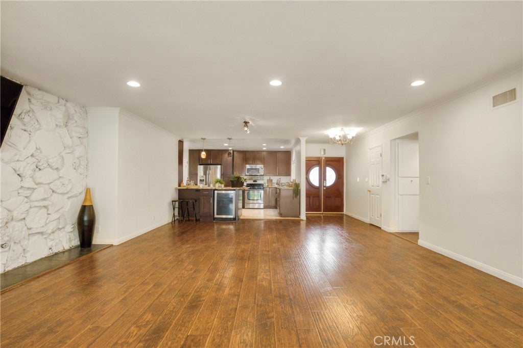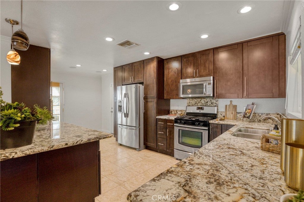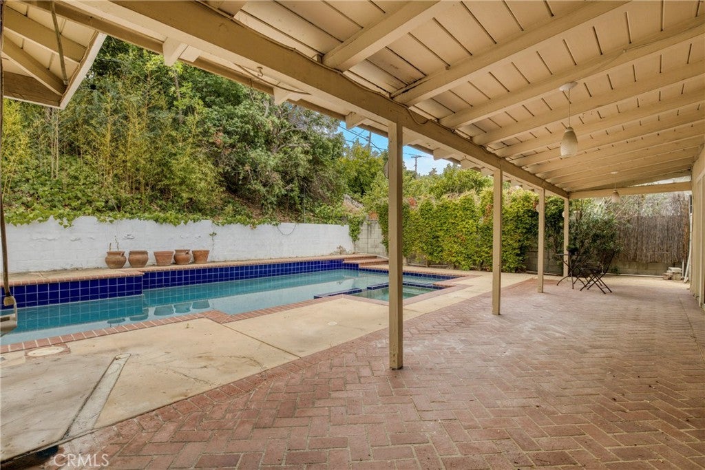 Welcome to this beautifully updated contemporary home located in the highly desirable Wood Crest neighborhood of Woodland Hills. This spacious recently updated home features 4 bedrooms, 3 bathrooms, and a versatile bonus room, offering nearly 2,000 sq ft of living space designed for comfort and functionality. The open-concept floor plan is filled with natural light and complemented by elegant finishes throughout. The gourmet kitchen boasts rich brown cabinetry, granite countertops, stainless steel appliances, a large center island with ample storage, and a built-in wine cooler ideal for both entertaining and everyday living. The primary suite offers a updated private en-suite bath, walk-in closet, and a door that open directly to the backyard oasis, complete with a sparkling pool and Jacuzzi. Secondary bedrooms are generously sized, including one with French doors that opens to the backyard and two additional bedrooms one with a bonus room and closet. Conveniently located near award-winning charter schools (Lockhurst, Hale, El Camino, Chaminade) and just minutes from The Village, Westfield Topanga, Calabasas Commons, all parks, trails, trendy restaurants, and easy access to 101 Freeway.