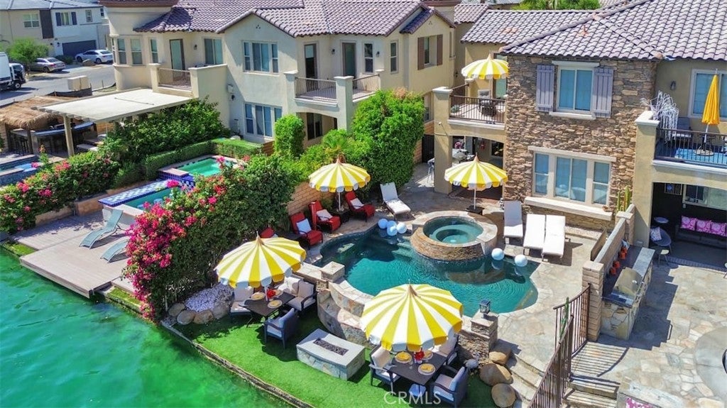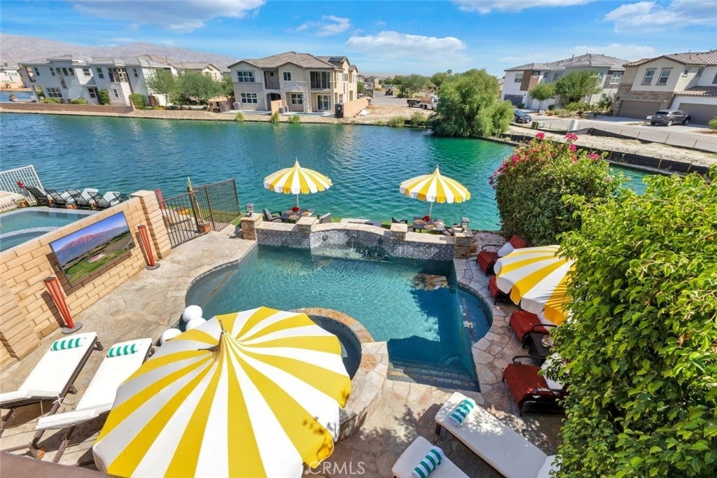 Welcome to 43240 Bacino Court, Indio, CA 92203! Discover luxury living and proven investment potential in this stunning 2-story, 3-bedroom, 3-bathroom lakefront home located in the highly desirable Terra Lago gated community. With 2,157 sq. ft. of beautifully upgraded interiors and exceptional outdoor amenities, this residence is perfectly designed for both personal enjoyment and vacation rental success. Step outside to your own private oasis, featuring a custom saltwater pool and spa, outdoor misters, fire pit, built-in barbecue, covered TV lounge, and spacious dining areas, all set against beautiful lake and mountain views. Inside, the home is equally impressive with a built-in bar, laundry room, a new $14K HVAC system, $3.5K in upgraded pool equipment, new dishwasher, and a $6K custom TV wall. Nearly all furniture (valued at $7K) is included, making this a move-in or rental-ready opportunity. The master suite offers a master bathroom , a walk- in closet, a vanity hallway, and its own private patio overlooking the lake, while the oversized garage and driveway comfortably accommodate up to four vehicles. Currently operating as a successful turnkey short term rental business with $154K in revenue since February 2024. Future bookings are transferable if buyer chooses to stay with same property management company. The property features 6 beds, and can accommodate 10 guests. Additional highlights include a separate $35K arcade/game room with pool table and air hockey (available for purchase separately). Nestled next to the renowned Terra Lago Golf Course, this property offers the rare combination of serene lakefront living, resort-style amenities, and strong short-term rental income—making it an ideal choice as both a private retreat and an income-generating investment.