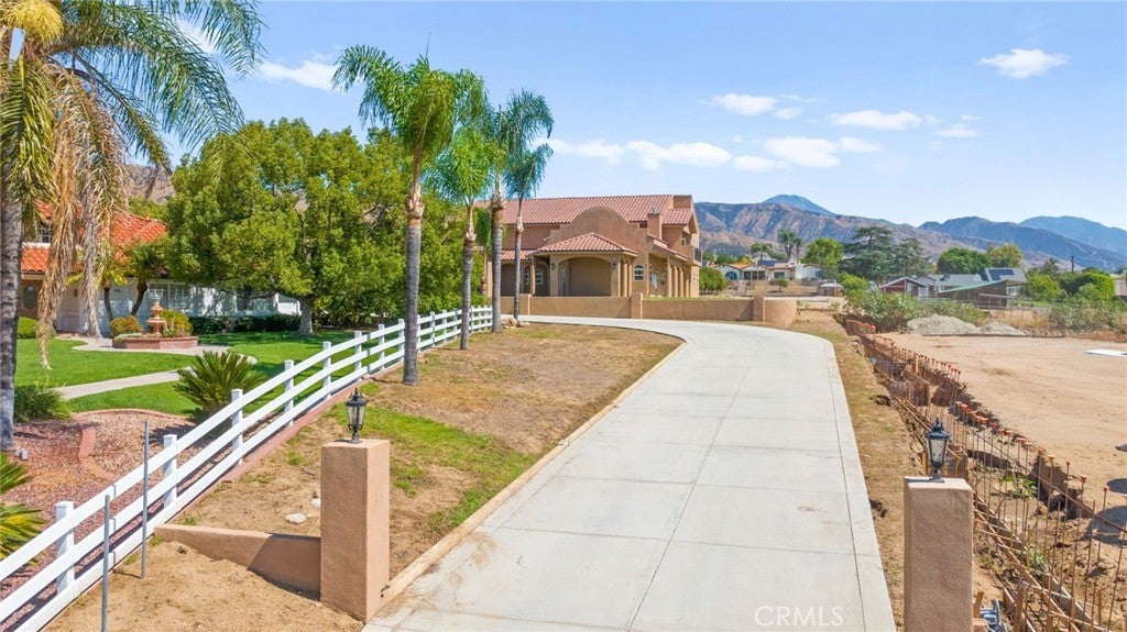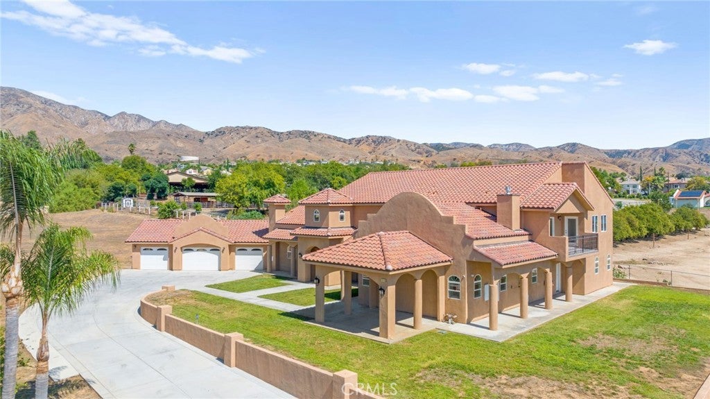 Custom built estate at the top of the cul de sac situated among other custom homes surrounded by city views and mountain. Come through the long driveway that leads to a Spanish/Mediterranean boasting 5,675 sq.feet property and 3 car garage is over 1,300 sq.feet and RV parking available.Enter the home to a grand entrance leading to a large living room with dramatic fireplace, all in an open floor plan with abundance of natural light. This estate has a large kitchen with a huge island, self closing cabinets, ample storage that opens to the dining and living room. There are 2 primary suites located one upstairs and one downstairs along with 3 more bedrooms and bonus rooms. There are 2 brand new AC, 2 brand new tankless water heater and certification for septic recently completed.This home rests on 1.69 acres. There is plenty of potential with entertaining guests outside or used for equestrian and zoned for a second unit. It’s close to schools, shopping, and hospital. Located in close proximity to I-210 and I-10 freeway.