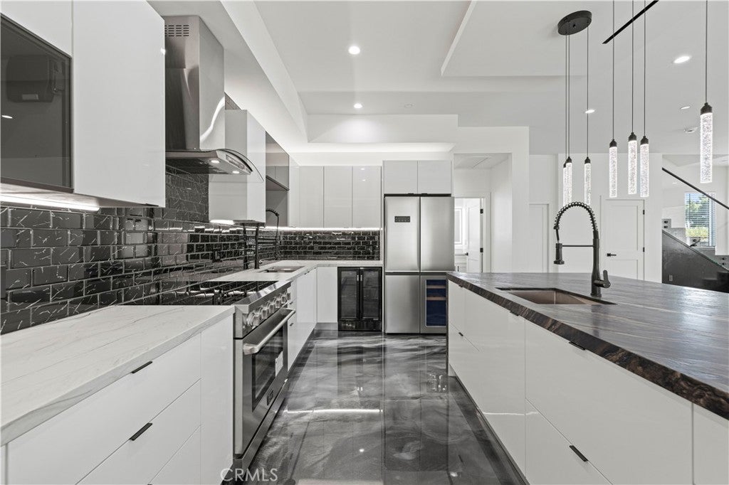 Welcome to this stunning brand-new modern residence built in 2025, located at 15209 Cohasset St, Van Nuys, CA. This contemporary 4-bedroom, 3.5-bathroom home spans an impressive 2,391 sq ft and offers a perfect blend of luxury, comfort, and functionality. Property Highlights: Spacious Floor Plan: Open-concept living with soaring ceilings, perfect for entertaining and everyday living. Gourmet Kitchen: Equipped with top-of-the-line stainless steel appliances, a massive waterfall island with modern pendant lighting, sleek high-gloss cabinetry, and an elegant black marbled backsplash. Elegant Finishes: The home features high-end polished floors with a stunning marble-like effect, recessed lighting, and a built-in contemporary fireplace that serves as the focal point of the living area. Primary Suite: Luxurious master retreat with a private bathroom featuring a dual-sink vanity, a frameless glass shower with matte black fixtures, and modern design details throughout. Additional Bedrooms & Bathrooms: Each room is bright and spacious, with ample closet space and stylish finishes. The bathrooms are tastefully designed with marble-style tile work and illuminated mirrors. Outdoor Space: Enjoy a beautifully landscaped yard with modern drought-tolerant plants, redwood mulch, and a clean, contemporary aesthetic. Parking & ADU Information: The property includes ample parking with designated spaces for both the main house and the rear ADU (Accessory Dwelling Unit). Main House: Access to a covered carport for secure parking. ADU: Rented separately with its own parking area. Driveway: Spacious and designed to accommodate multiple vehicles with ease. Additional Features: Central HVAC system for year-round comfort Energy-efficient windows allowing for plenty of natural light Smart home features and modern lighting fixtures Solar Prime location close to shopping, dining, schools, and easy freeway access This home is ready for immediate move-in, offering a sleek modern lifestyle in the heart of Van Nuys. Don’t miss the opportunity to live in a newly constructed home that combines cutting-edge design with practical living spaces. Contact us today to schedule a private showing and make this stunning residence your new home!