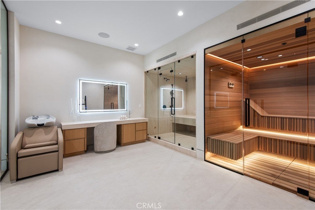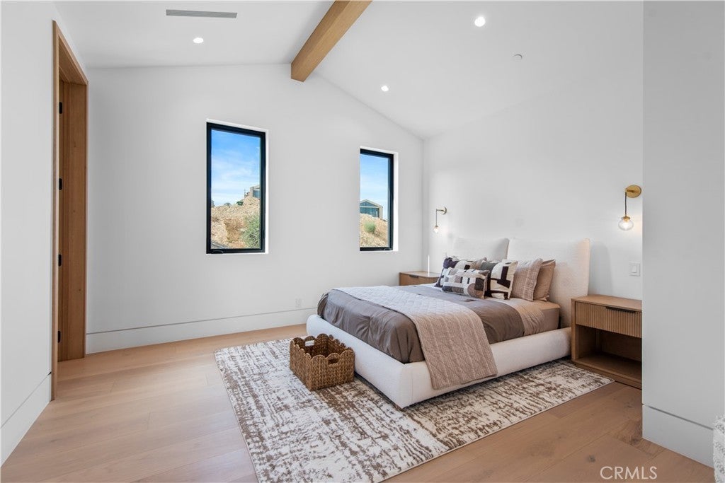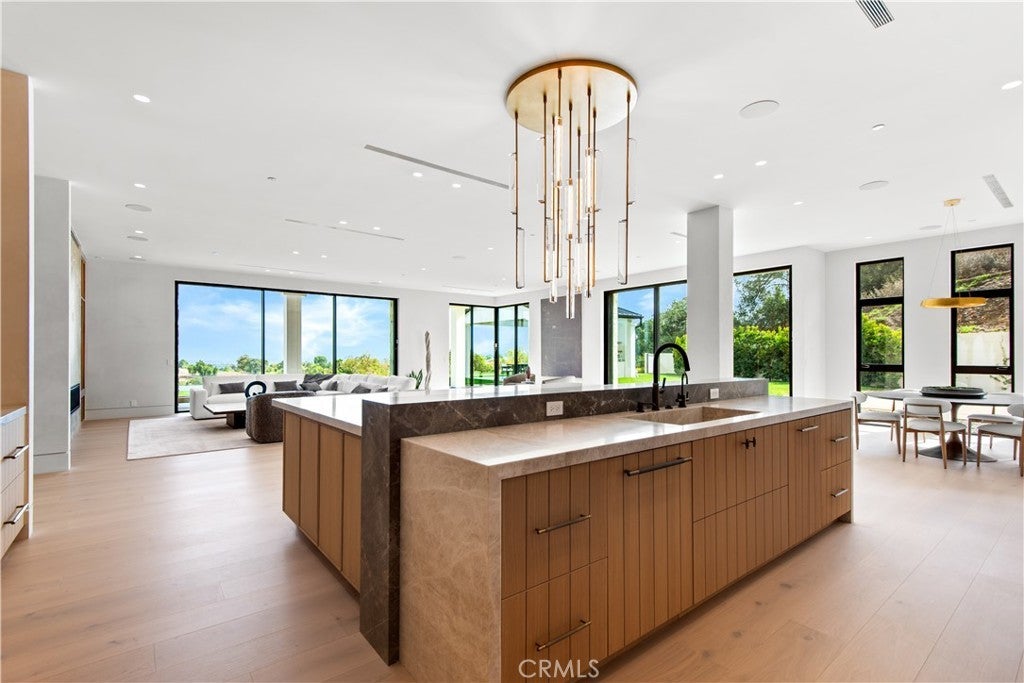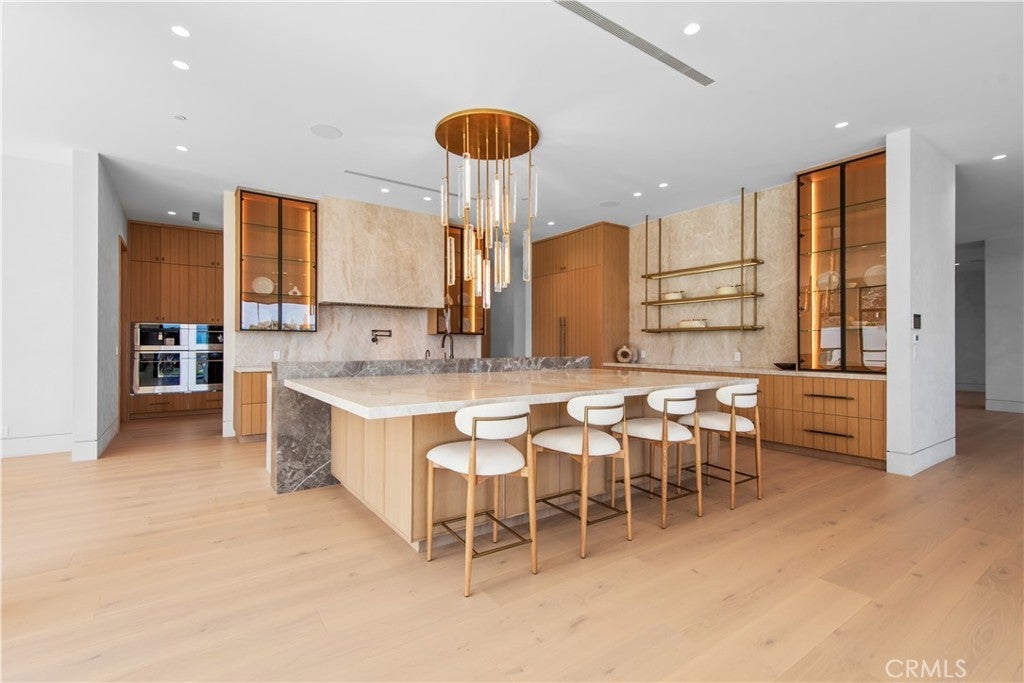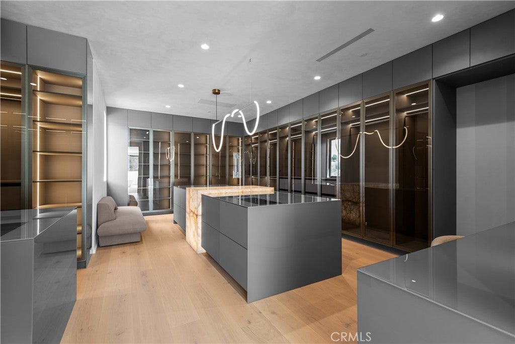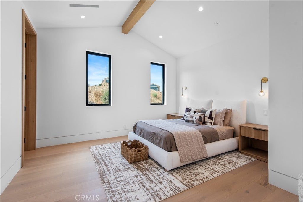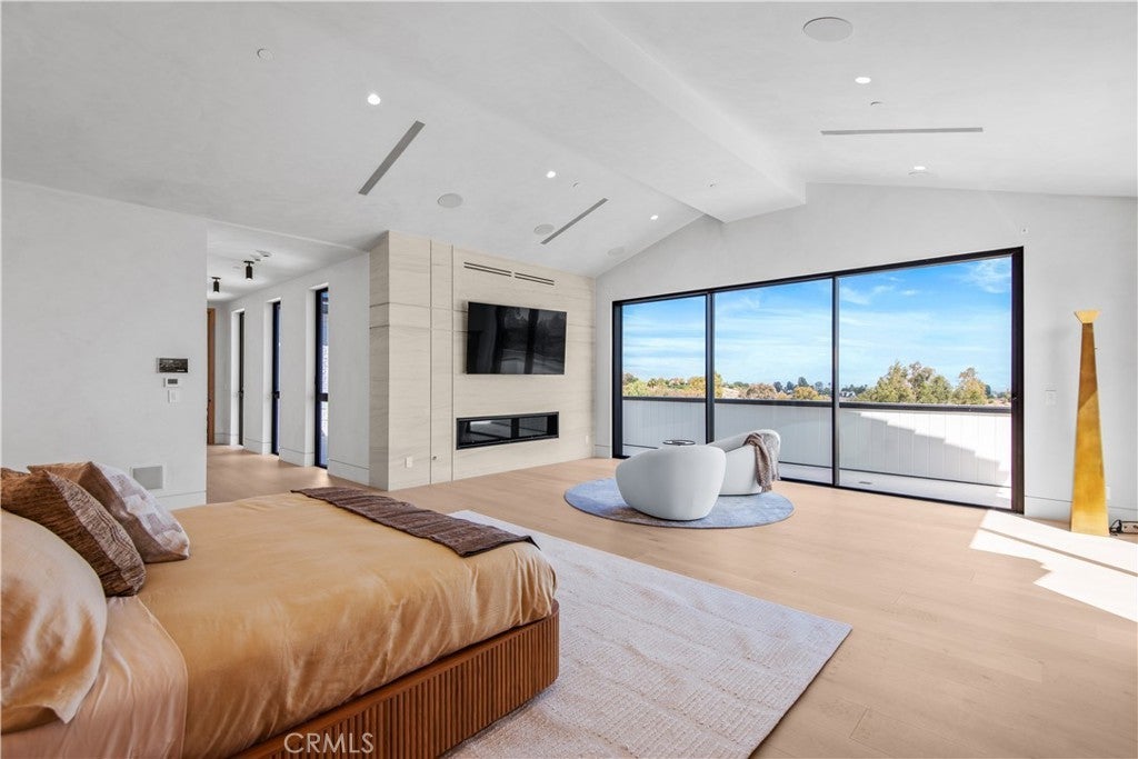 Panoramic views and curated design define this gorgeous, newly constructed estate, nestled at the end of a quiet cul de sac and sited on a large private lot within the guard-gated community of Hidden Hills. Perfectly positioned to capture the sweeping pastoral and city light views, this custom-built residence delivers a seamless blend of elevated architecture and indoor-outdoor living. The sunny, open floor plan centers around a stunning chef's kitchen with oversized island, prep kitchen, and counter seating that flows into the dramatic great room, anchored by a two-sided fireplace & sliding walls of glass that frame the endless views. Designed for grand scale entertaining and everyday comfort, the home features a spacious game and recreation room, custom home office, dedicated wellness wing with gym, steam room & sauna, a plush home theater with fabric covered walls, a sleek lounge with wet bar, and a glass encased, refrigerated wine cellar. Both levels include an additional den or flex spaces, and all six ensuite bedrooms are thoughtfully designed, connected by a floating architectural staircase and serviced by an elevator. The luxurious primary suite is a true retreat, complete with fireplace, stone-wrapped spa bath with steam shower, boutique sized custom closet, and a large, wraparound balcony with commanding views. The estate comprises four distinct structures. In addition to the main residence, which includes garages for seven cars with custom epoxy floors, the grounds feature a pool pavilion complete with a built-in barbecue and pool bath, a detached 965 square foot guest house tucked away on the lower pad for added privacy, and a two-stall barn/stable for equestrian or flexible use. Outdoor amenities are curated for year-round enjoyment and include a sparkling, zero edge infinity pool & spa, multiple covered patios, a fire pit lounge, exterior fireplace and a private pickleball court! Perfectly located within Hidden Hills, just a few blocks from the entry gate and close to top-rated public and private schools as well as The Commons at Calabasas, this one-of-a-kind estate offers space, sophistication, and 24 hour, guard gated security in one of Southern California's most sought-after communities.