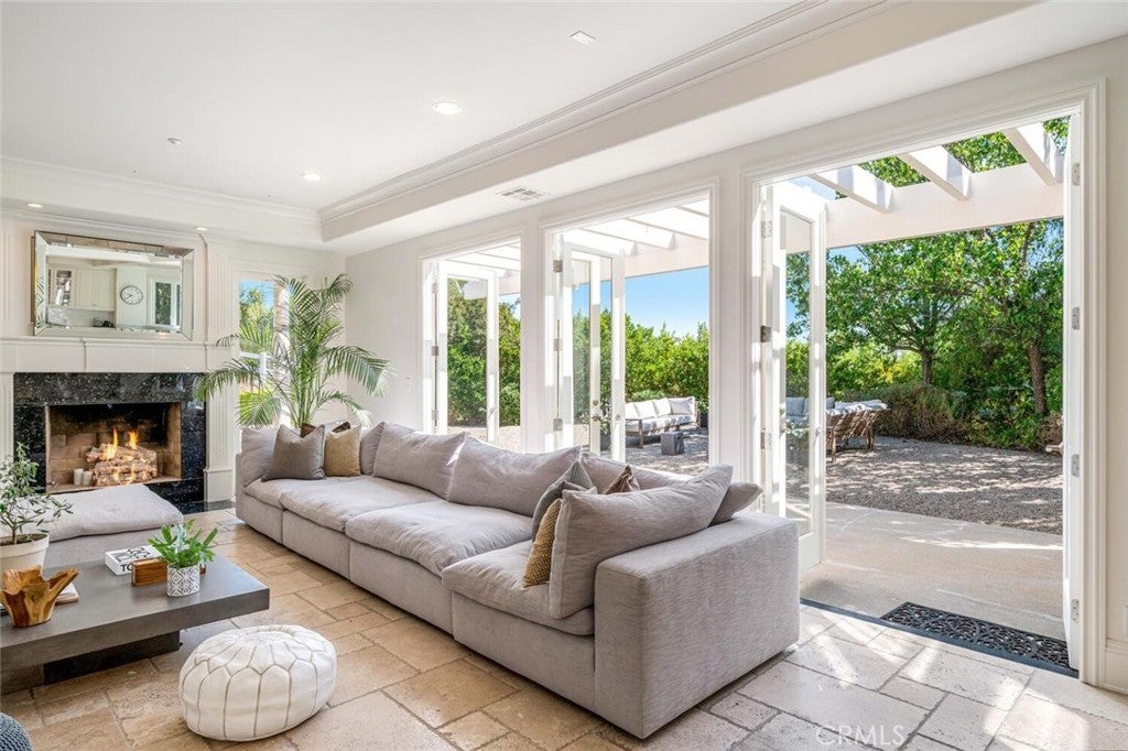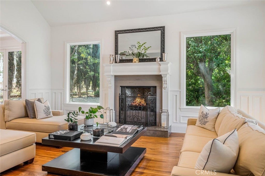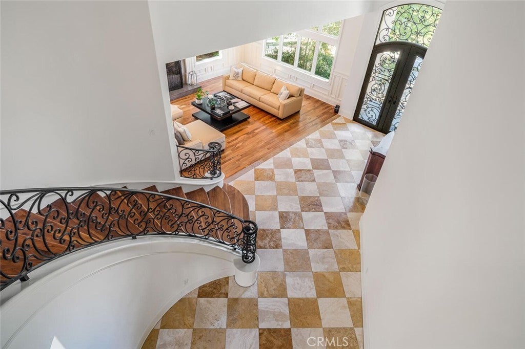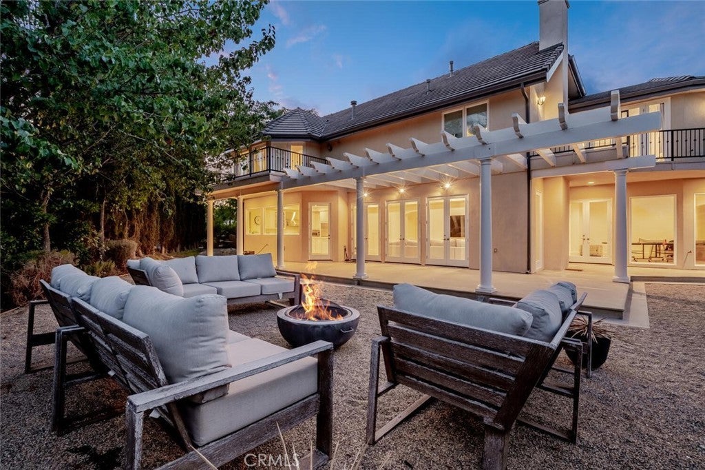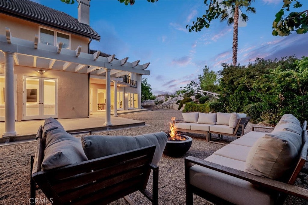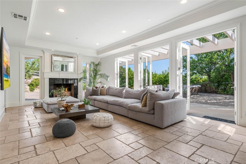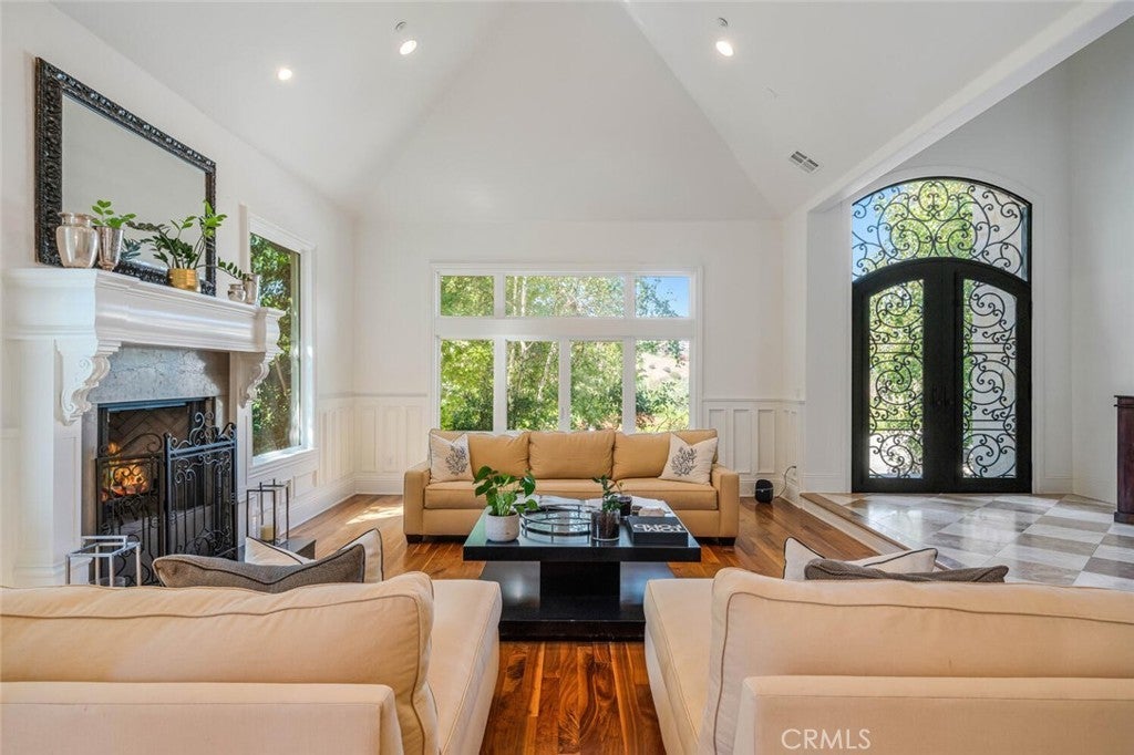 Set beyond a long private drive, this impeccably remodeled French Country estate offers the perfect blend of timeless elegance and modern luxury. Boasting 6,261 square feet of refined living space, this designer showcase was thoughtfully reimagined with uncompromising attention to detail and premium-quality materials throughout. As you enter through custom iron doors into the grand foyer, you're welcomed by a rich palette of warm honed travertine floors, crisp white wainscoting, and a striking wrought iron staircase—setting the tone for the sophistication that follows. Designed for both grand entertaining and intimate living, the expansive floor plan features a formal dining room with coffered ceilings, a gracious living room with cherry wood flooring and centerpiece fireplace, Private exercise room, and a huge bonus room, ideal for a home theater, game room, or executive office. At the heart of the home lies the chef’s kitchen, complete with a large center island, Viking appliances, Carrera marble countertops, and pillowed travertine floors that flow seamlessly into the inviting family room framed by walls of windows and garden views. The private quarters include six spacious en-suite bedrooms, offering flexibility with suites located on both levels. The luxurious primary suite is a retreat of its own, featuring rich hardwood floors with an artisan medallion inlay, a cozy fireplace with built-in entertainment center, an expansive walk-in closet, and a spa-inspired bath finished in Carrera marble and onyx—all set against breathtaking canyon and city light views. Set on a flat, usable acre, the beautifully landscaped grounds include a 5-car garage, expansive motor court, rolling lawns, and ample space for a pool or potential guest house on a dedicated grade pad. This rare and remarkable estate presents a unique opportunity to own a custom-built residence that perfectly balances character, comfort, and sophistication. Bell Canyon amenities include 24 hour guard gated entry, Residents-only park, Miles of maintained trails, Equestrian center, Direct access to the Santa Monica Nature preserve, tennis courts, gym, Organized adult and children’s events, Award winning Las Virgenes school district with school bus service and just minutes to freeways, beaches and LA’s best shopping and dining locations. Tax assessor states size as 5,590sf. MLS listed 6,400sf from builder floor plan from major remodel in 2005. Assessor year built shows 1987.