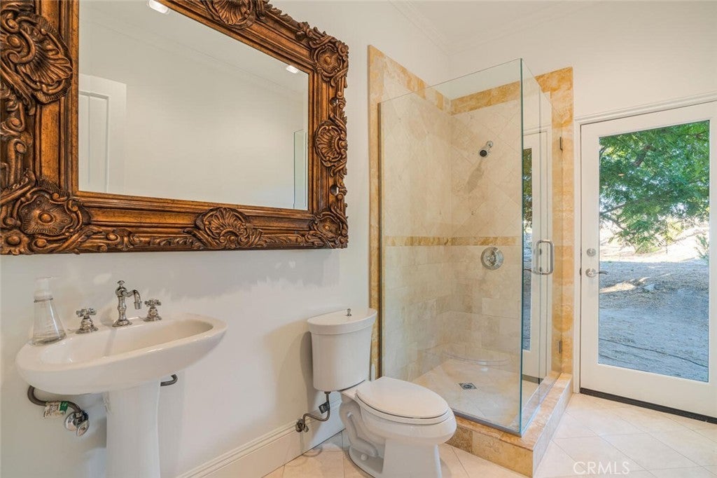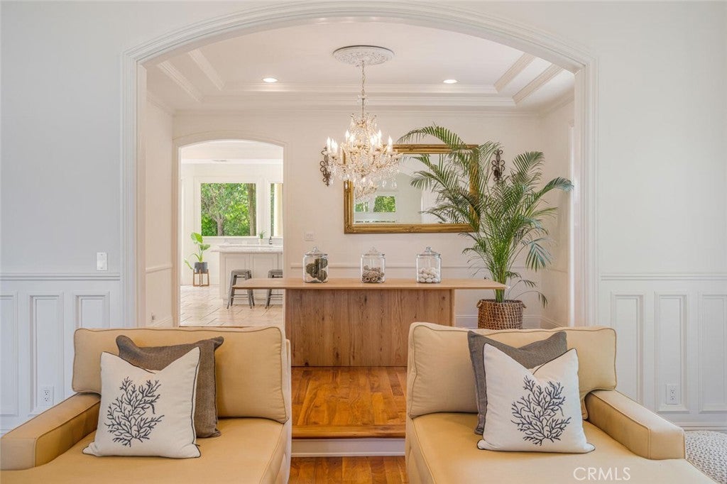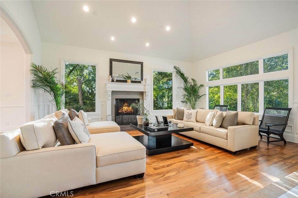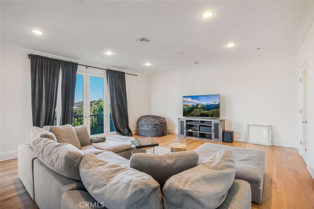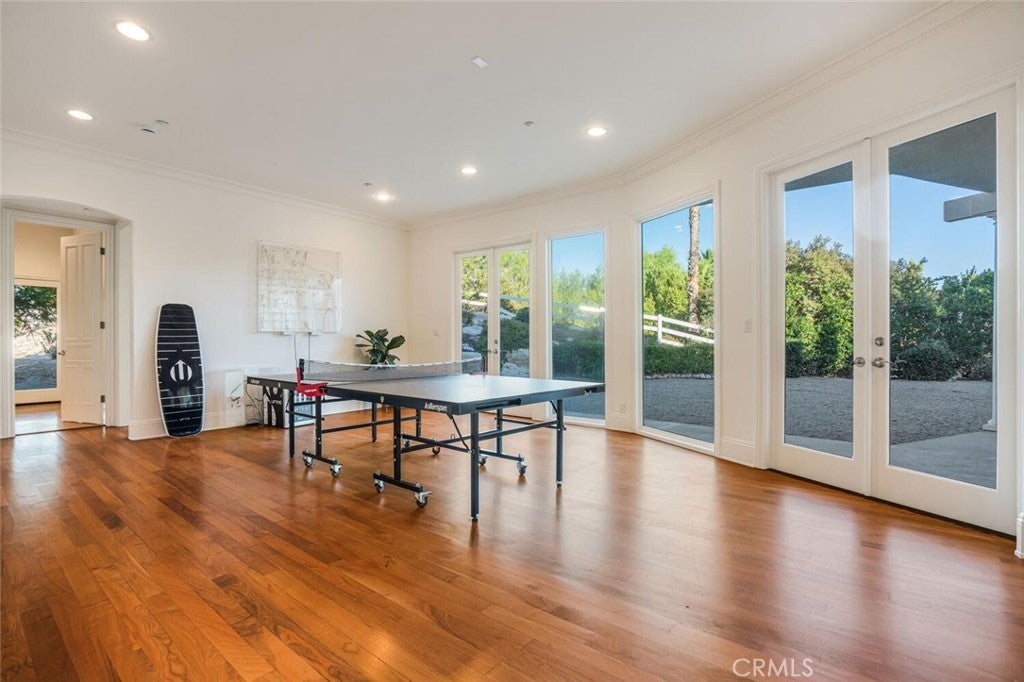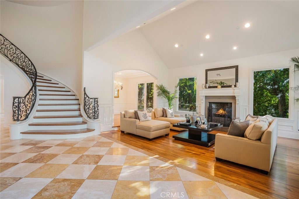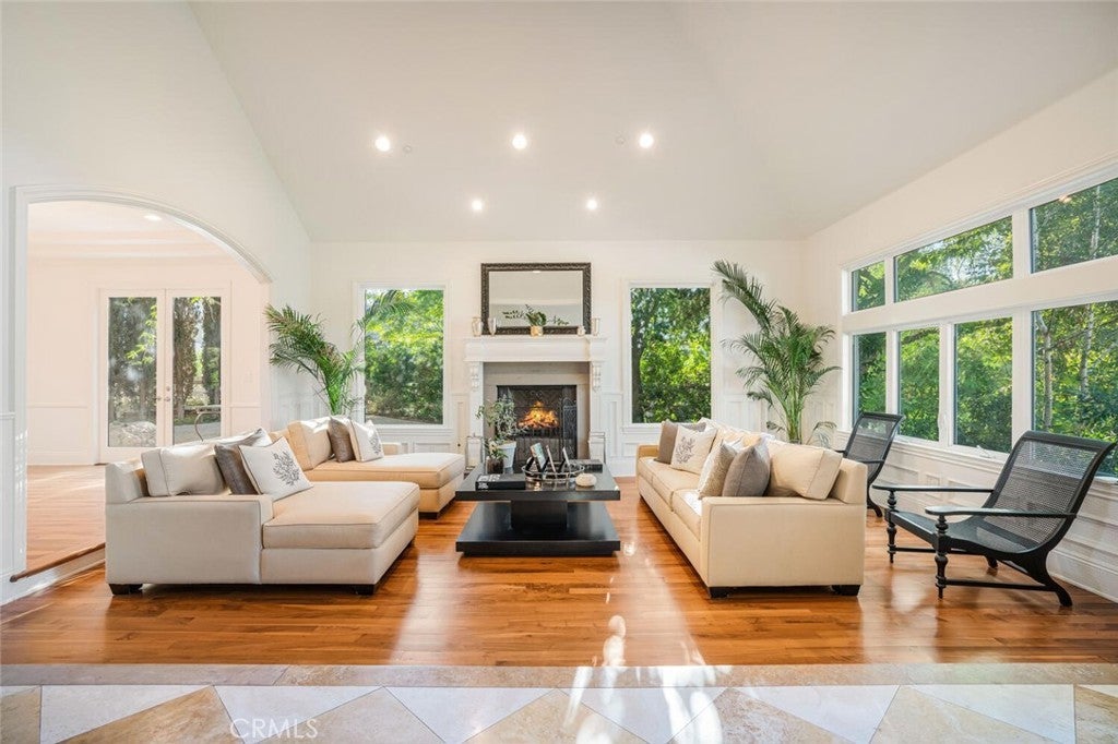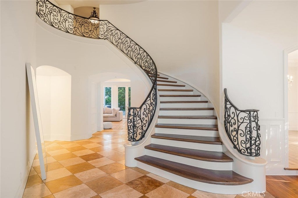 Set beyond a long private drive, this impeccably remodeled French Country estate offers the perfect blend of timeless elegance and modern luxury. Boasting 6,261 square feet of refined living space, this designer showcase was thoughtfully reimagined with uncompromising attention to detail and premium-quality materials throughout. As you enter through custom iron doors into the grand foyer, you're welcomed by a rich palette of warm honed travertine floors, crisp white wainscoting, and a striking wrought iron staircase—setting the tone for the sophistication that follows. Designed for both grand entertaining and intimate living, the expansive floor plan features a formal dining room with coffered ceilings, a gracious living room with cherry wood flooring and centerpiece fireplace, Private exercise room, and a huge bonus room, ideal for a home theater, game room, or executive office. At the heart of the home lies the chef’s kitchen, complete with a large center island, Viking appliances, Carrera marble countertops, and pillowed travertine floors that flow seamlessly into the inviting family room framed by walls of windows and garden views. The private quarters include six spacious en-suite bedrooms, offering flexibility with suites located on both levels. The luxurious primary suite is a retreat of its own, featuring rich hardwood floors with an artisan medallion inlay, a cozy fireplace with built-in entertainment center, an expansive walk-in closet, and a spa-inspired bath finished in Carrera marble and onyx—all set against breathtaking canyon and city light views. Set on a flat, usable acre, the beautifully landscaped grounds include a 5-car garage, expansive motor court, rolling lawns, and ample space for a pool or potential guest house on a dedicated grade pad. This rare and remarkable estate presents a unique opportunity to own a custom-built residence that perfectly balances character, comfort, and sophistication. Bell Canyon amenities include 24 hour guard gated entry, Residents-only park, Miles of maintained trails, Equestrian center, Direct access to the Santa Monica Nature preserve, tennis courts, gym, Organized adult and children’s events, Award winning Las Virgenes school district with school bus service and just minutes to freeways, beaches and LA’s best shopping and dining locations. Tax assessor states size as 5,590sf. MLS listed 6,400sf from builder floor plan from major remodel in 2005. Assessor year built shows 1987.
