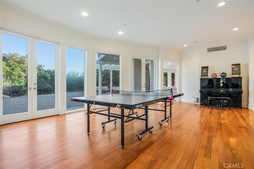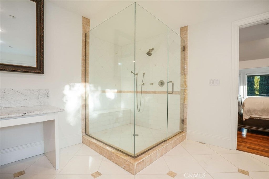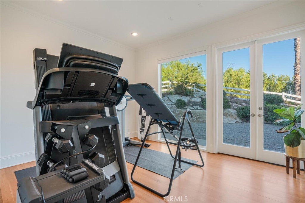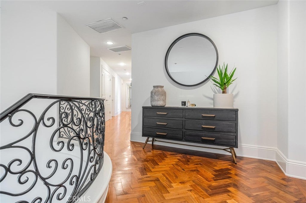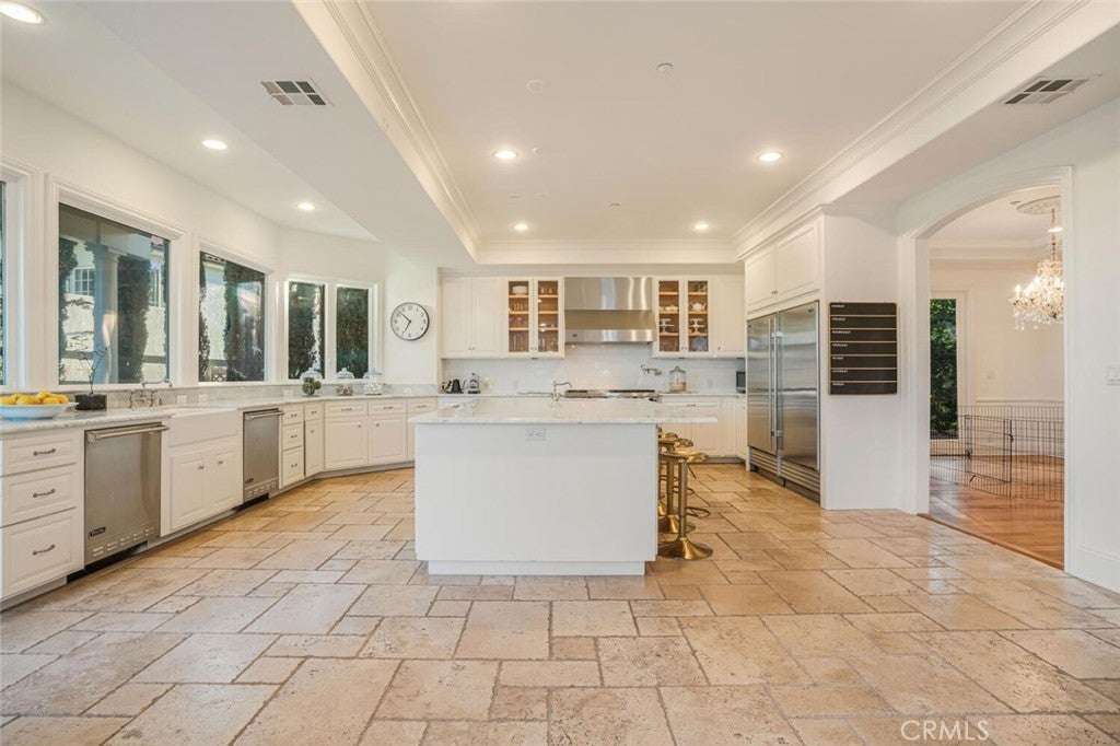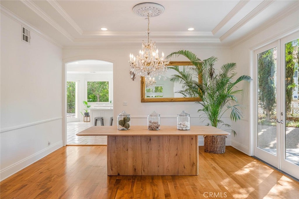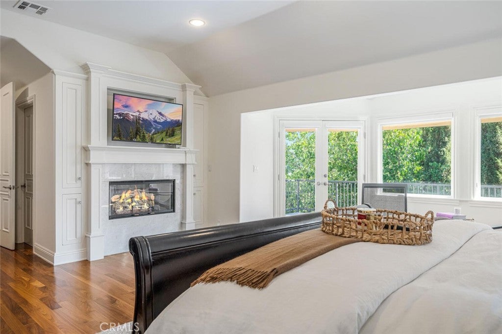 Set beyond a long private drive, this impeccably remodeled French Country estate offers the perfect blend of timeless elegance and modern luxury. Boasting 6,261 square feet of refined living space, this designer showcase was thoughtfully reimagined with uncompromising attention to detail and premium-quality materials throughout. As you enter through custom iron doors into the grand foyer, you're welcomed by a rich palette of warm honed travertine floors, crisp white wainscoting, and a striking wrought iron staircase—setting the tone for the sophistication that follows. Designed for both grand entertaining and intimate living, the expansive floor plan features a formal dining room with coffered ceilings, a gracious living room with cherry wood flooring and centerpiece fireplace, Private exercise room, and a huge bonus room, ideal for a home theater, game room, or executive office. At the heart of the home lies the chef’s kitchen, complete with a large center island, Viking appliances, Carrera marble countertops, and pillowed travertine floors that flow seamlessly into the inviting family room framed by walls of windows and garden views. The private quarters include six spacious en-suite bedrooms, offering flexibility with suites located on both levels. The luxurious primary suite is a retreat of its own, featuring rich hardwood floors with an artisan medallion inlay, a cozy fireplace with built-in entertainment center, an expansive walk-in closet, and a spa-inspired bath finished in Carrera marble and onyx—all set against breathtaking canyon and city light views. Set on a flat, usable acre, the beautifully landscaped grounds include a 5-car garage, expansive motor court, rolling lawns, and ample space for a pool or potential guest house on a dedicated grade pad. This rare and remarkable estate presents a unique opportunity to own a custom-built residence that perfectly balances character, comfort, and sophistication. Bell Canyon amenities include 24 hour guard gated entry, Residents-only park, Miles of maintained trails, Equestrian center, Direct access to the Santa Monica Nature preserve, tennis courts, gym, Organized adult and children’s events, Award winning Las Virgenes school district with school bus service and just minutes to freeways, beaches and LA’s best shopping and dining locations. Tax assessor states size as 5,590sf. MLS listed 6,400sf from builder floor plan from major remodel in 2005. Assessor year built shows 1987.