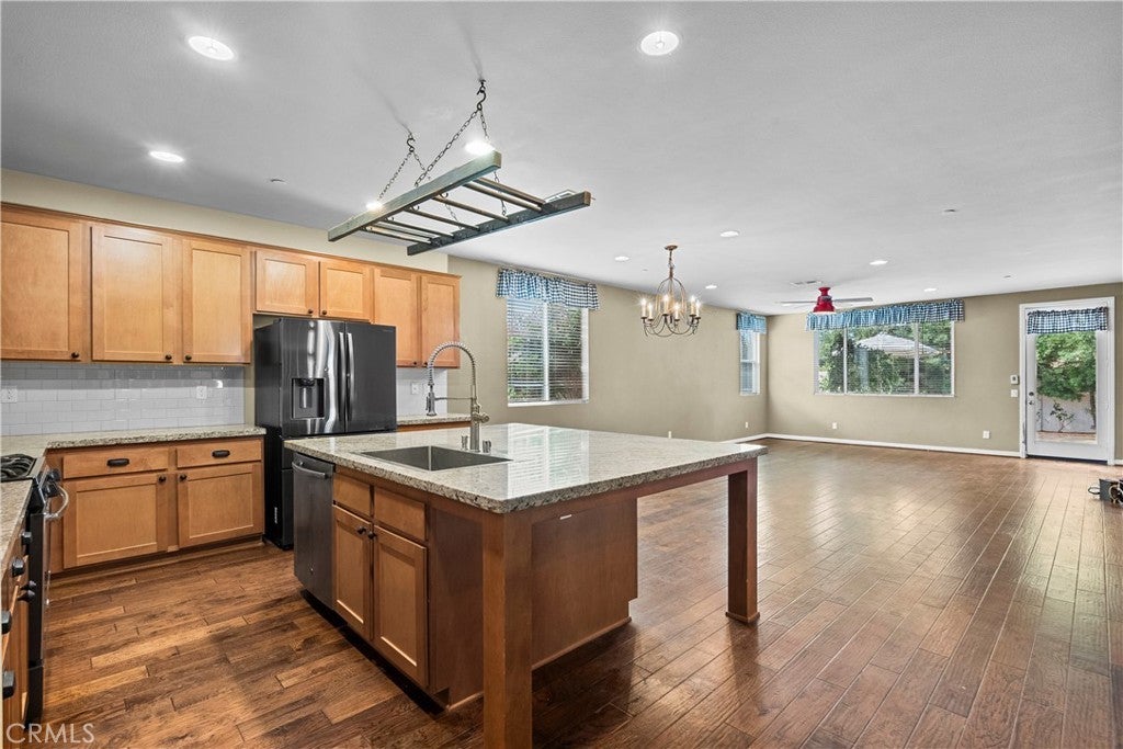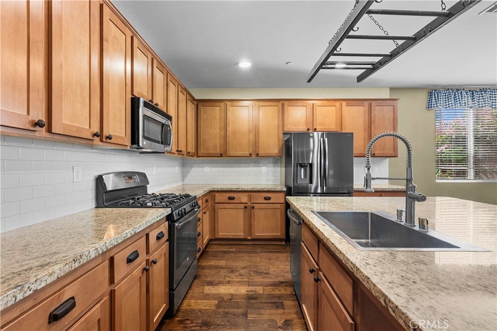 Welcome to 81 Wildwood Lane, Fillmore, CA – a stunning single-story former model home that blends modern farmhouse charm with thoughtful design and timeless appeal. Perfectly positioned on a spacious corner lot in the highly desirable Bridges community, this 4-bedroom, 2.5-bathroom home with a flexible bonus room (easily a 5th bedroom, office, or hobby space) offers comfort, convenience, and seasonal beauty year-round. One of the standout features of this home is the inviting wrap-around porch—a rare and charming touch that’s ideal for seasonal decorating and relaxed outdoor living. Imagine adorning your porch with festive Fall décor, cozy lanterns, and pumpkins, then transitioning effortlessly to holiday garlands and twinkling lights come winter. This space is truly made for enjoying quiet mornings with coffee or crisp autumn evenings under the stars. Inside, the open-concept floor plan is equally inviting. The spacious living and dining areas flow seamlessly into the heart of the home—a gorgeous modern farmhouse-style kitchen featuring granite countertops, stainless steel appliances, an oversized island with seating, a walk-in pantry, and stylish finishes that combine form and function. Throughout the home, you’ll find wainscoting detail that elevates the design, new flooring in the bedrooms, and upgrades that enhance both style and livability. The private primary suite offers a peaceful retreat, while three additional bedrooms and the versatile bonus room provide space for everyone. A dedicated laundry room and thoughtful single-level layout make daily life more convenient. Additional highlights include a brand-new tankless water heater and solar, offering energy efficiency and long-term savings. As a former model home, enjoy curated upgrades, extra attention to detail, and a premium corner-lot location—just a short walk to the local elementary school. With no HOA, you’ll also appreciate the freedom to make the home truly your own, from garden projects to seasonal porch displays. Located in the heart of Fillmore, surrounded by scenic mountains and citrus groves, this community offers small-town charm with modern-day convenience. Enjoy the slower pace of life while staying connected to nearby cities. Whether you're decorating the porch for Fall, hosting friends in your upgraded kitchen, or simply soaking up the quiet charm of Fillmore, 81 Wildwood Lane is more than just a home—it’s a lifestyle.