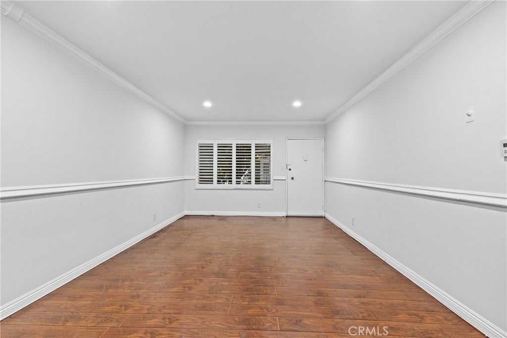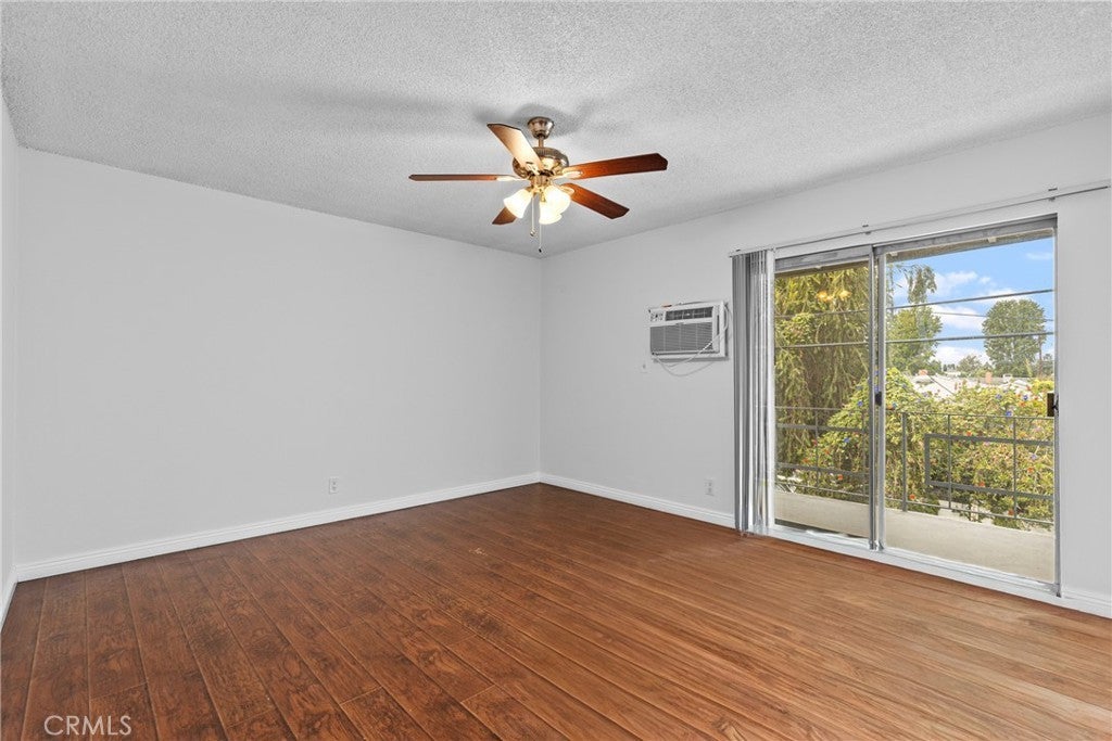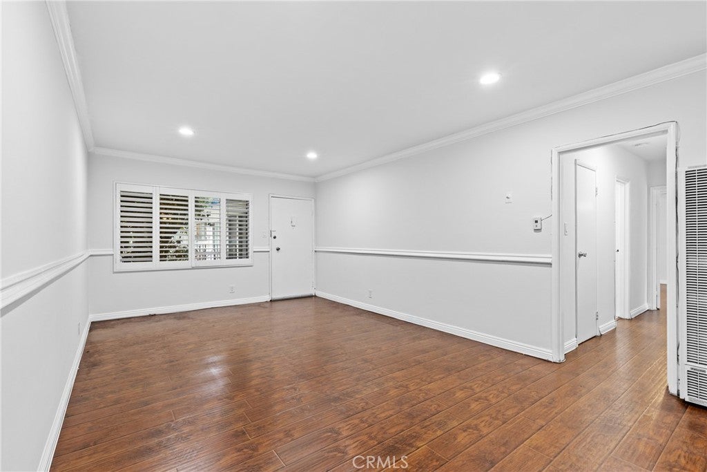 Welcome to this stylish and move-in ready one bedroom, one bathroom condo offering approximately 800 sq ft of comfortable living space in a well-maintained complex. This bright unit features wood-look flooring throughout, crown molding, recessed lighting, and ceiling fans in both the living room and bedroom. Enjoy cooking in the upgraded kitchen, complete with stainless steel appliances, granite countertops, and rich cabinetry. The open-concept layout flows into the dining area and spacious living room, perfect for entertaining or relaxing. Step outside to your private balcony, ideal for enjoying fresh air. The community also offers access to a sparkling shared pool, perfect for sunny days.