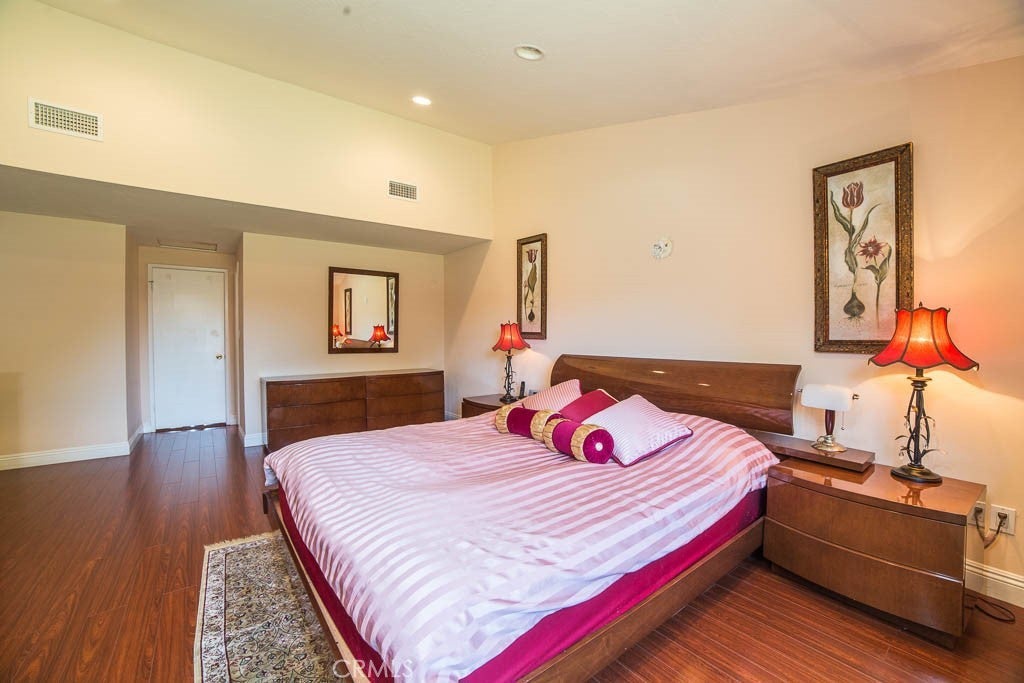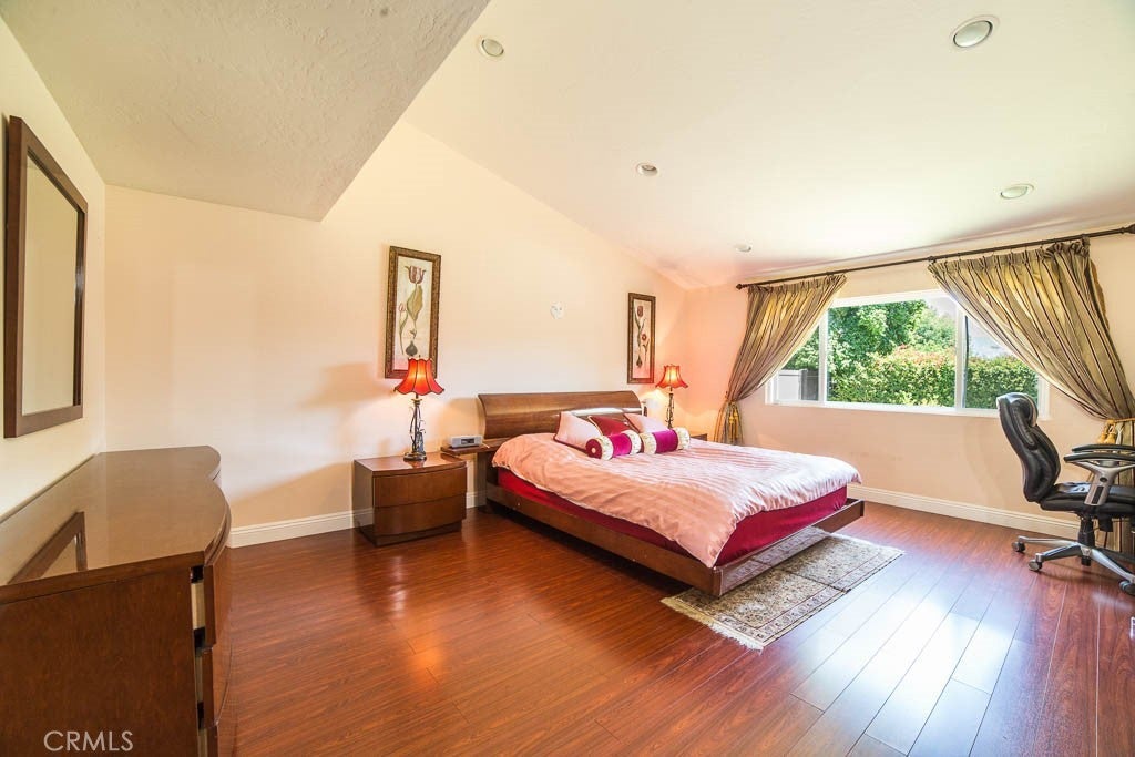 4 bedrooms, 3 baths home for LEASE in desirable Granada Hills neighborhood. Features include breakfast area with skylight, breakfast bar, formal entry with hardwood floors, living room with hardwood floors, recessed lighting and glass slider to covered patio and grassy yard. This home has an open floorplan with large kitchen w/granite counter tops, custom cabinets, hardwood floors, walk-in pantry, large breakfast area and breakfast bar, true formal dining room with hardwood floors. 2 master suites! One master is on other side of house with recessed lighting, vaulted ceiling, double mirrored wardrobe closet and a private bath with a custom walk-in tile shower and tile floor. Second master with view of grassy yard, walk-in cedar lined closet, vaulted ceilings and private bath w/3/4 tiled shower. 3rd bath is a full bath with double sinks, tile floor, tiled tub/shower combo. 3rd and 4th bedrooms have walk-in closets, vaulted ceilings and plantation shutters. Dual pane windows, copper plumbing, central air and forced air heating, smooth ceilings throughout, tankless hot water heater, double attached garage with direct access and automatic opener. Located on a lovely quiet street with great curb appeal, this lease won’t last!