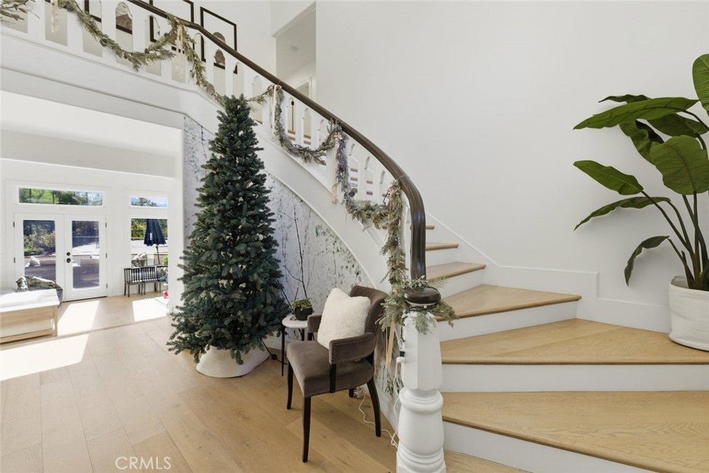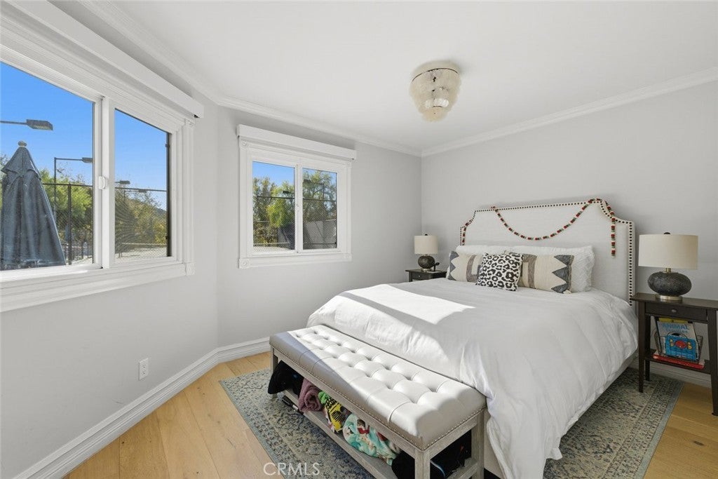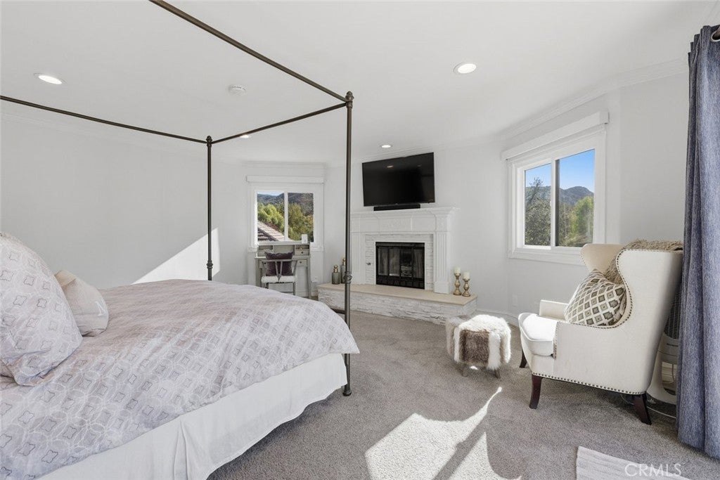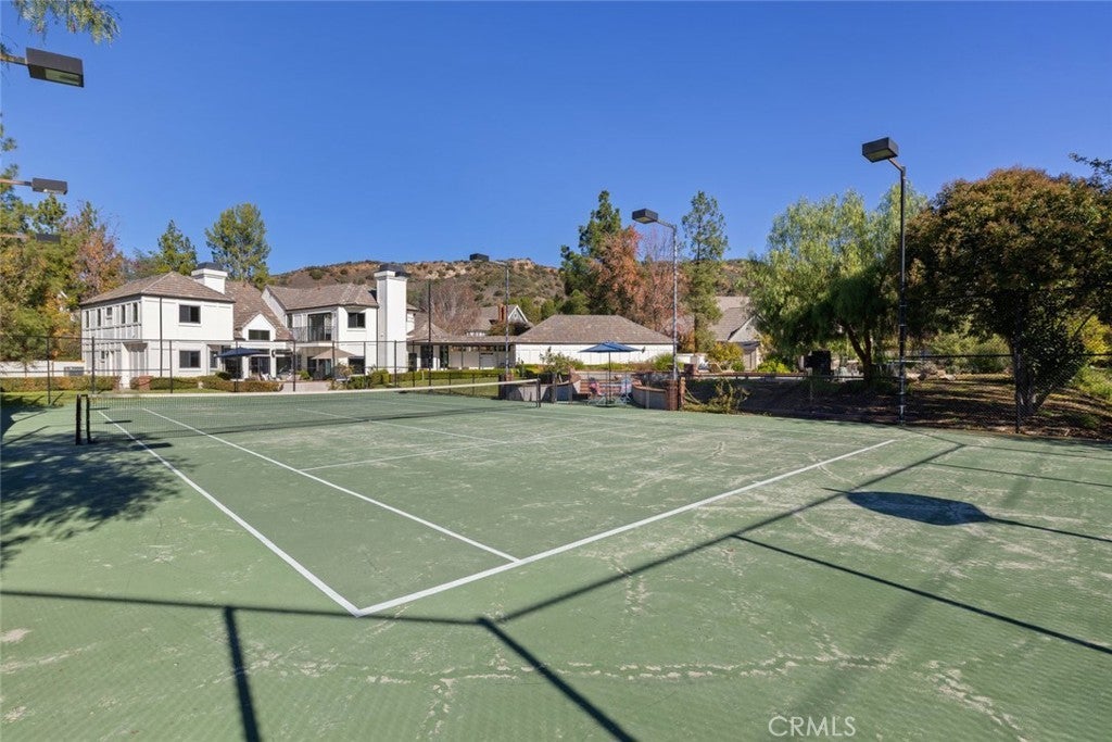 Nestled on over an acre in one of Agoura Hills’ most desirable cul-de-sac enclaves, this impressive residence spans approximately 4,726 square feet with 5 bedrooms and 4 baths. A grand, light-filled foyer greets you as you enter, flowing into a formal living room and framed by soaring ceilings and generous windows. Beautiful hardwood, stone, and tile finishes run throughout. The formal dining room includes a butler’s pantry for convenience. In the heart of the home, the chef’s kitchen features stainless appliances, granite countertops, a walk-in pantry, and a cozy breakfast nook that opens seamlessly to the family room, complete with a stone fireplace and views out to the yard. On the main floor, there is also a guest bedroom with an en suite and a dedicated office or study, perfect for work-from-home needs. Upstairs, the primary suite offers a private balcony, serene views, a stacked-stone fireplace, and a luxurious spa-style bath with a large walk-in closet, soaking tub, and separate shower. Two additional well-sized bedrooms complete the upper level. The outdoor living experience is exceptional: expansive patios and stone decking ideal for entertaining, a built-in BBQ center, brick-accented swimming pool and spa, lush gardens, and expansive lawns. A fully lighted north/south tennis court and an oversized 4-car garage round out the amenities. With its enviable location, elegant appointments, and vast outdoor space, this property embodies refined Southern California living.