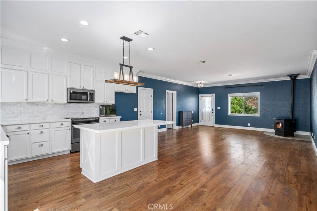 This is a short sale and subject to lender approval. Welcome to this beautifully upgraded single-story home in the peaceful Lake Elizabeth community, where privacy, comfort, and scenic views come together. Built in 2006, this property sits on an elevated lot with a long driveway, offering a sense of seclusion and tranquility. Inside, the open floor plan features 9-foot ceilings, wide-plank Pergo-XP® wood flooring, crown molding, 6-inch baseboards in the living room, and modern wainscoting in the dining area. A cozy pellet stove provides warmth in the winter, while the NEST home protection system adds modern convenience and allows for remote control directly from your phone. The gourmet kitchen is the centerpiece of the home, showcasing GE Slate appliances, an oversized island with state-of-the-art Dekton® countertops (scratch, heat, and stain-resistant), a subway tile backsplash, and an under-mount cast-iron Kohler sink with a chef's faucet. Recessed lighting and a designer light fixture over the island create an inviting atmosphere. The layout is thoughtfully designed for comfort and functionality, with the primary suite located on one side of the home and two additional bedrooms with a shared bath on the other. Outdoors, the private fenced backyard offers easy maintenance, while the front yard is highlighted by mature lilac trees. With a few touch-ups and repairs, this home is ready to shine for its next owner. Whether you're seeking a peaceful retreat with sweeping views or a stylish, updated space to entertain, this property offers the perfect balance of charm and modern upgrades.