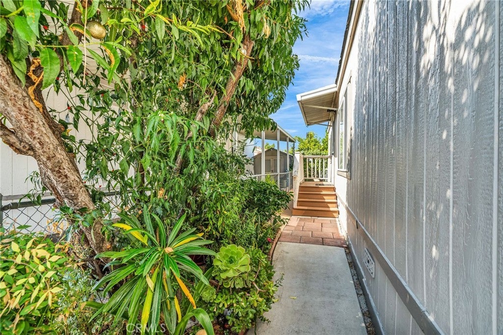 Welcome to this spacious manufactured home, offering three bedrooms plus a bonus 4th bedroom, which can be easily converted from part of the living room if you prefer additional living space. The home features two full bathrooms, an open kitchen with dining area, a convenient laundry space, and laminate flooring throughout. A fairly new central A/C system keeps the home comfortable year-round, and the solar lease is just $135 per month, keeping electricity costs low and predictable. Outside, enjoy a private patio and yard with lush greenery and several fruit trees, along with a 3-car covered carport and two storage sheds. The community offers fantastic amenities, including pools, a spa, a recreation room, a playground, basketball courts, and RV parking. Ideally located near shops, public transportation, and within walking distance of an elementary school, this home combines comfort, efficiency, and convenience in one great package.