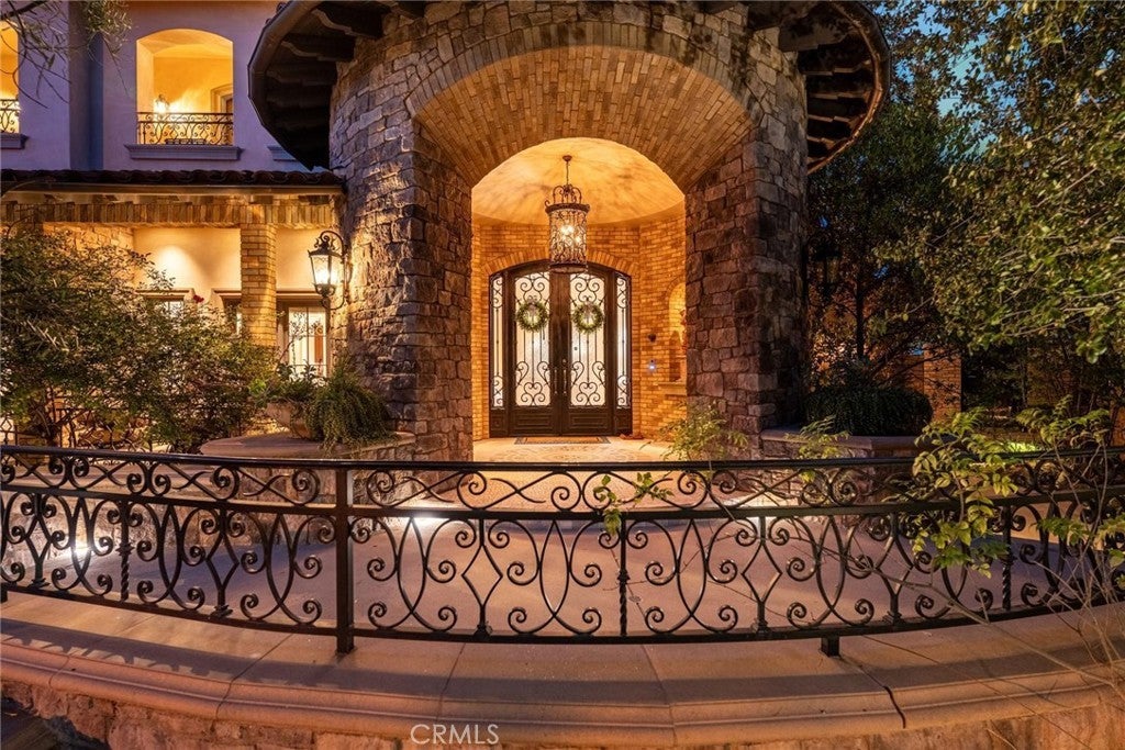 There are maybe a handful of custom homes in the guard gated Westridge Valencia community on over 1/3 of an acre with a cul-de-sac location & panoramic views of the valley. You would be hard pressed to find one of the quality, design and jaw dropping features of 25711 Shady Oak. There are 3 distinct levels to enjoy in this masterpiece, each thoughtfully designed for function and impressive in a way that’s hard to describe. The first level (subterranean) features the amazing game room (ping pong, air hockey, slot machines, pool table all stay), the private movie theater (you have to see it) yoga room (which was a tea room with retractable table for service should you desire) full bath (one of 8),12-car garage with car chargers and half bath for convenience. It’s safe to say it’s unequaled in the community. Take the elevator (or stairs) to the main level and enjoy a first floor guest suite with private entrance, kitchenette and living room. Perfect for parents or guests wanting privacy. There are two other large bedrooms on the main level, and all 7 bedrooms have private baths. The remodeled kitchen is light and bright with tons of windows to enjoy the amazing views of the valley. All the highest quality finishes and appliances of course and powered by a 600-amp commercial panel, a testament to the many examples of the best of the best used in the 4 years it took to build this home. Custom Lutron lighting throughout and each bedroom has access to its own heat or air. One button to push and you are good to go. The amazing entrance with 25-foot ceilings features a gorgeous crystal chandelier so the home is both amazingly constructed and aesthetically spectacular. The primary bedroom has a private covered deck with maybe the best views of all, huge walk-in closet and attached security closet. Private yard with pool, spa, fire pit and best of all a fully covered second kitchen with private fireplace, Wolf stove, Teppan grill & a final full bath so you don’t need to go inside to shower off. How thoughtful! The community is coveted for access to the golf course, great schools and quick access to the freeway. All with 24-hour guard gated security and all the amenities Valencia is loved for. Truly, what a home!