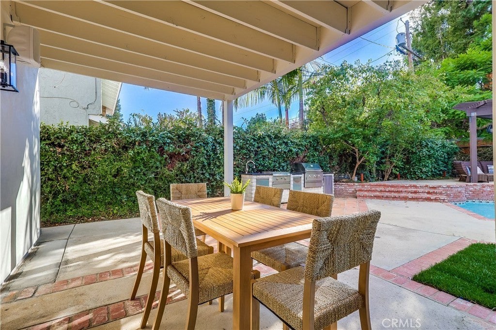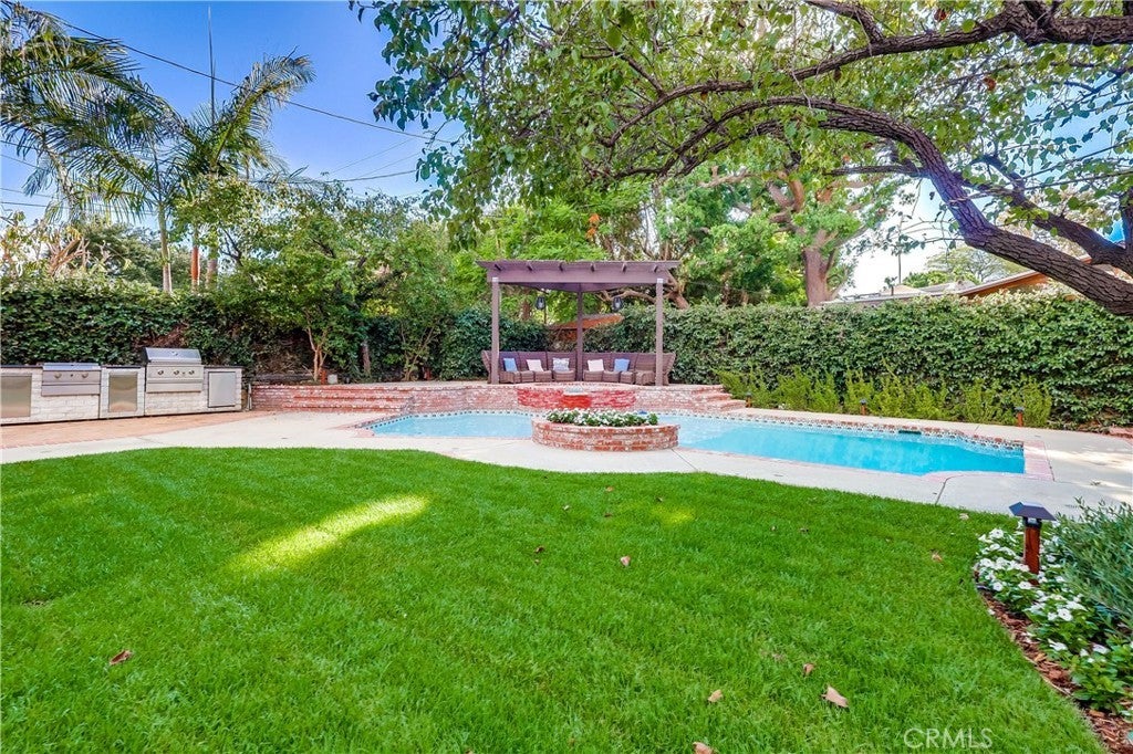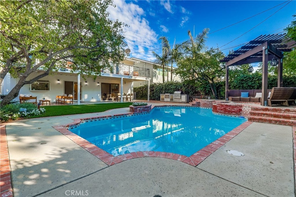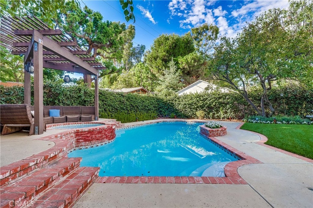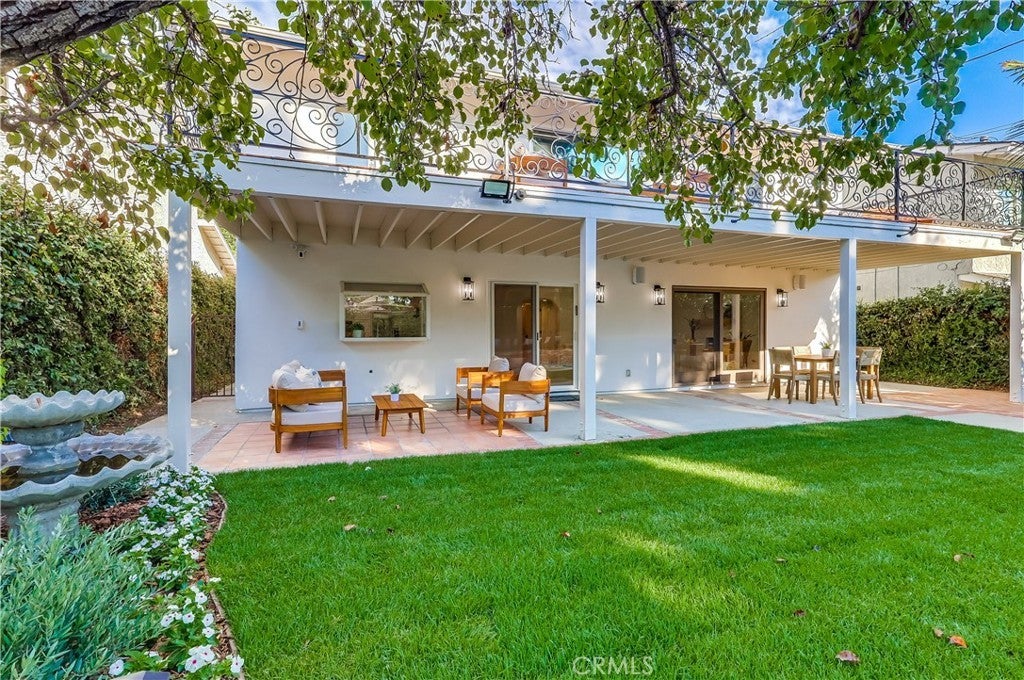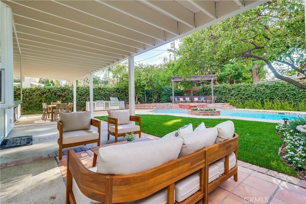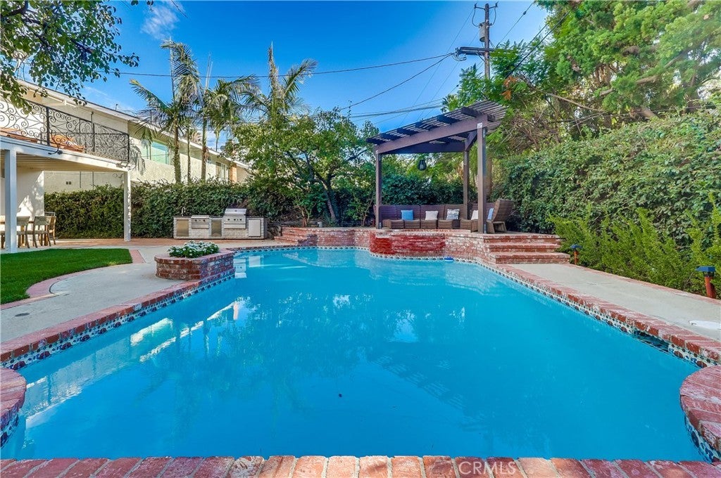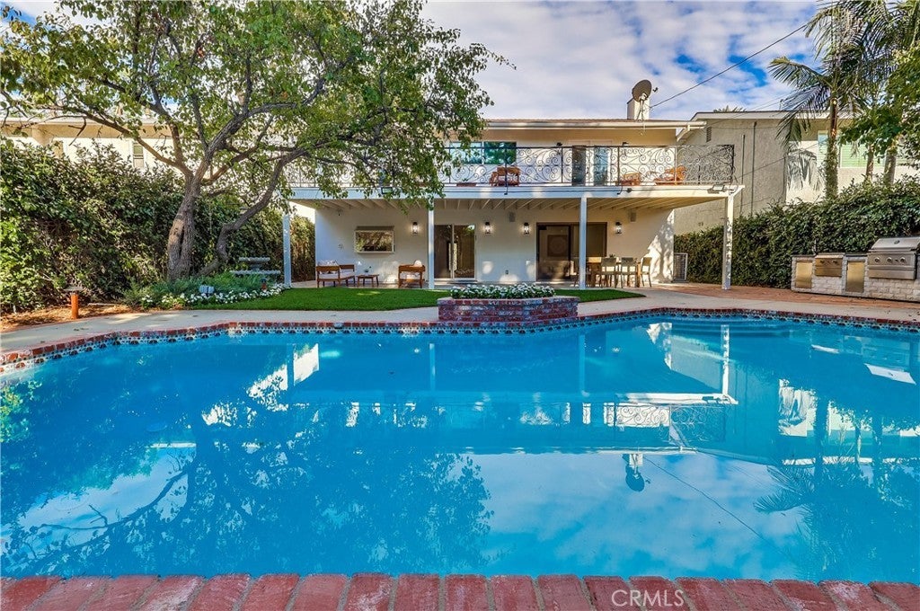 From the moment you walk through the front door of this Modern Spanish home, you’re welcomed by an open and inviting layout with beautiful archways that blends elegance and comfort. This beautifully remodeled 5 bedroom, 3 bath home in the sought-after Chandler Estates area of Sherman Oaks features a stunning updated grand kitchen, new floors throughout and a wonderful backyard. The home offers an open-concept design while maintaining defined spaces for dining and entertaining. The great room, complete with a cozy fireplace, opens directly to the kitchen outfitted with a stunning colbalt blue Viking range and a wall of glass sliders that lead out to the backyard. An attached two-car garage adds convenience and functionality. Upstairs, you’ll find 4 spacious bedrooms, including a large primary suite with abundant closet space and a spa-like bathroom, along with a fantastic balcony that spans across 3 bedrooms including the primary suite. A downstairs bedroom with full bath provides ideal space for guests or a home office. The expansive backyard is designed for every lifestyle, with a covered patio for al fresco dining, an outdoor BBQ island, a sparkling pool and spa, and a grassy play area — all set against lush landscaping. This home offers the perfect blend of thoughtful updates including updated smooth stucco, new grass, great outdoor lighting that can be controlled by your phone and 2 zone surround system all set in a premier Sherman Oaks location.