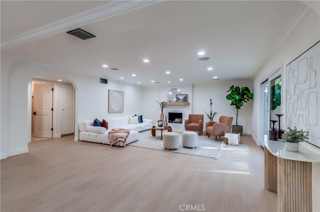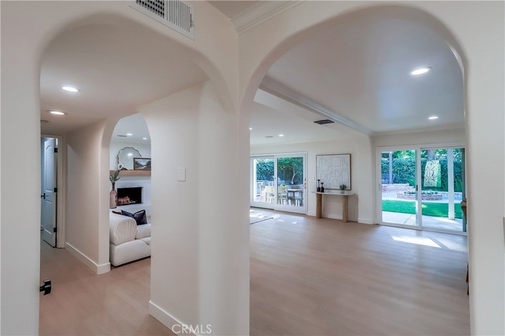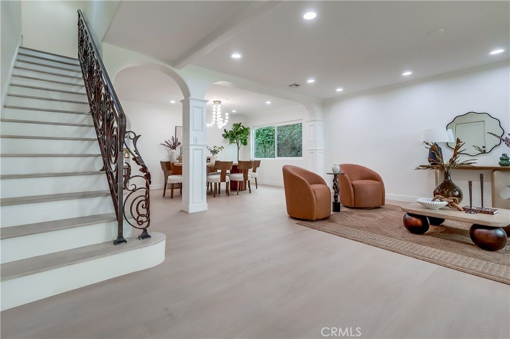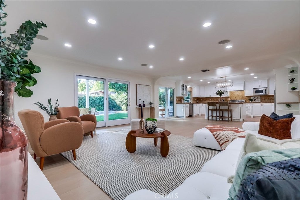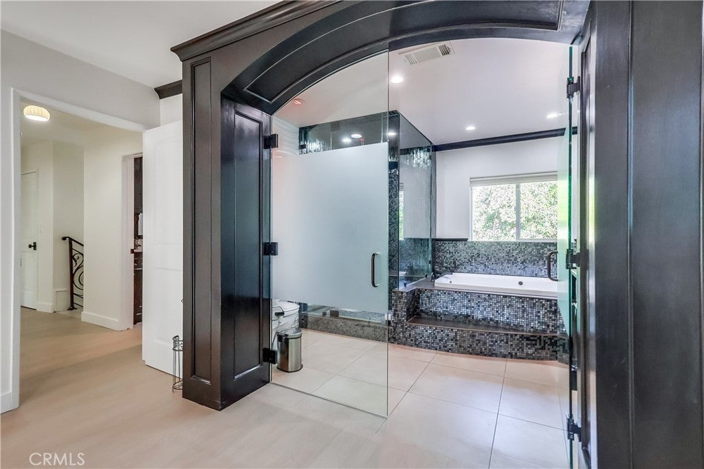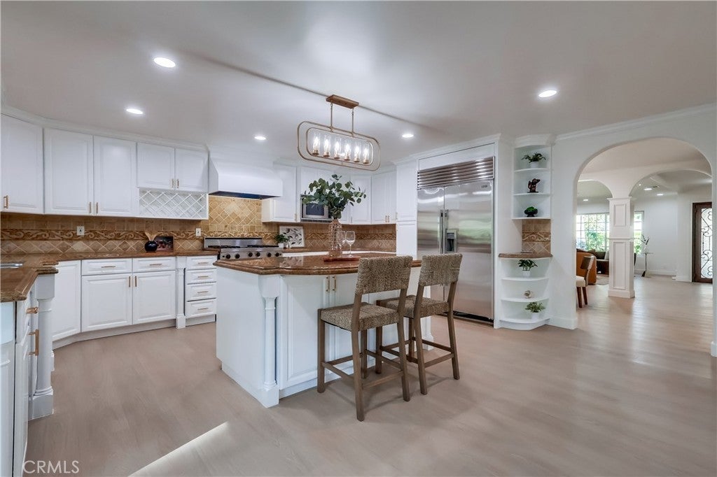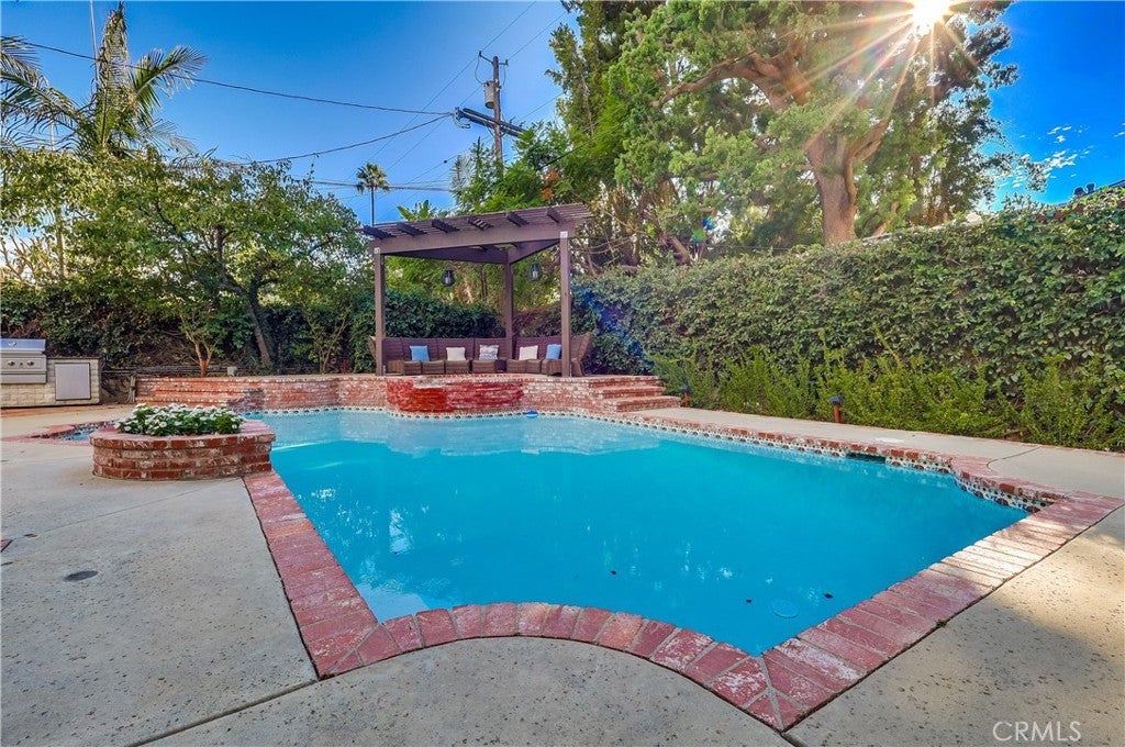 From the moment you walk through the front door of this Modern Spanish home, you’re welcomed by an open and inviting layout with beautiful archways that blends elegance and comfort. This beautifully remodeled 5 bedroom, 3 bath home in the sought-after Chandler Estates area of Sherman Oaks features a stunning updated grand kitchen, new floors throughout and a wonderful backyard. The home offers an open-concept design while maintaining defined spaces for dining and entertaining. The great room, complete with a cozy fireplace, opens directly to the kitchen outfitted with a stunning colbalt blue Viking range and a wall of glass sliders that lead out to the backyard. An attached two-car garage adds convenience and functionality. Upstairs, you’ll find 4 spacious bedrooms, including a large primary suite with abundant closet space and a spa-like bathroom, along with a fantastic balcony that spans across 3 bedrooms including the primary suite. A downstairs bedroom with full bath provides ideal space for guests or a home office. The expansive backyard is designed for every lifestyle, with a covered patio for al fresco dining, an outdoor BBQ island, a sparkling pool and spa, and a grassy play area — all set against lush landscaping. This home offers the perfect blend of thoughtful updates including updated smooth stucco, new grass, great outdoor lighting that can be controlled by your phone and 2 zone surround system all set in a premier Sherman Oaks location.