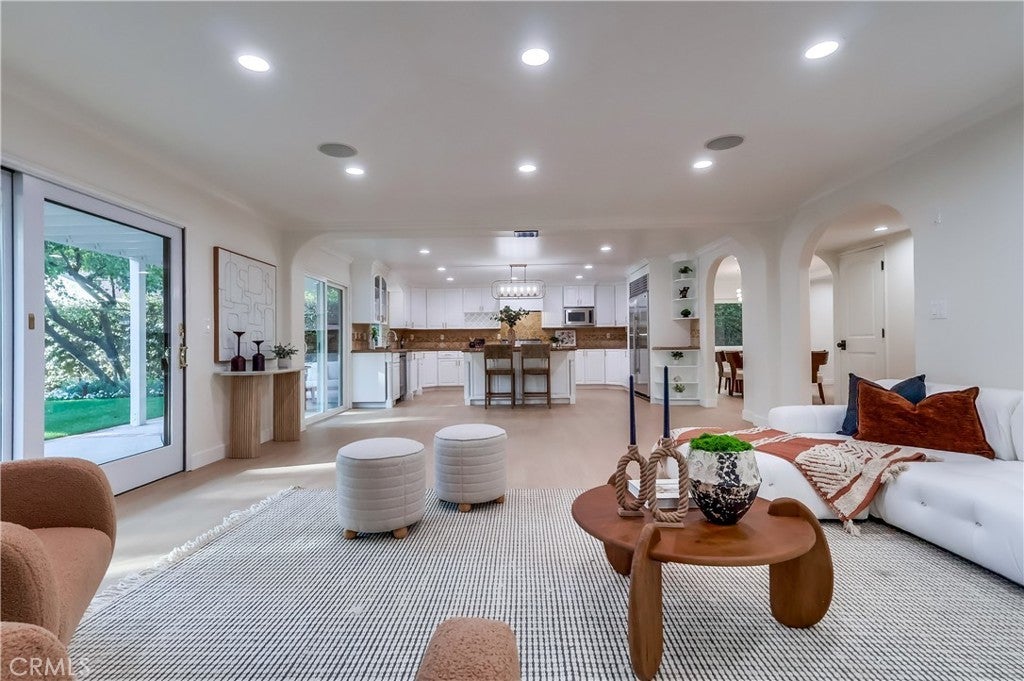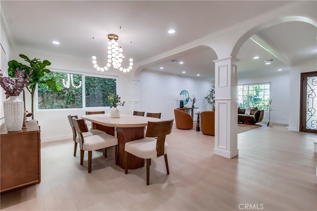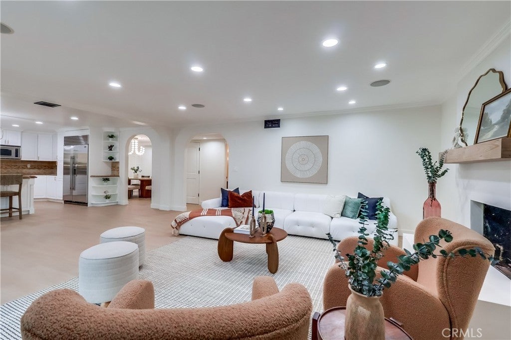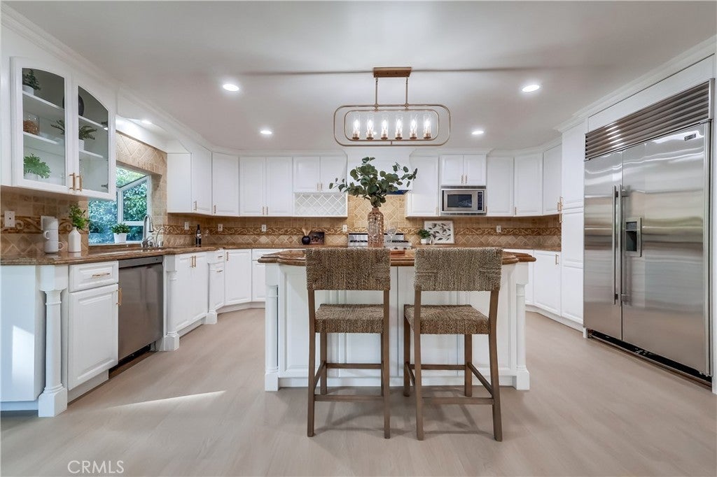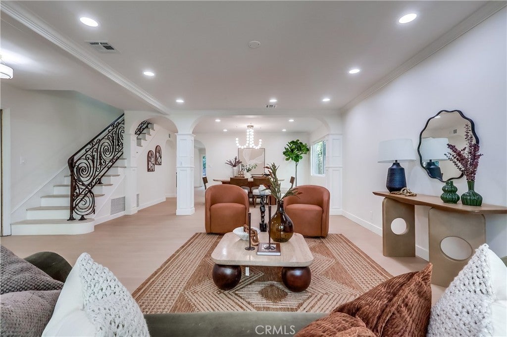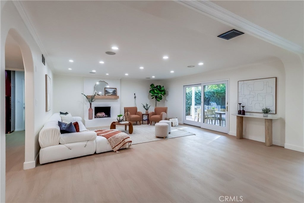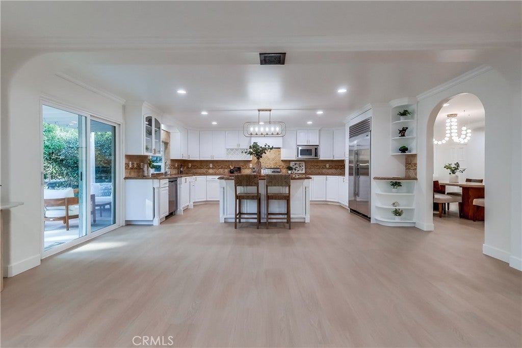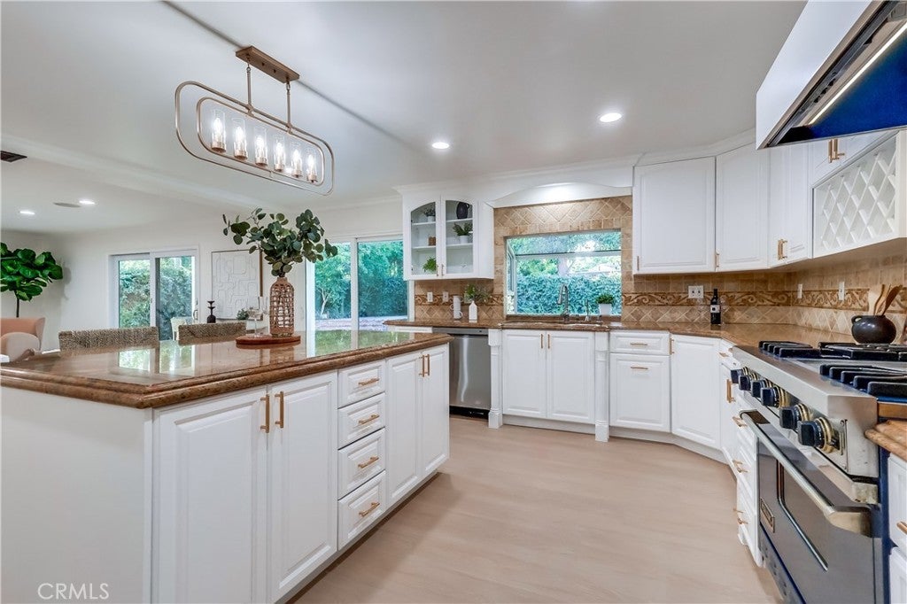 From the moment you walk through the front door of this Modern Spanish home, you’re welcomed by an open and inviting layout with beautiful archways that blends elegance and comfort. This beautifully remodeled 5 bedroom, 3 bath home in the sought-after Chandler Estates area of Sherman Oaks features a stunning updated grand kitchen, new floors throughout and a wonderful backyard. The home offers an open-concept design while maintaining defined spaces for dining and entertaining. The great room, complete with a cozy fireplace, opens directly to the kitchen outfitted with a stunning colbalt blue Viking range and a wall of glass sliders that lead out to the backyard. An attached two-car garage adds convenience and functionality. Upstairs, you’ll find 4 spacious bedrooms, including a large primary suite with abundant closet space and a spa-like bathroom, along with a fantastic balcony that spans across 3 bedrooms including the primary suite. A downstairs bedroom with full bath provides ideal space for guests or a home office. The expansive backyard is designed for every lifestyle, with a covered patio for al fresco dining, an outdoor BBQ island, a sparkling pool and spa, and a grassy play area — all set against lush landscaping. This home offers the perfect blend of thoughtful updates including updated smooth stucco, new grass, great outdoor lighting that can be controlled by your phone and 2 zone surround system all set in a premier Sherman Oaks location.