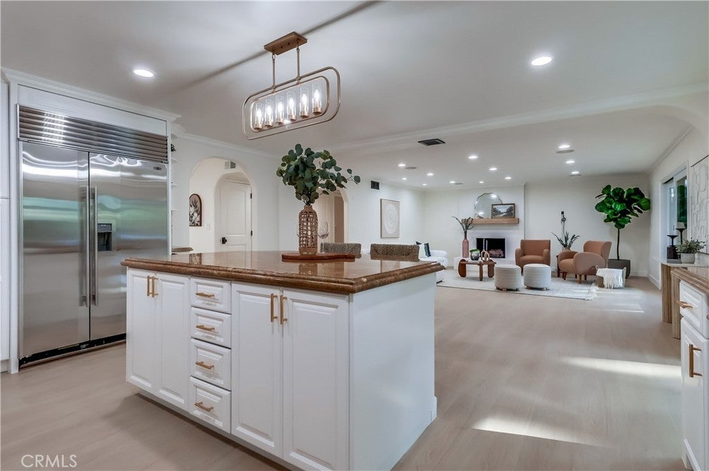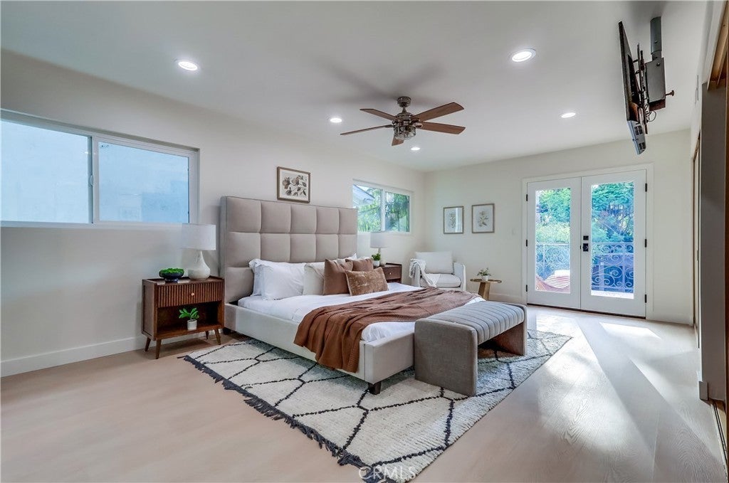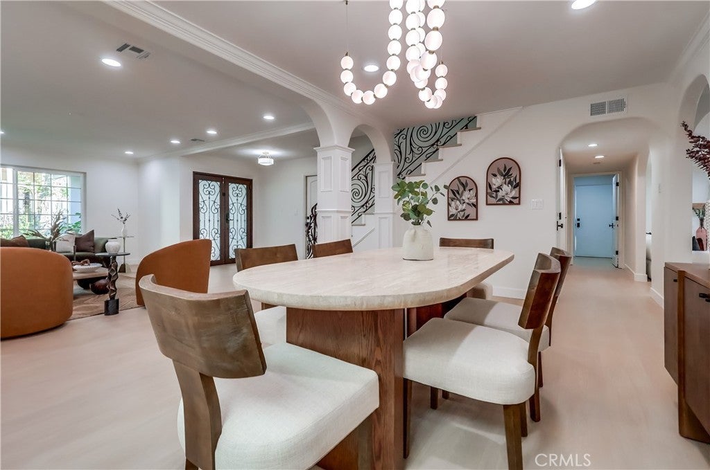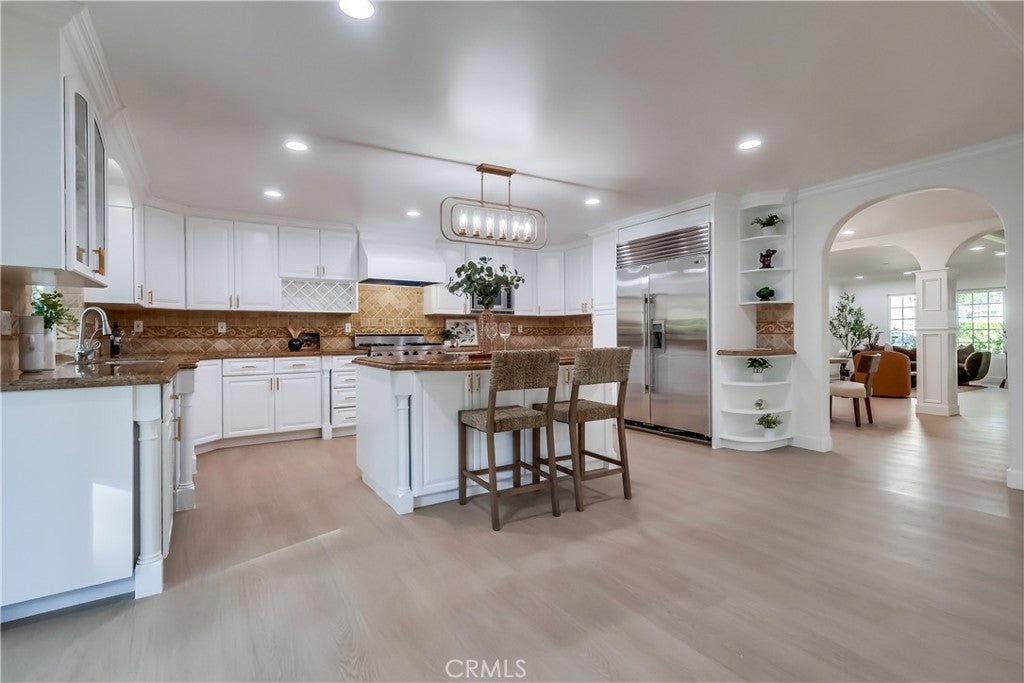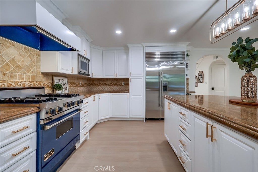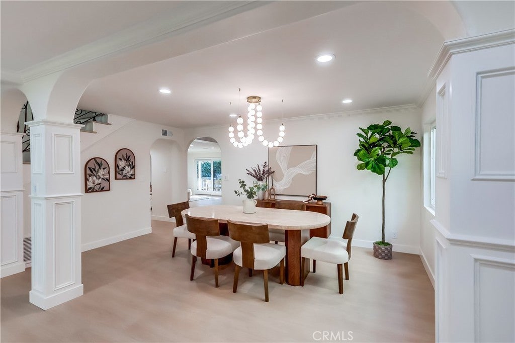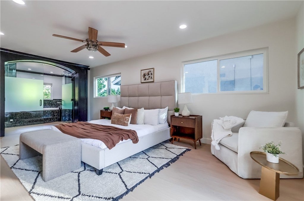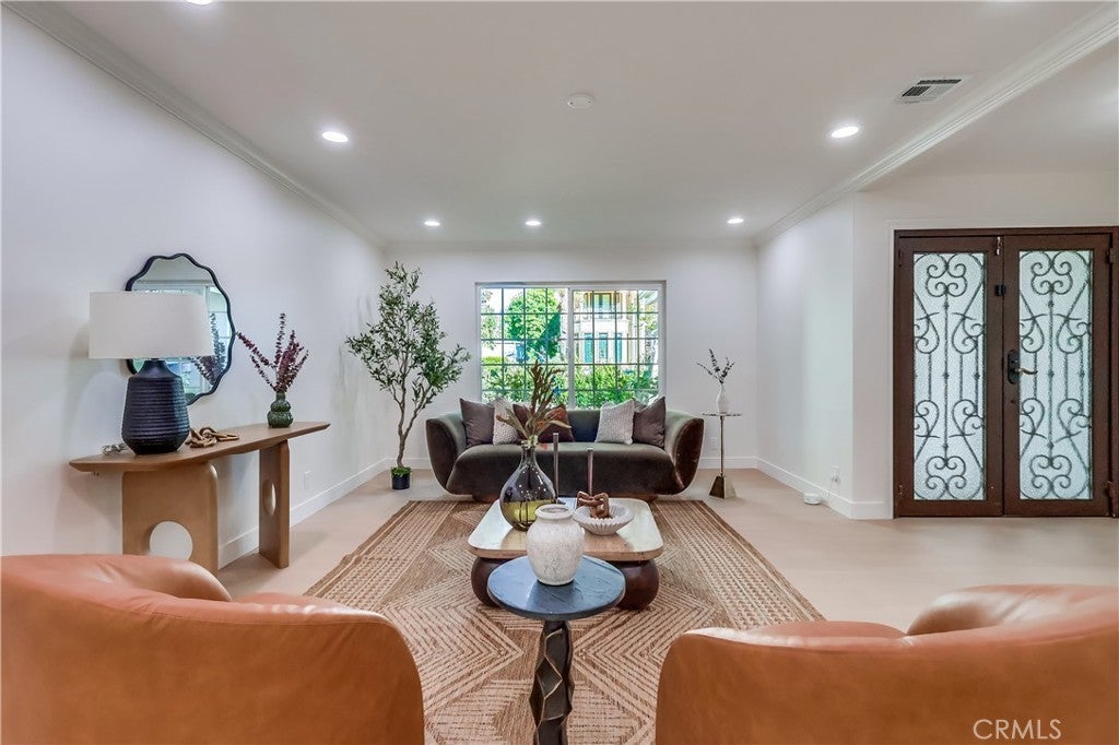 From the moment you walk through the front door of this Modern Spanish home, you’re welcomed by an open and inviting layout with beautiful archways that blends elegance and comfort. This beautifully remodeled 5 bedroom, 3 bath home in the sought-after Chandler Estates area of Sherman Oaks features a stunning updated grand kitchen, new floors throughout and a wonderful backyard. The home offers an open-concept design while maintaining defined spaces for dining and entertaining. The great room, complete with a cozy fireplace, opens directly to the kitchen outfitted with a stunning colbalt blue Viking range and a wall of glass sliders that lead out to the backyard. An attached two-car garage adds convenience and functionality. Upstairs, you’ll find 4 spacious bedrooms, including a large primary suite with abundant closet space and a spa-like bathroom, along with a fantastic balcony that spans across 3 bedrooms including the primary suite. A downstairs bedroom with full bath provides ideal space for guests or a home office. The expansive backyard is designed for every lifestyle, with a covered patio for al fresco dining, an outdoor BBQ island, a sparkling pool and spa, and a grassy play area — all set against lush landscaping. This home offers the perfect blend of thoughtful updates including updated smooth stucco, new grass, great outdoor lighting that can be controlled by your phone and 2 zone surround system all set in a premier Sherman Oaks location.